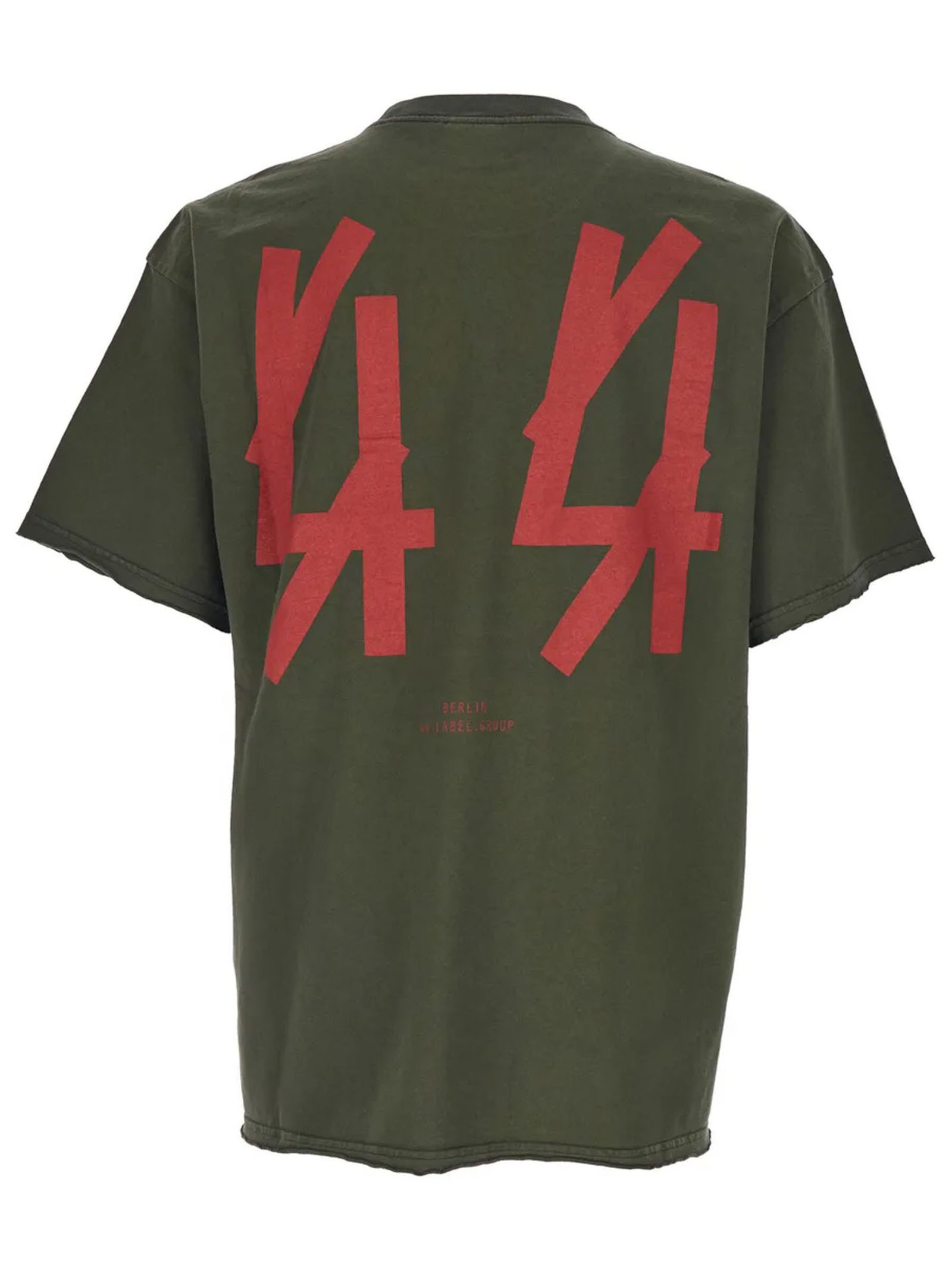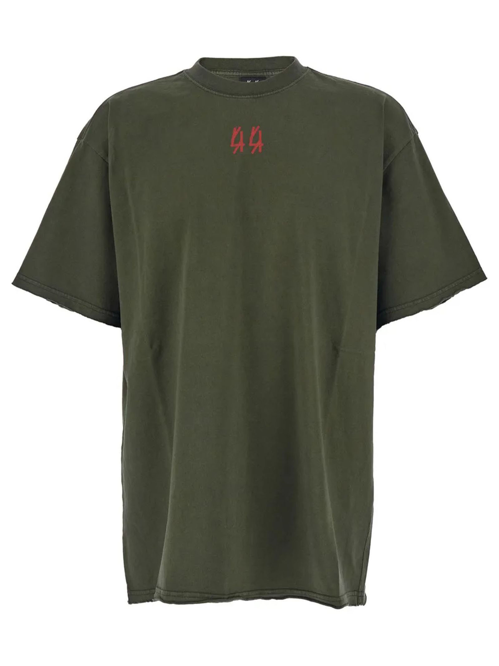 Green cotton T-shirt featuring crewneck, short sleeves, logo detail on the front, maxi logo print on the rear, straight hem, relaxed fit