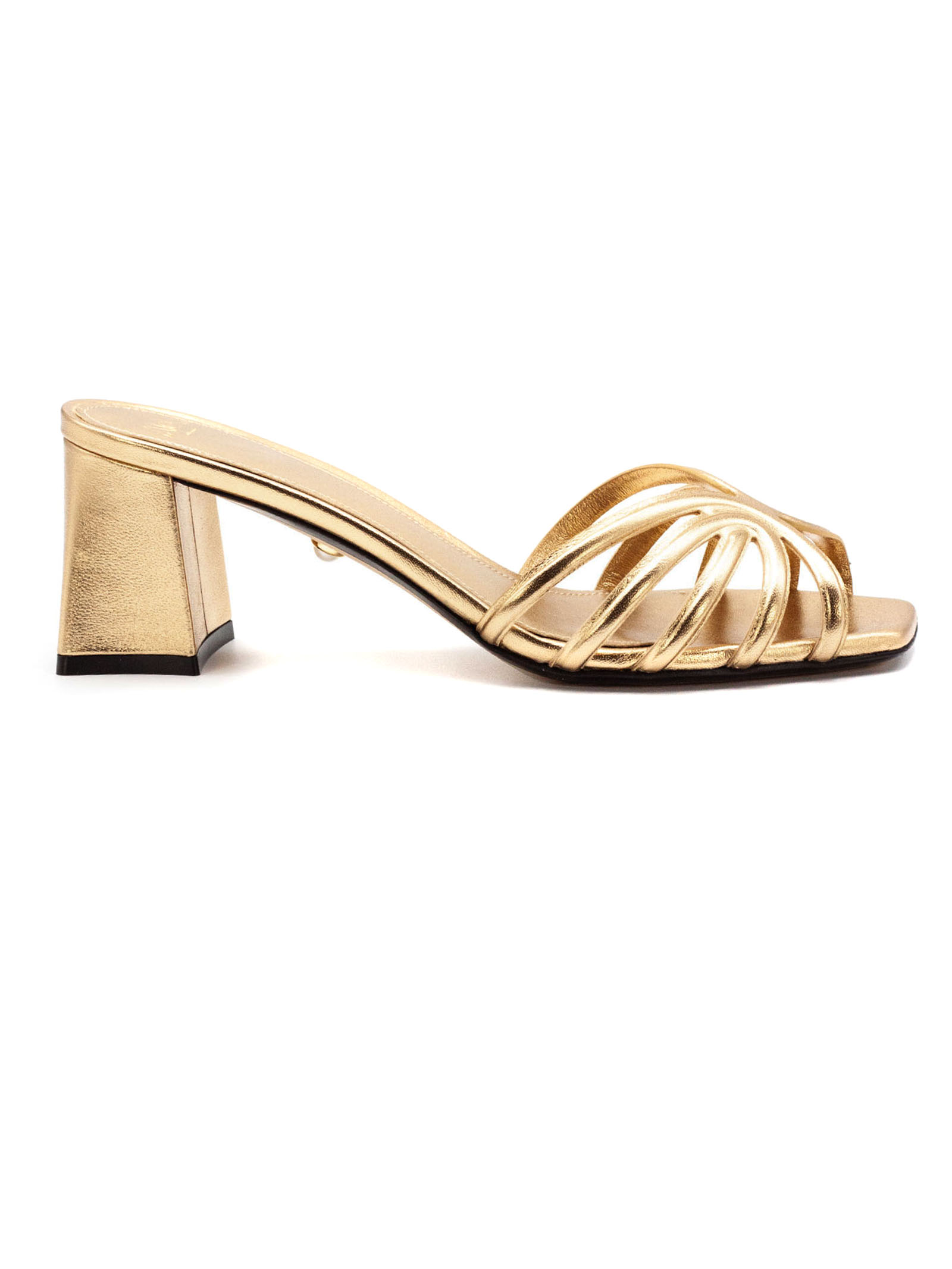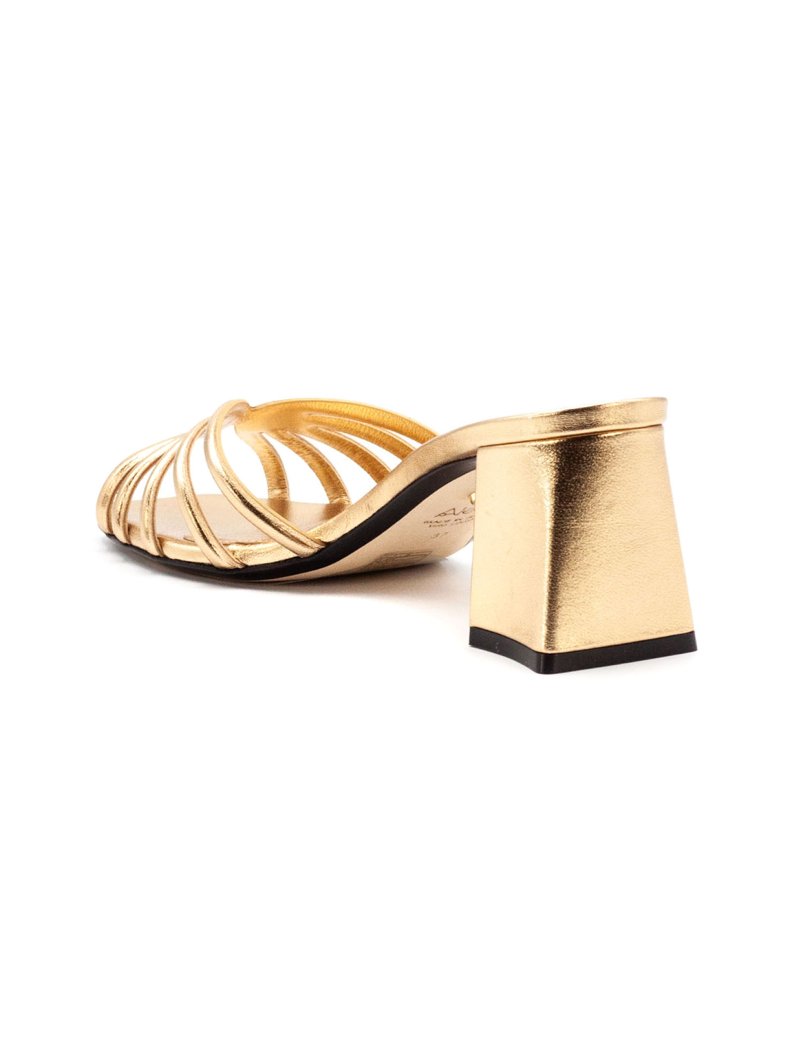 Laya 60 Shine Mekong Sandal, Square toe mule in laminated leather with padded 3d finishing and matching covered block heel, heel height 60mm