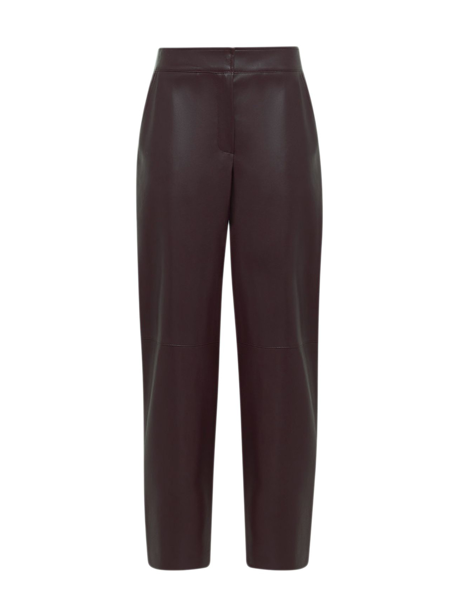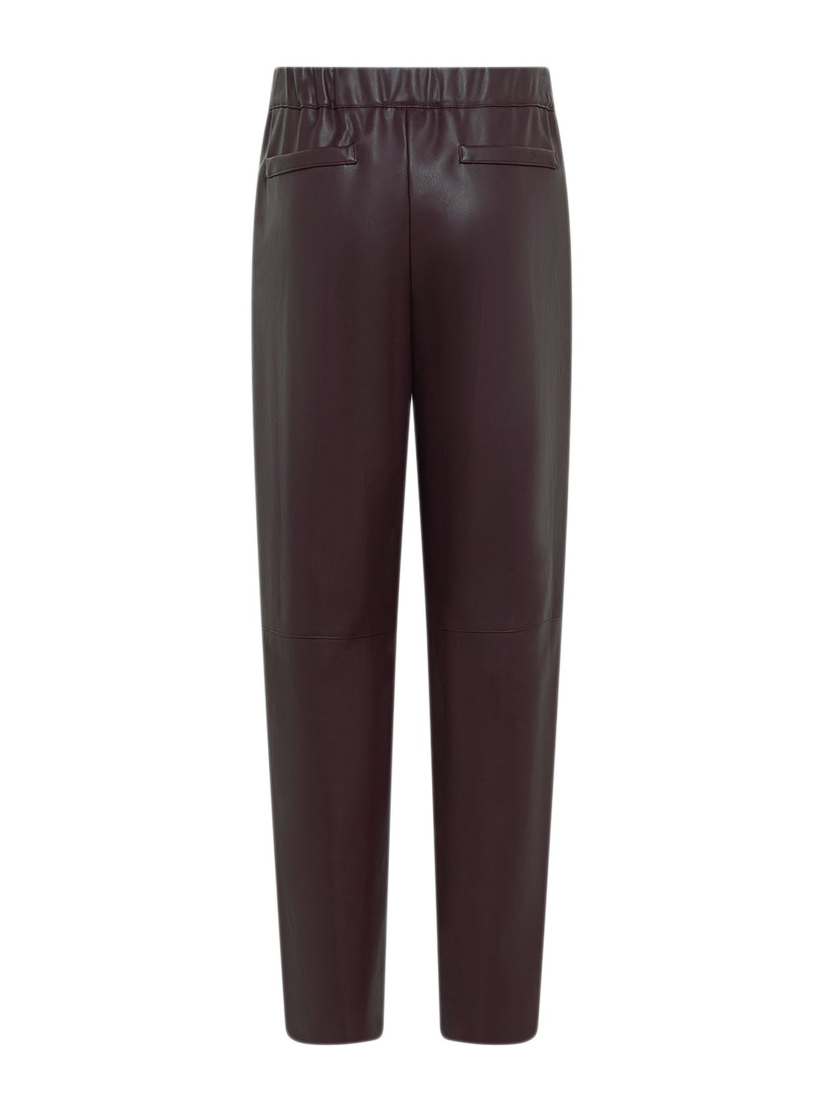 Straight-leg faux leather trousers with gathered elastic at the back, slash pockets at the front and welt pockets at the back, regular fit