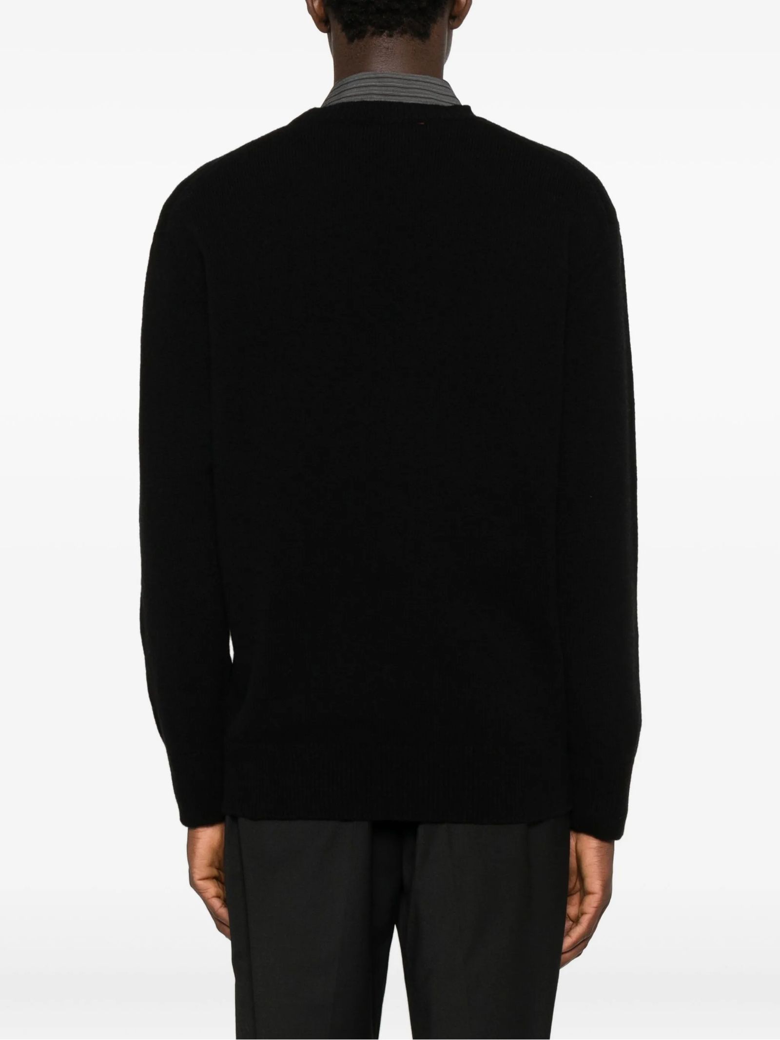 Black wool and cashmere blend jumper, crew neck, long sleeves, ribbed hem, ribbed edges