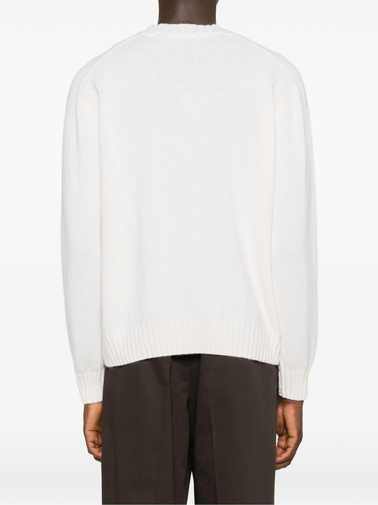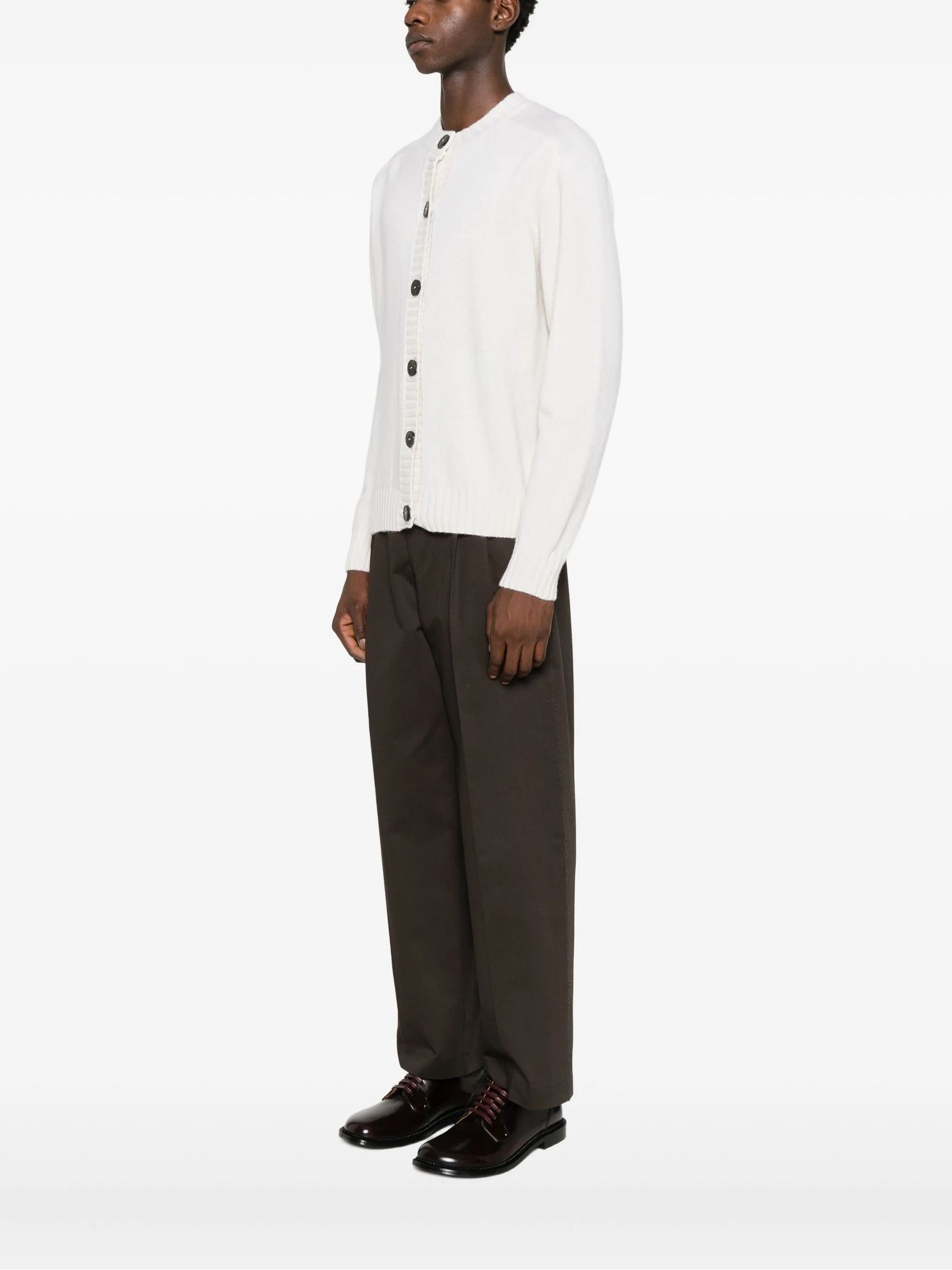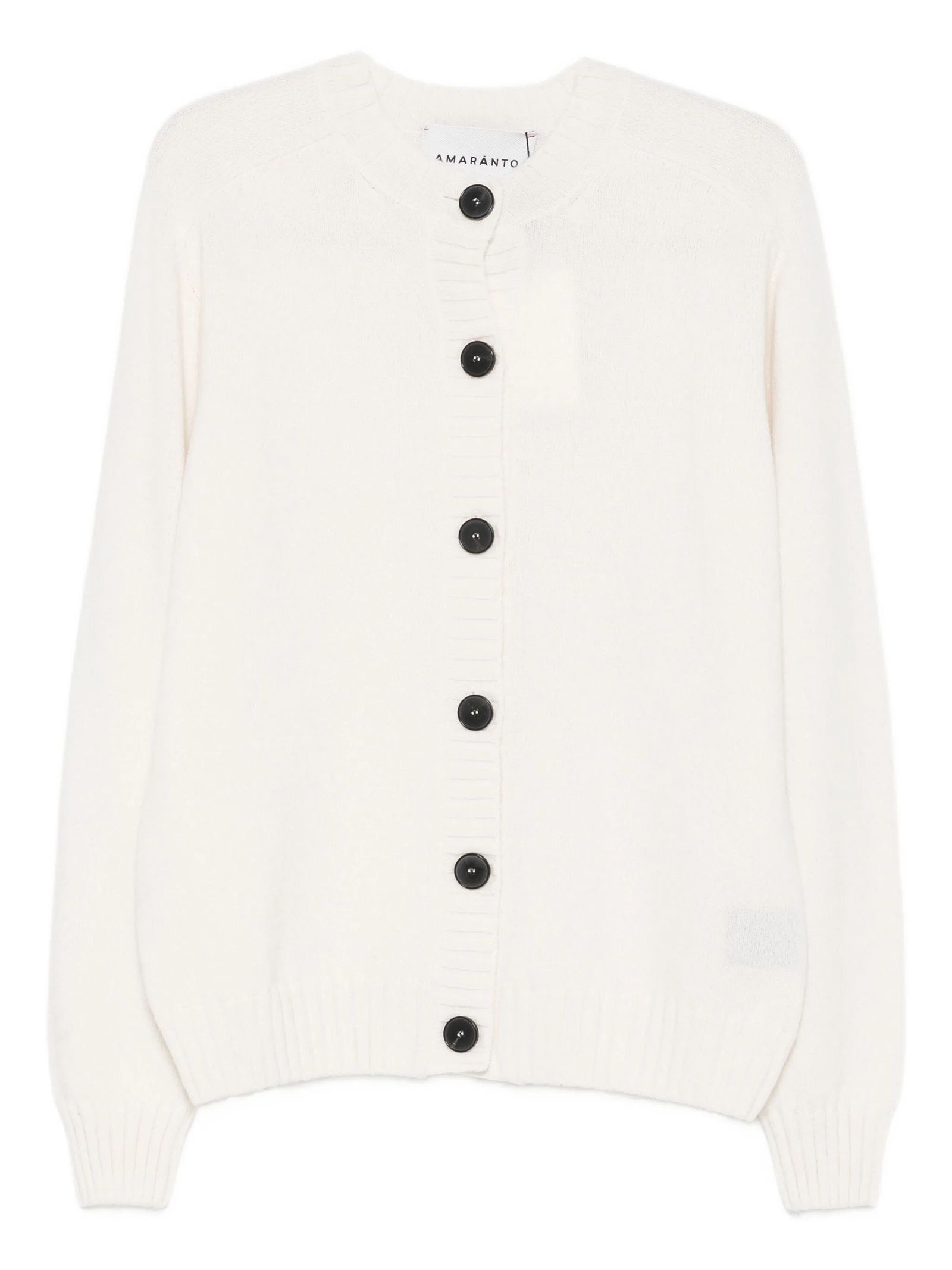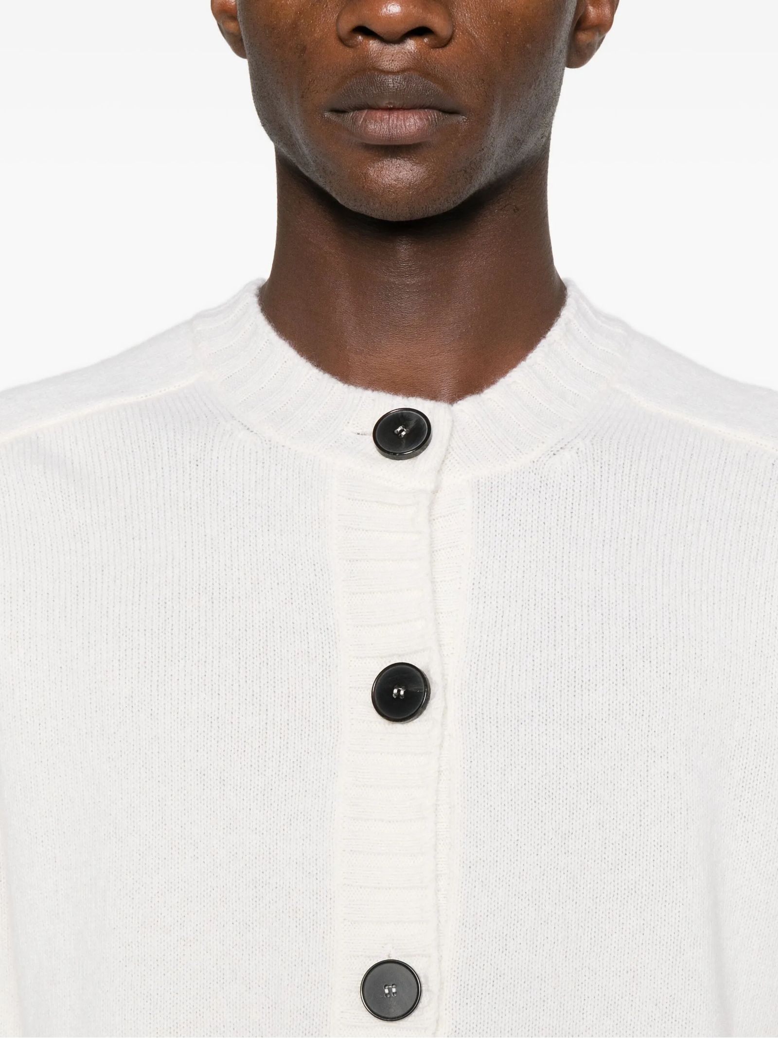 White wool and cashmere blend cardigan, button fastening, crew neck, long sleeves, ribbed hem