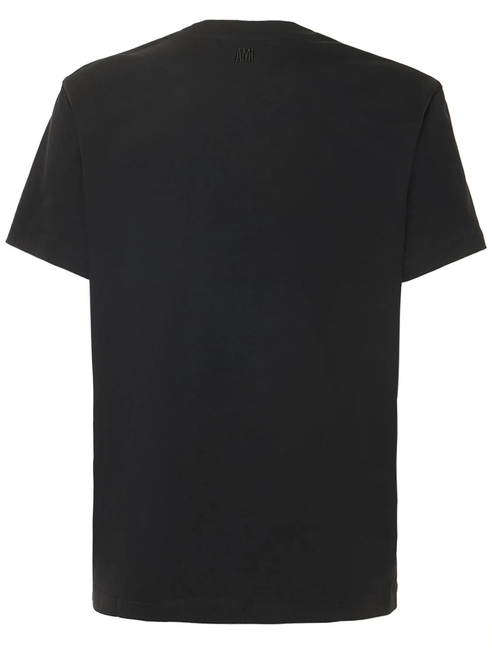 Black organic cotton jersey T-shirt, classic fit, red Ami de Cur embroidery on the chest, tone-on-tone ami embroidery at the base of the neck on the back