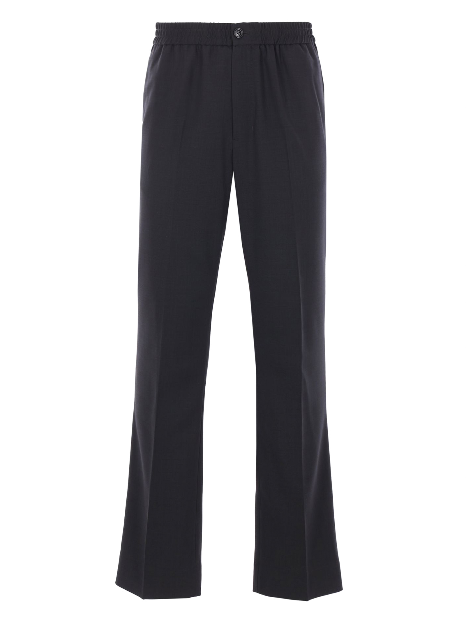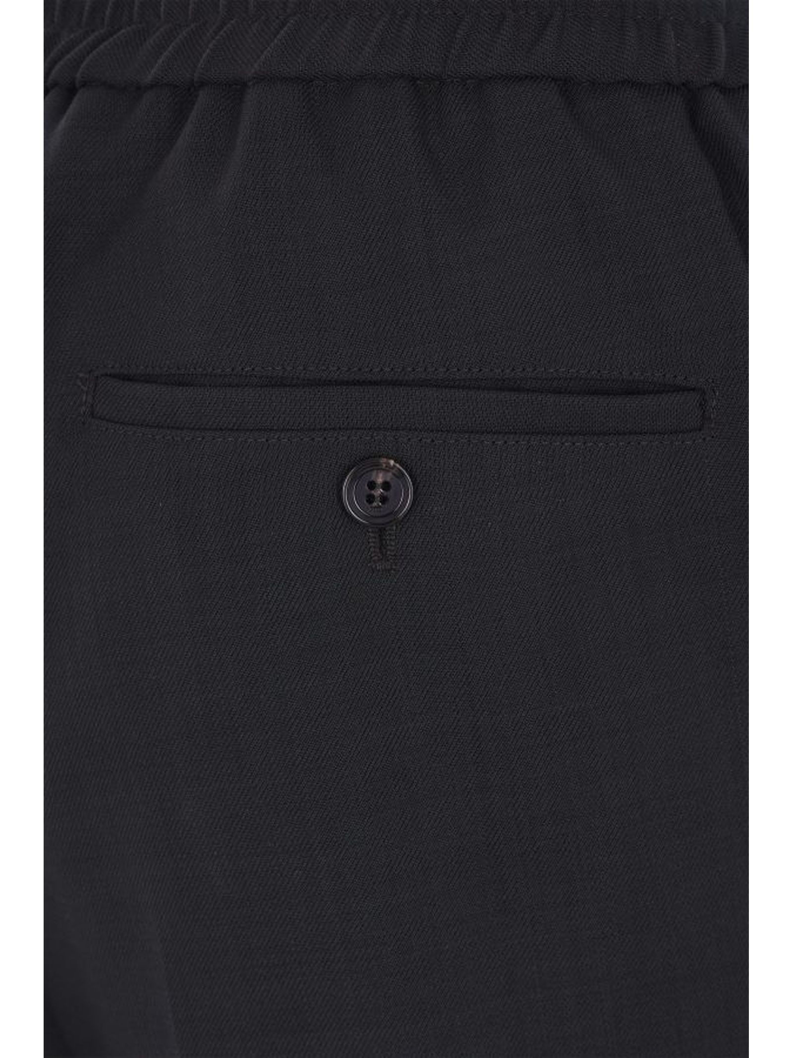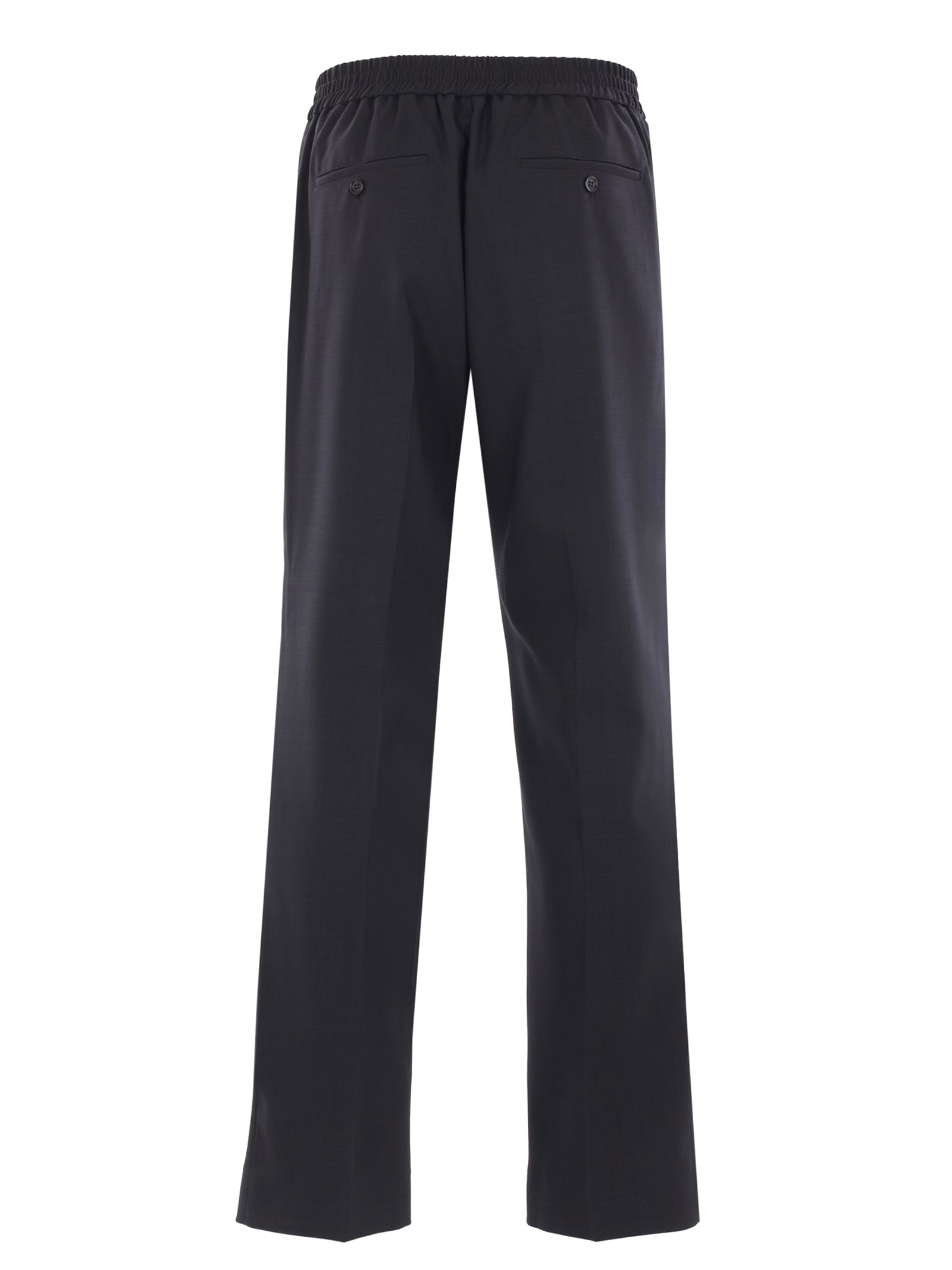 Elasticated waist trousers in light wool twill, Straight fit, Zipped fly, Side pockets, Back piped pockets with buttons, Horn buttons, Elasticated belt with button inside, Internal waist drawstring