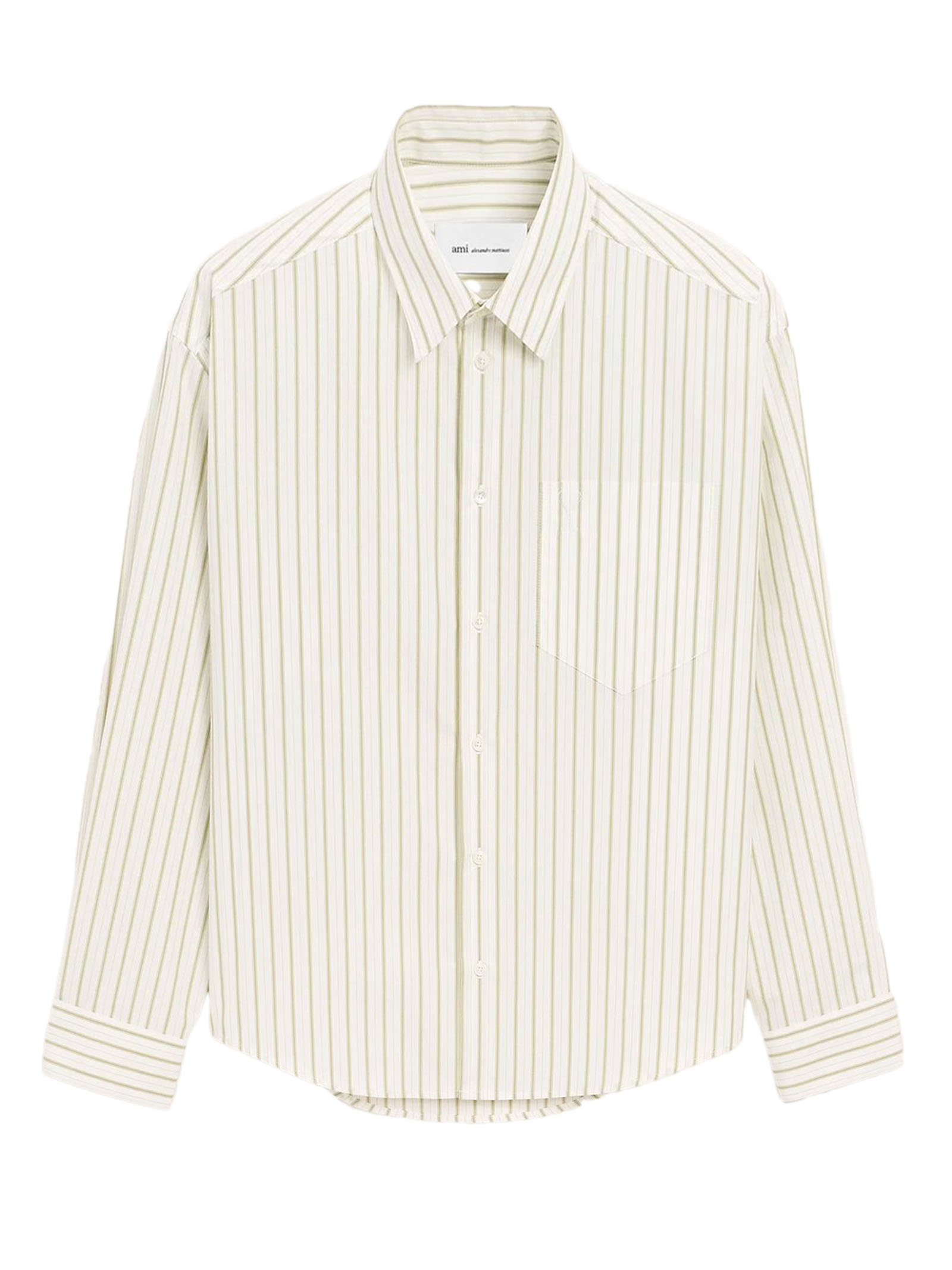 Embossed Ami de Coeur shirt in cotton poplin with double stripes, Unisex product, Boxy fit, Tonal Ami de Coeur embroidery on the chest, Classic collar, Buttonned tab on front and cuffs, Mother of pearl buttons