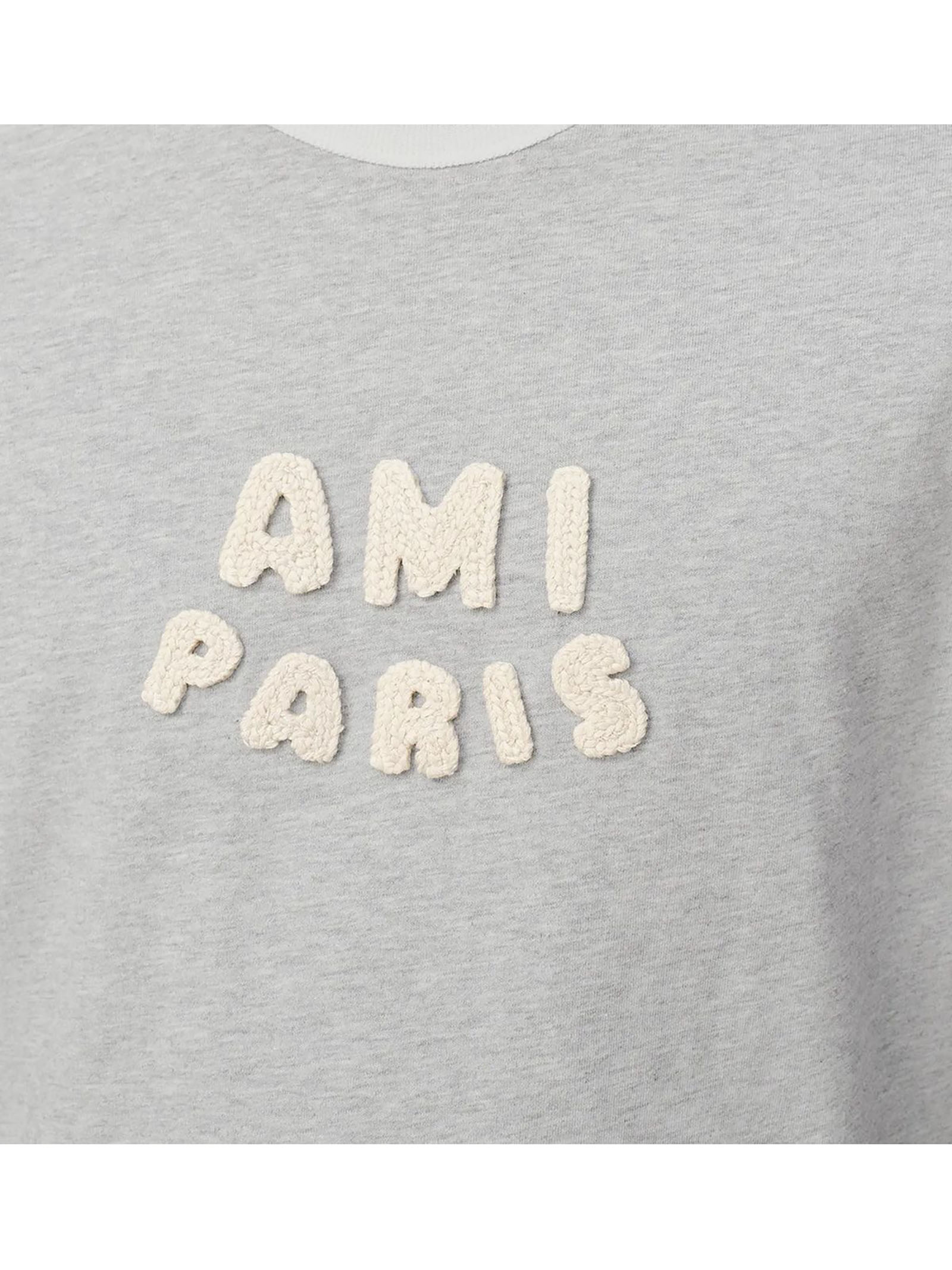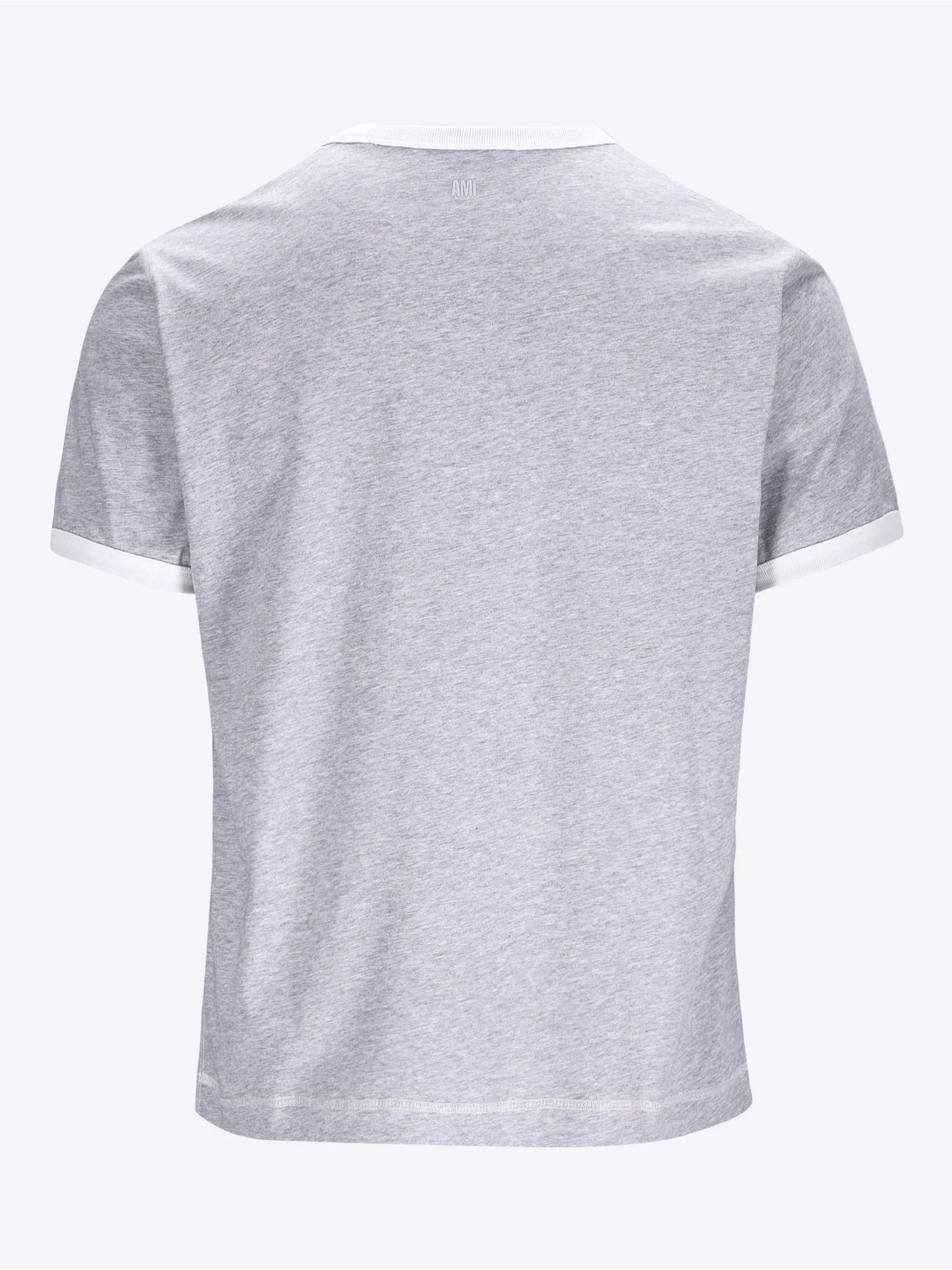 Grey cotton T-shirt, logo patch, tonal embroidery, short sleeves, crew neck