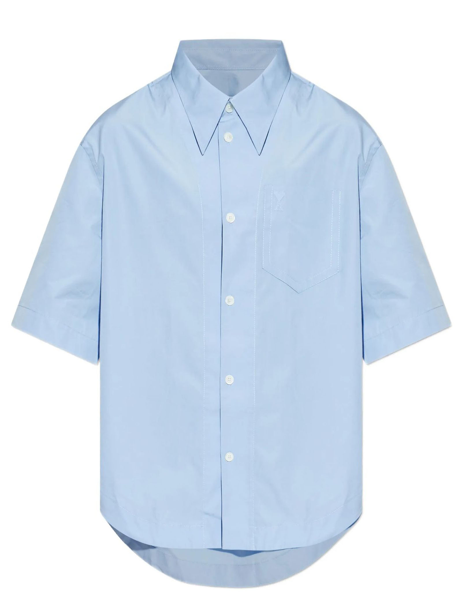 Light blue cotton shirt, chest pocket, button fastening, short-sleeve, box pleat