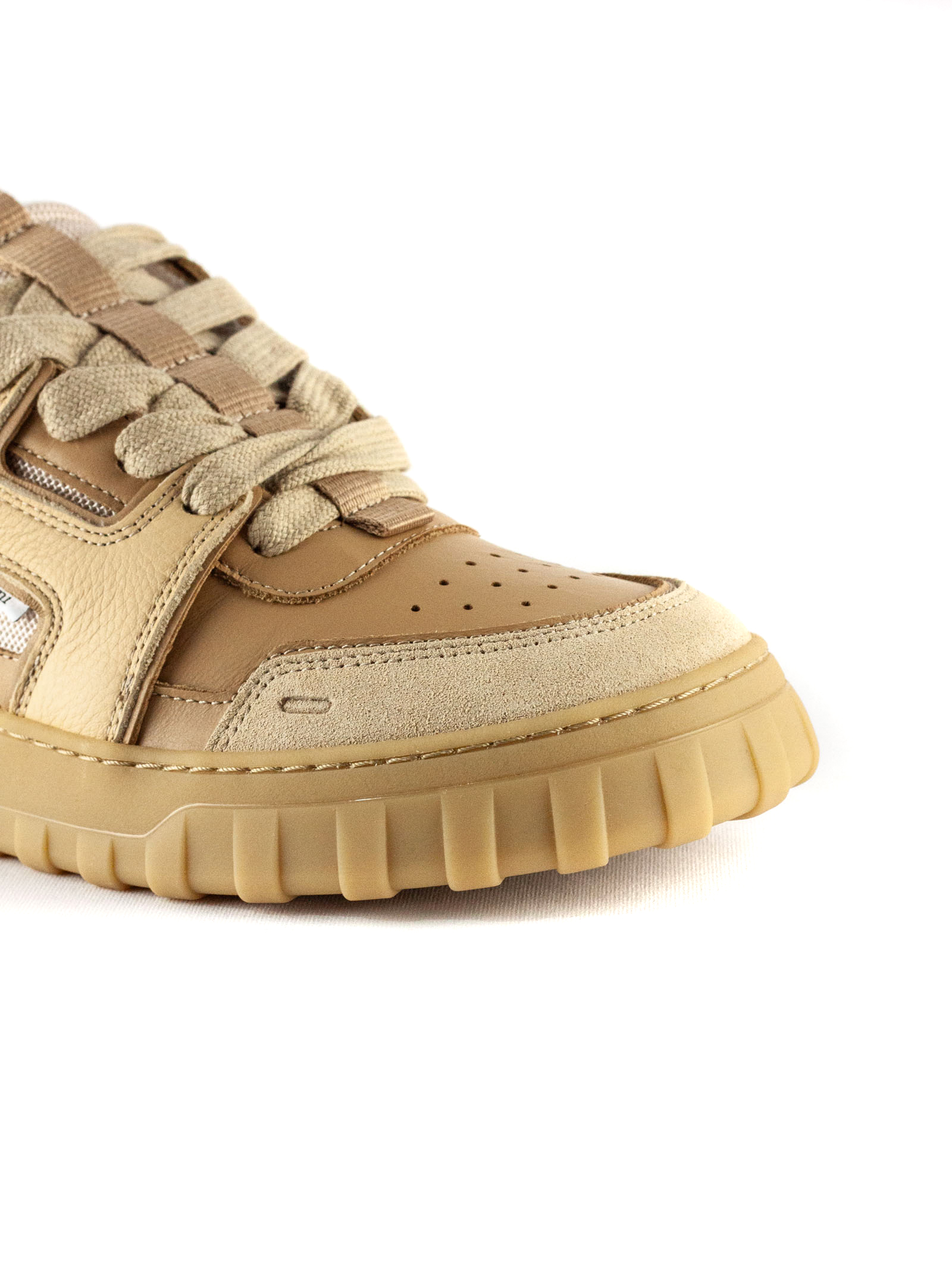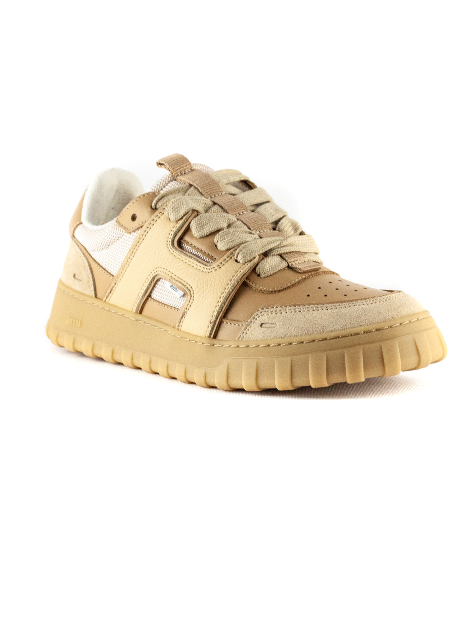 Low top lace up sneakers in smooth leather, unisex product, exclusive sole developed by Ami Paris, terry cloth lining, inserts in grained leather, suede leather and in mesh, embossed Ami de Coeur logo tonal at the back, woven ami label on the external sid