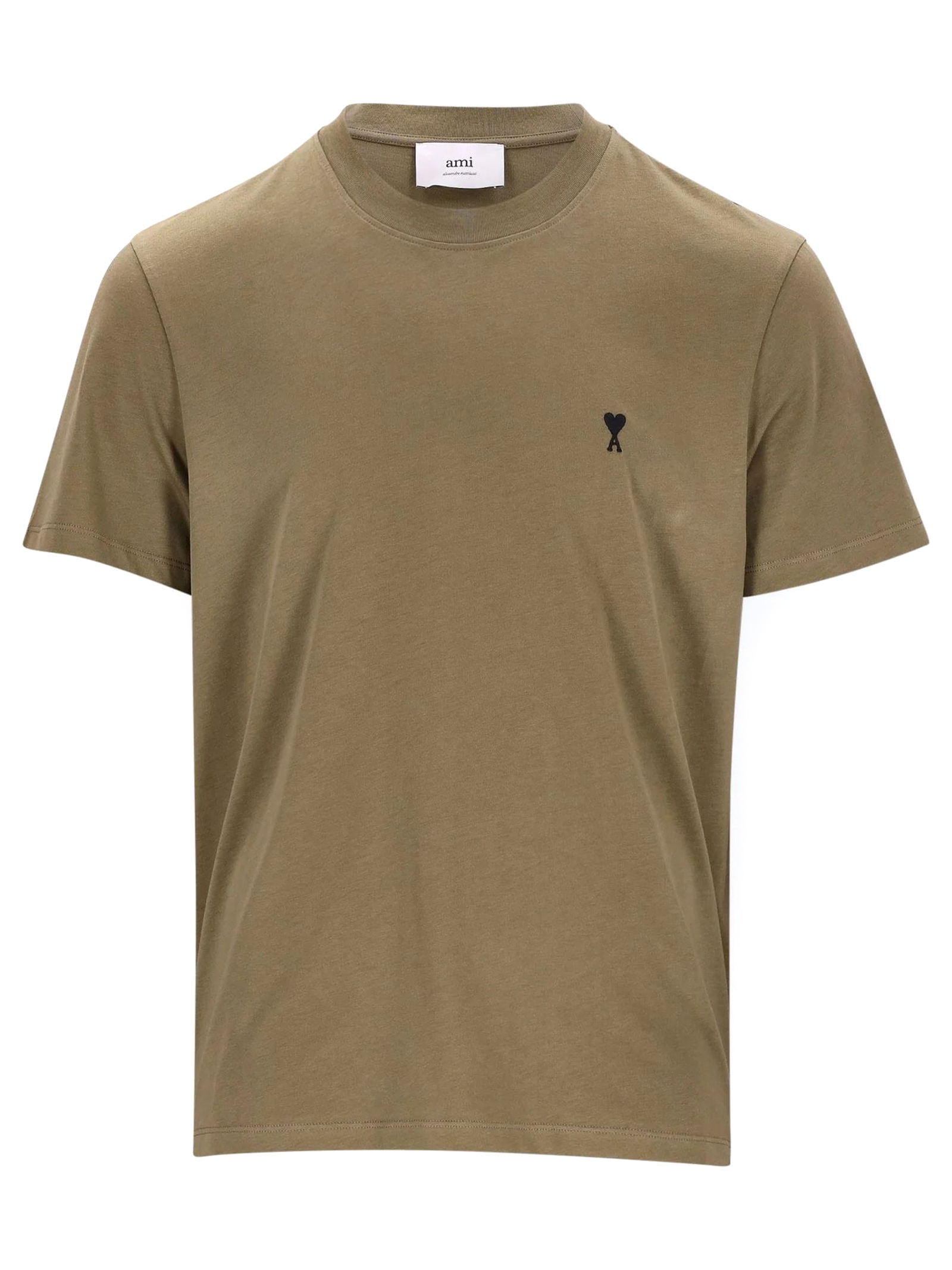T-shirt in green cotton jersey, classic fit, white Ami de Coeur chest embroidery, Tonal Ami embroidery under back neckline