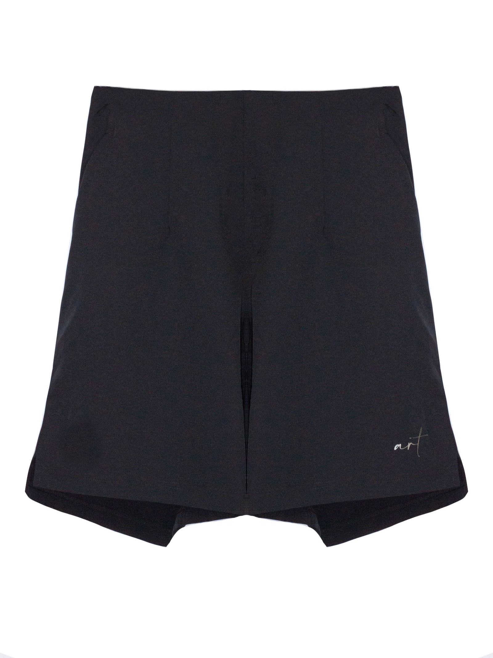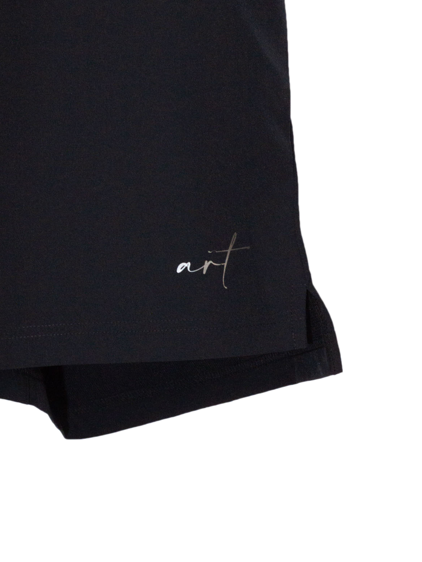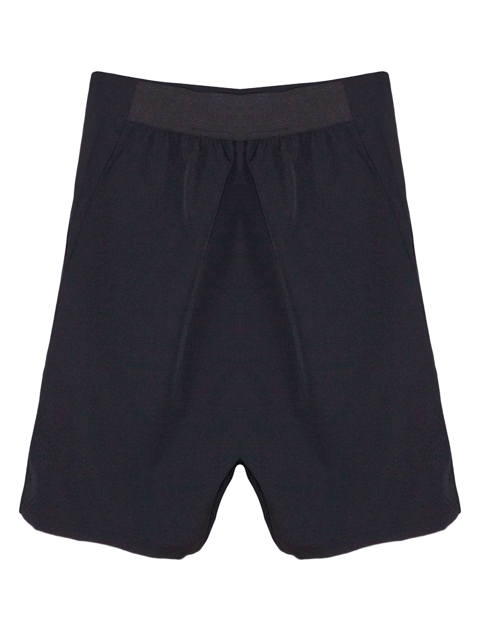 Lightweight black cotton shorts with an elastic waistband at the back, side pockets, and a comfortable fit
