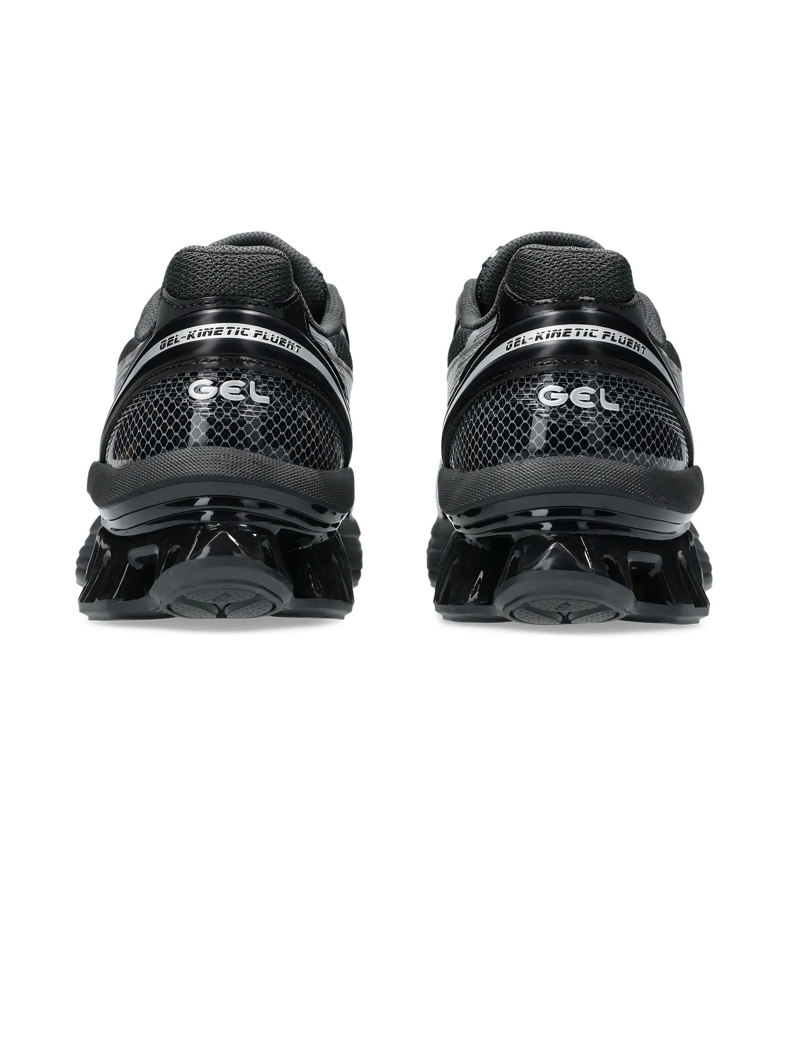 Black and grey Gel-Kinetic Fluent sneakers, FF Blast Plus Eco cushioning, Scutoid GEL technology, tongue with logo, lace fastening