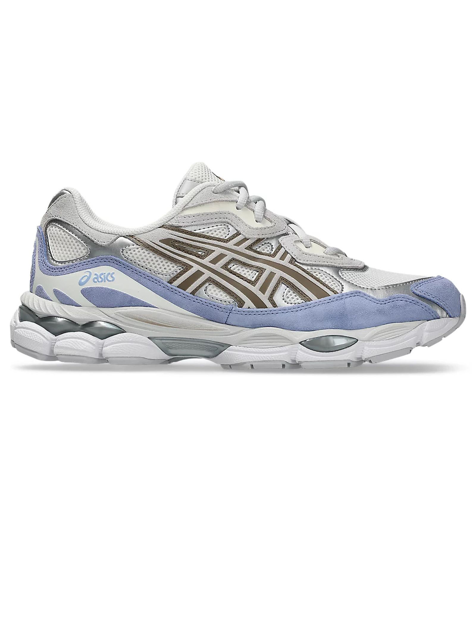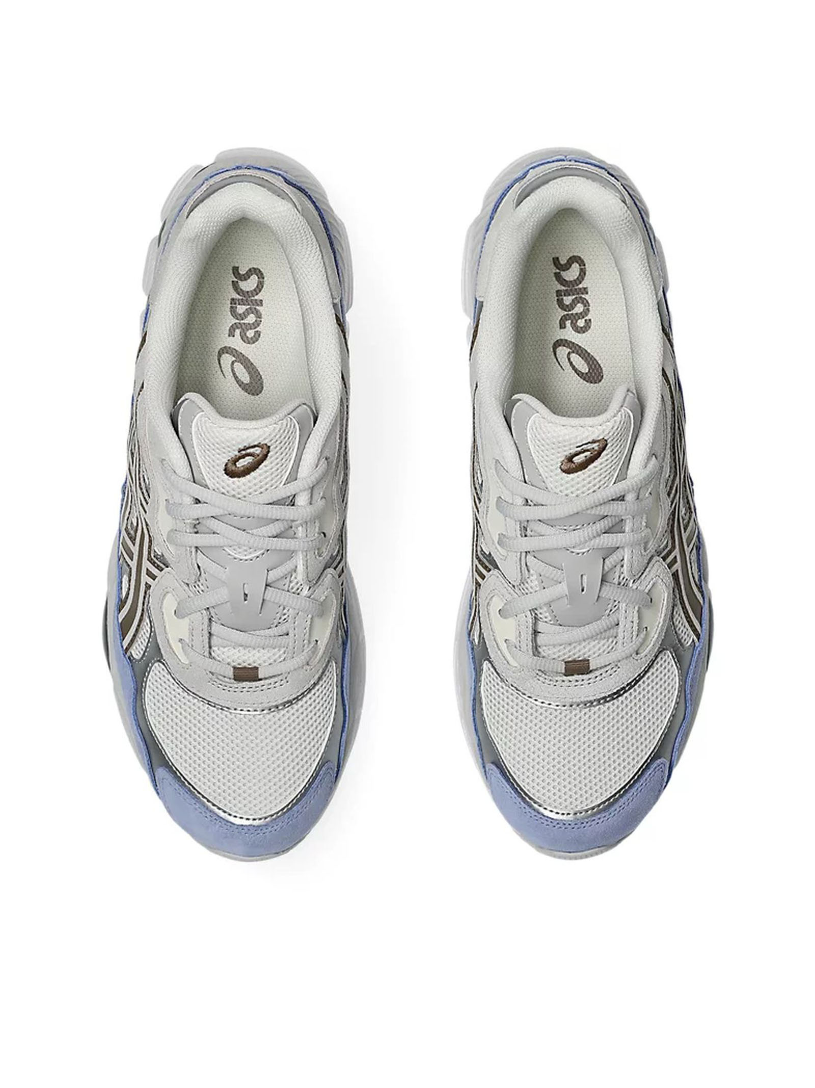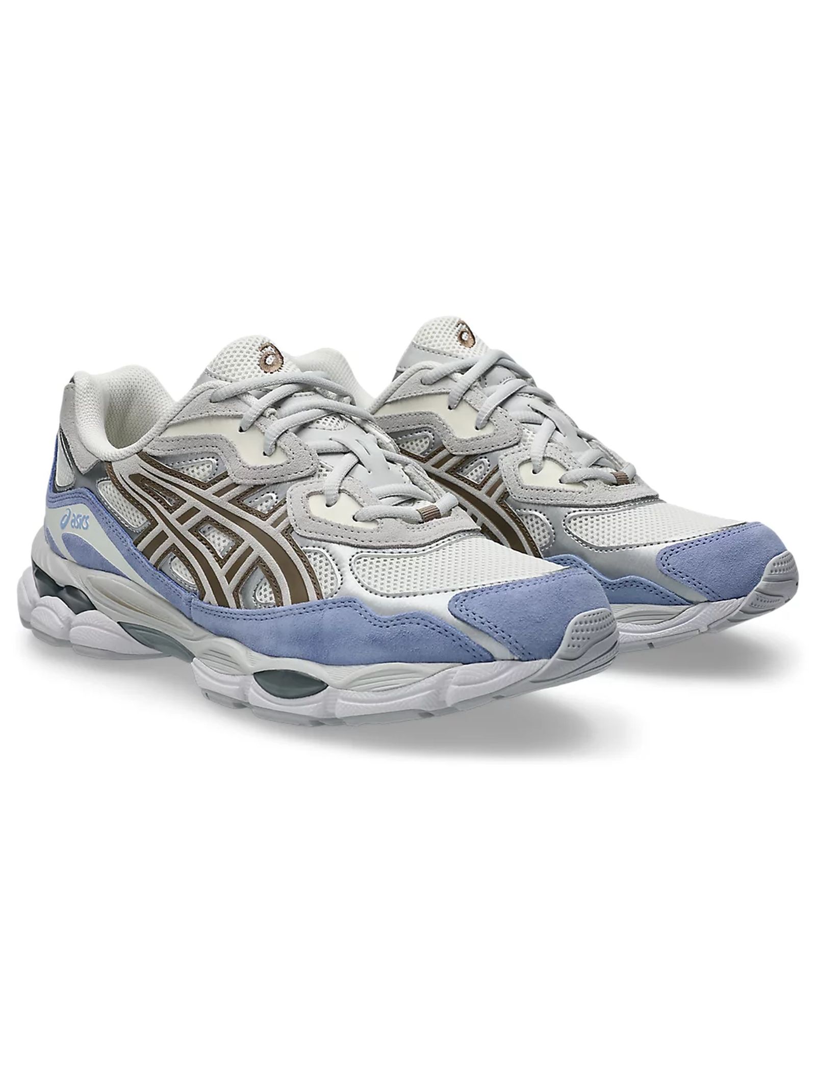 Gel-NYC logo-print sneakers, grey and white, lace-up fastening, logo print, blue details, rubber sole