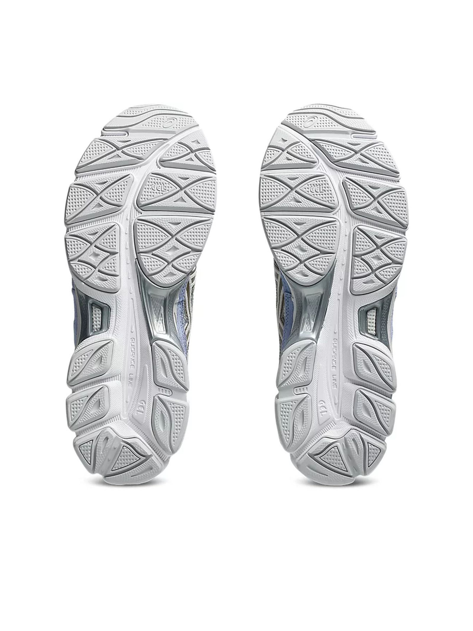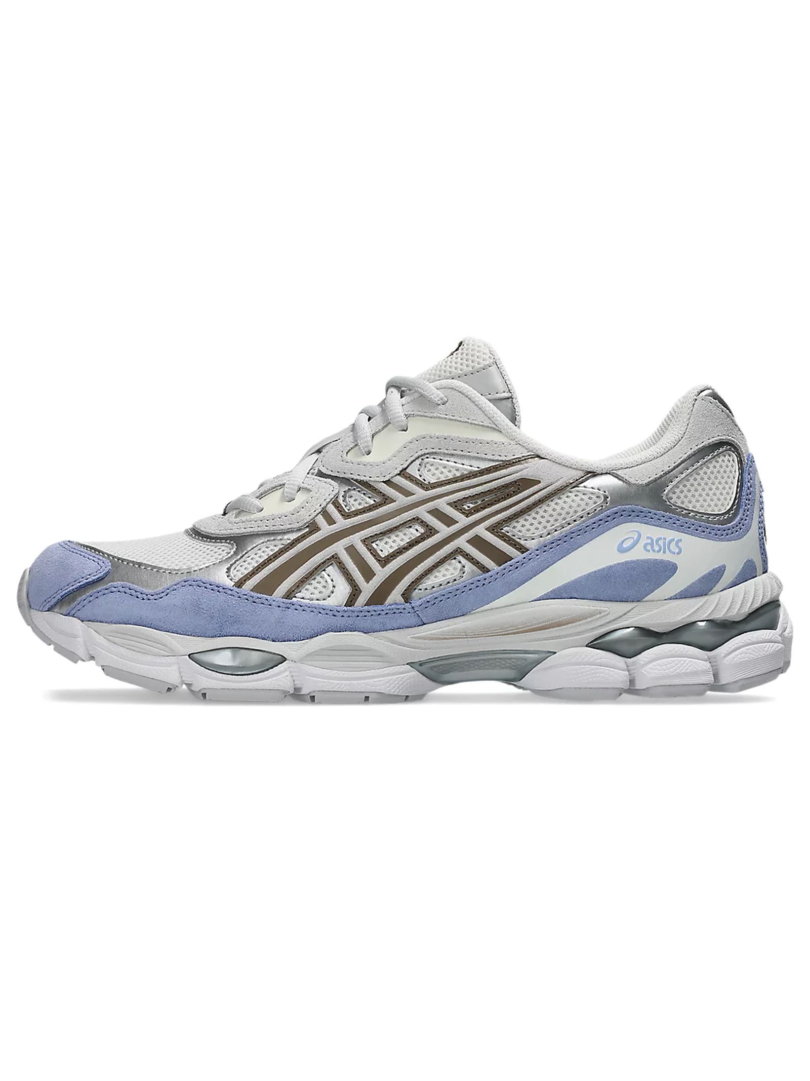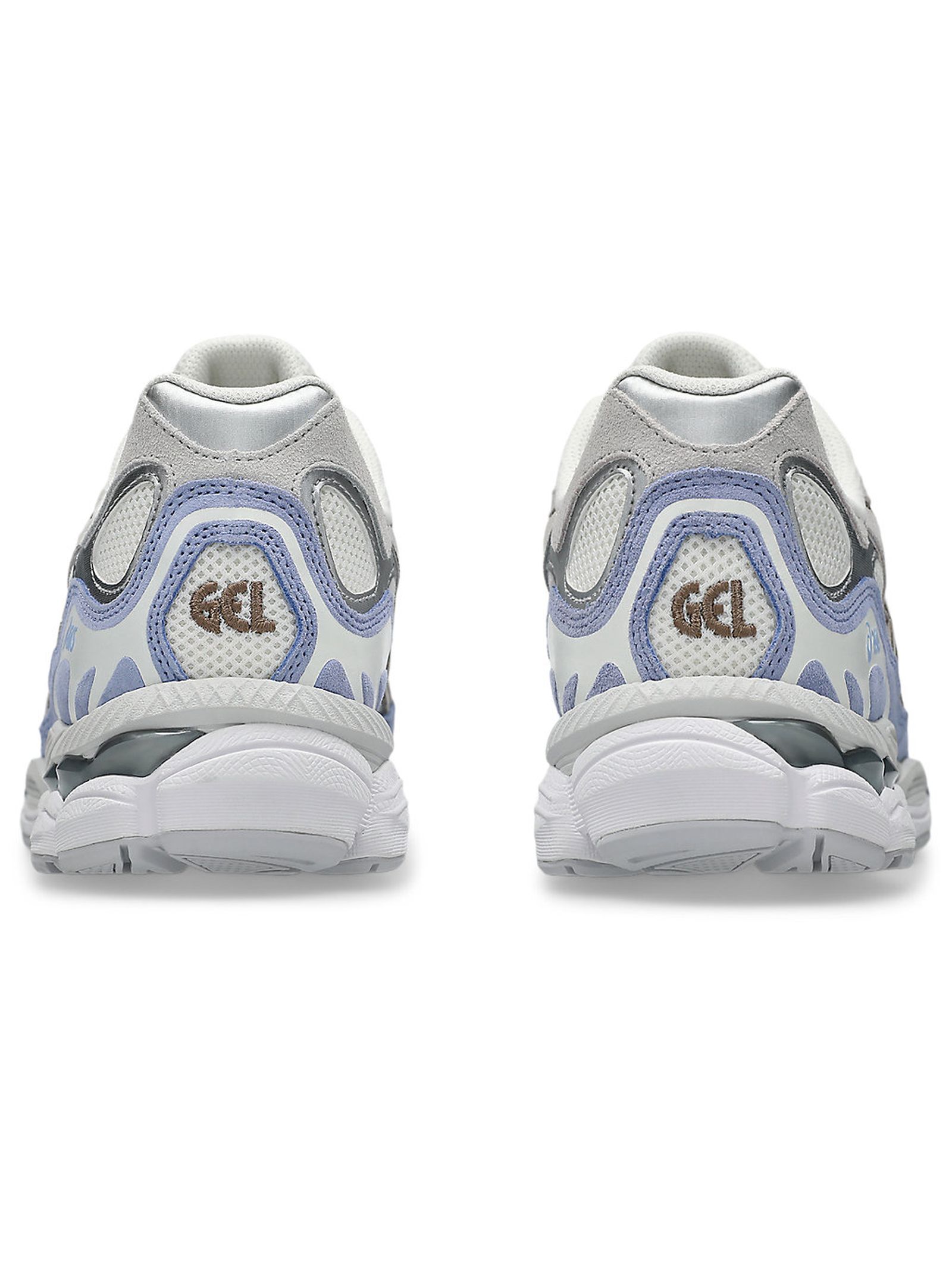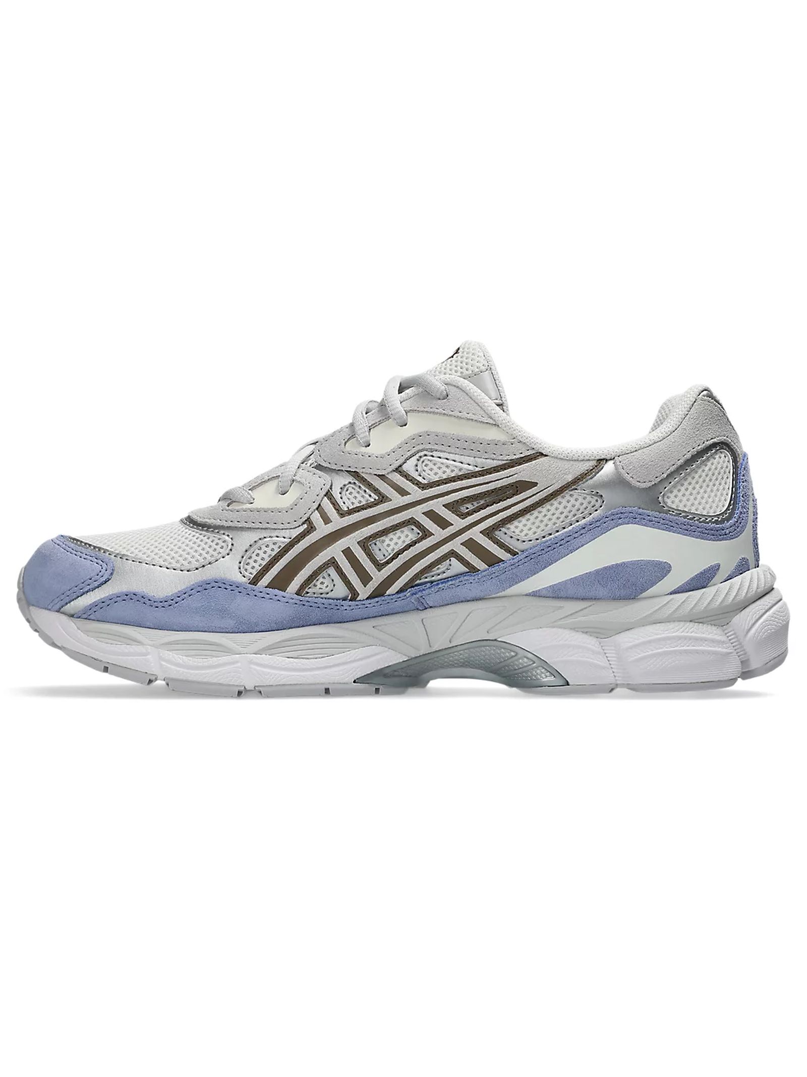 Gel-NYC logo-print sneakers, grey and white, lace-up fastening, logo print, blue details, rubber sole
