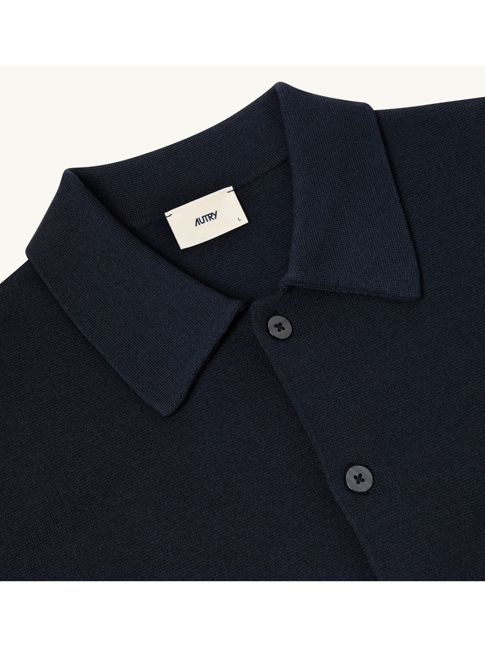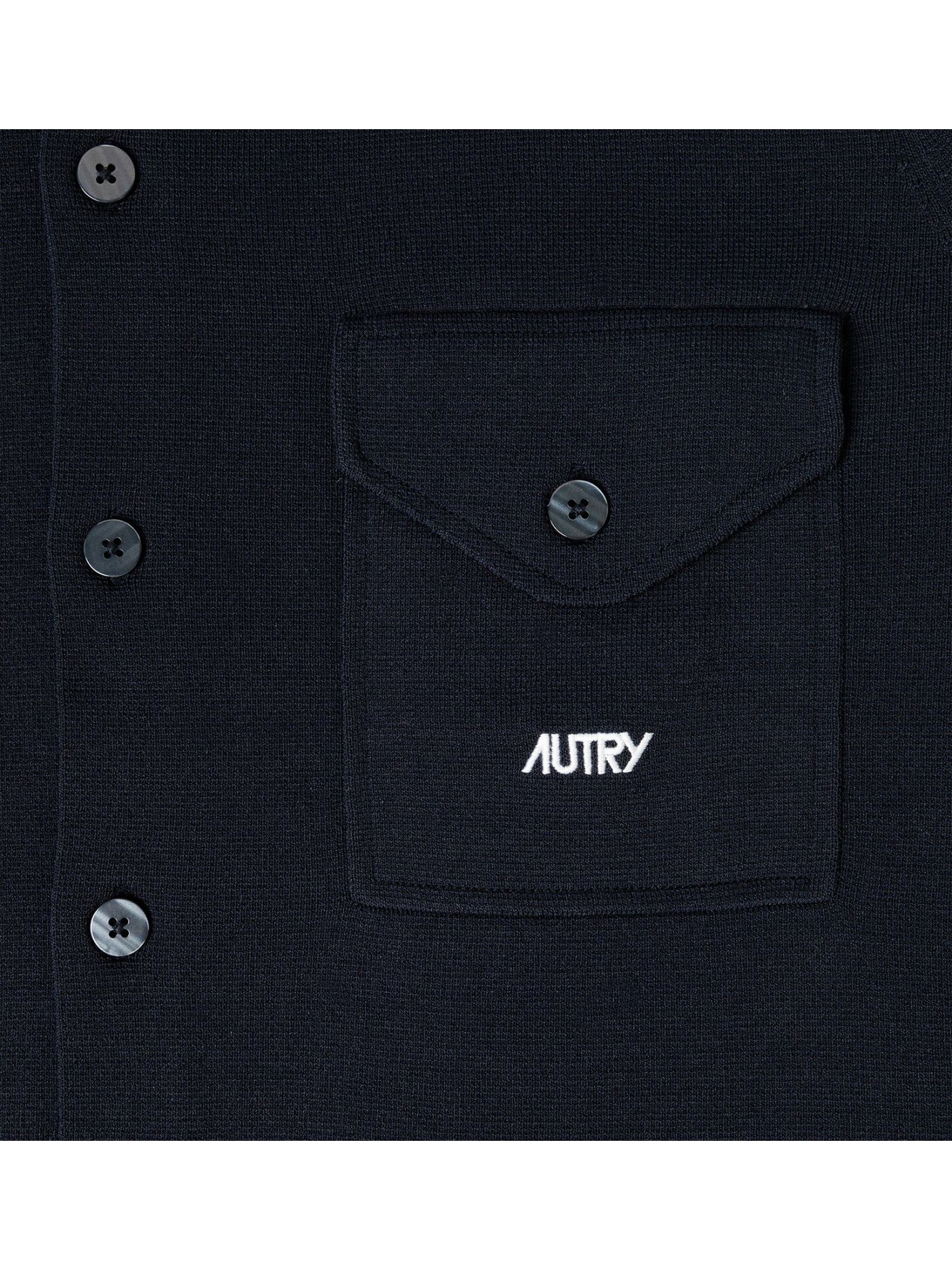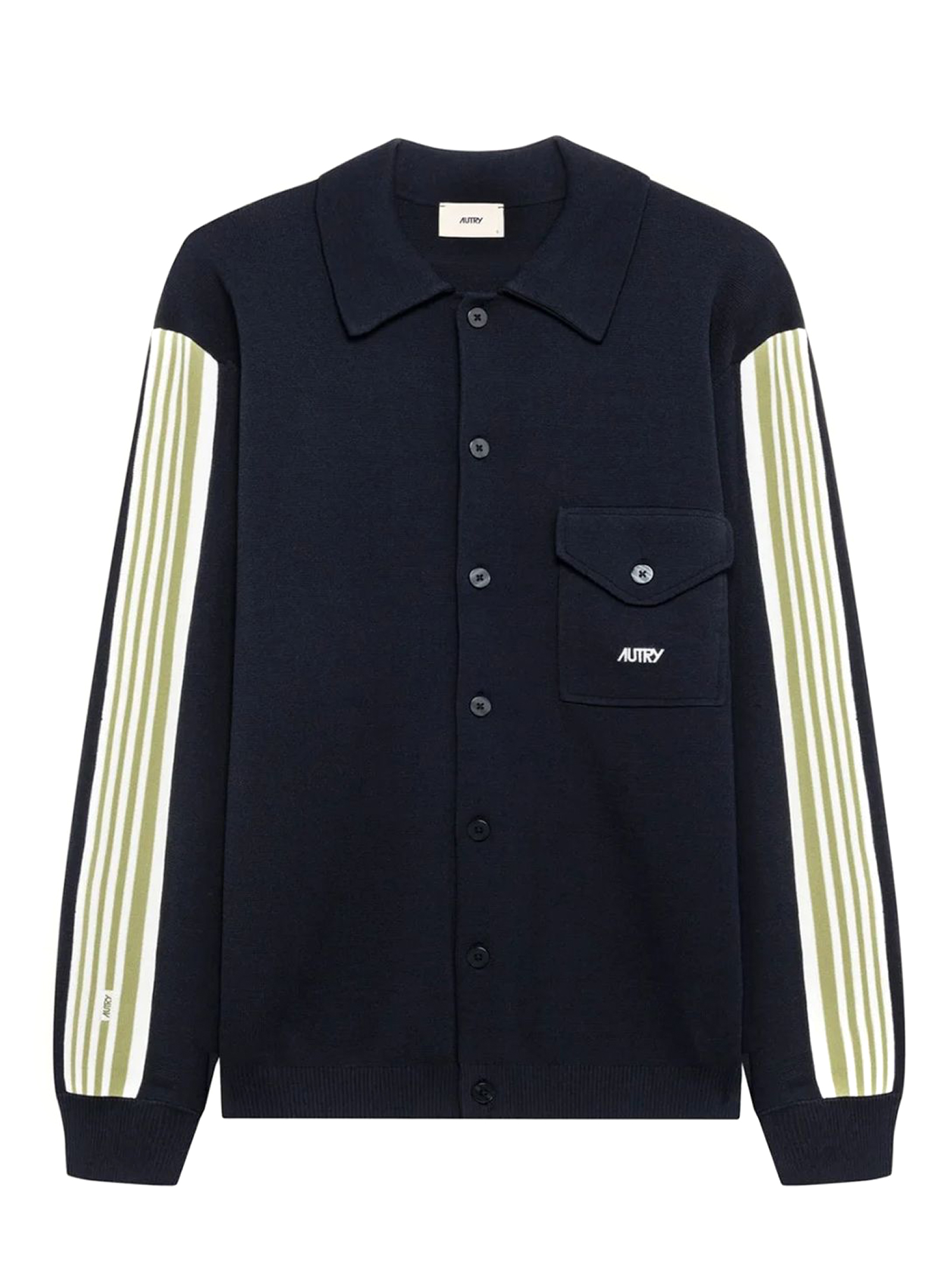 Blue Knitted Viscose Shirt Jacket with buttons, Side band with contrast stripes, Autry embroidery logo, Regular fit, 65% viscose - 35% nylon