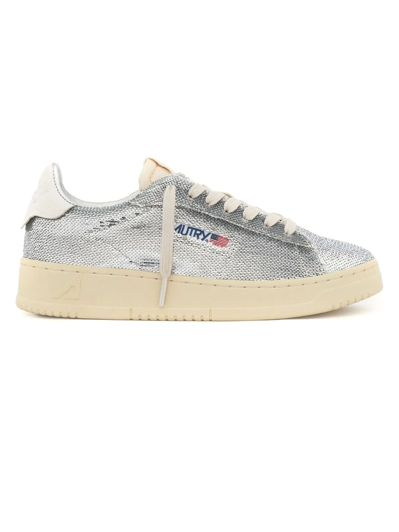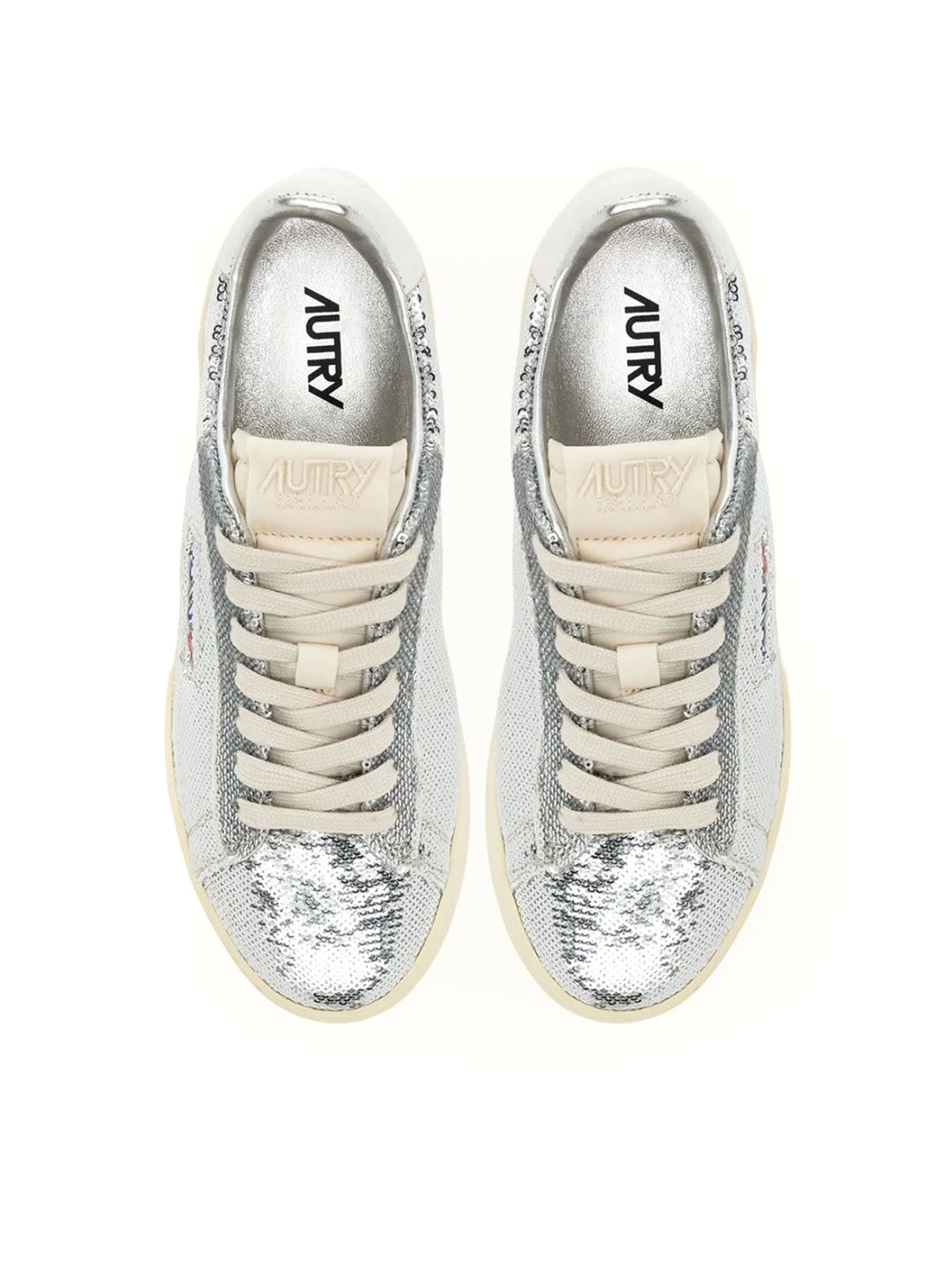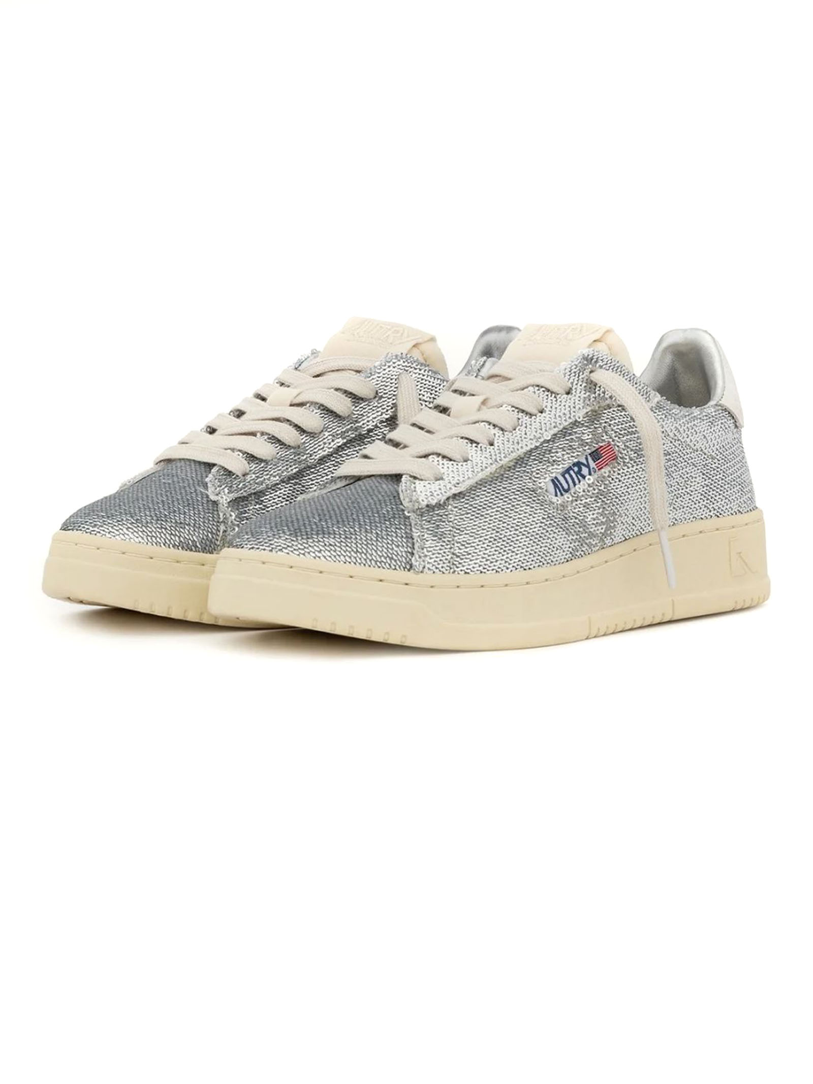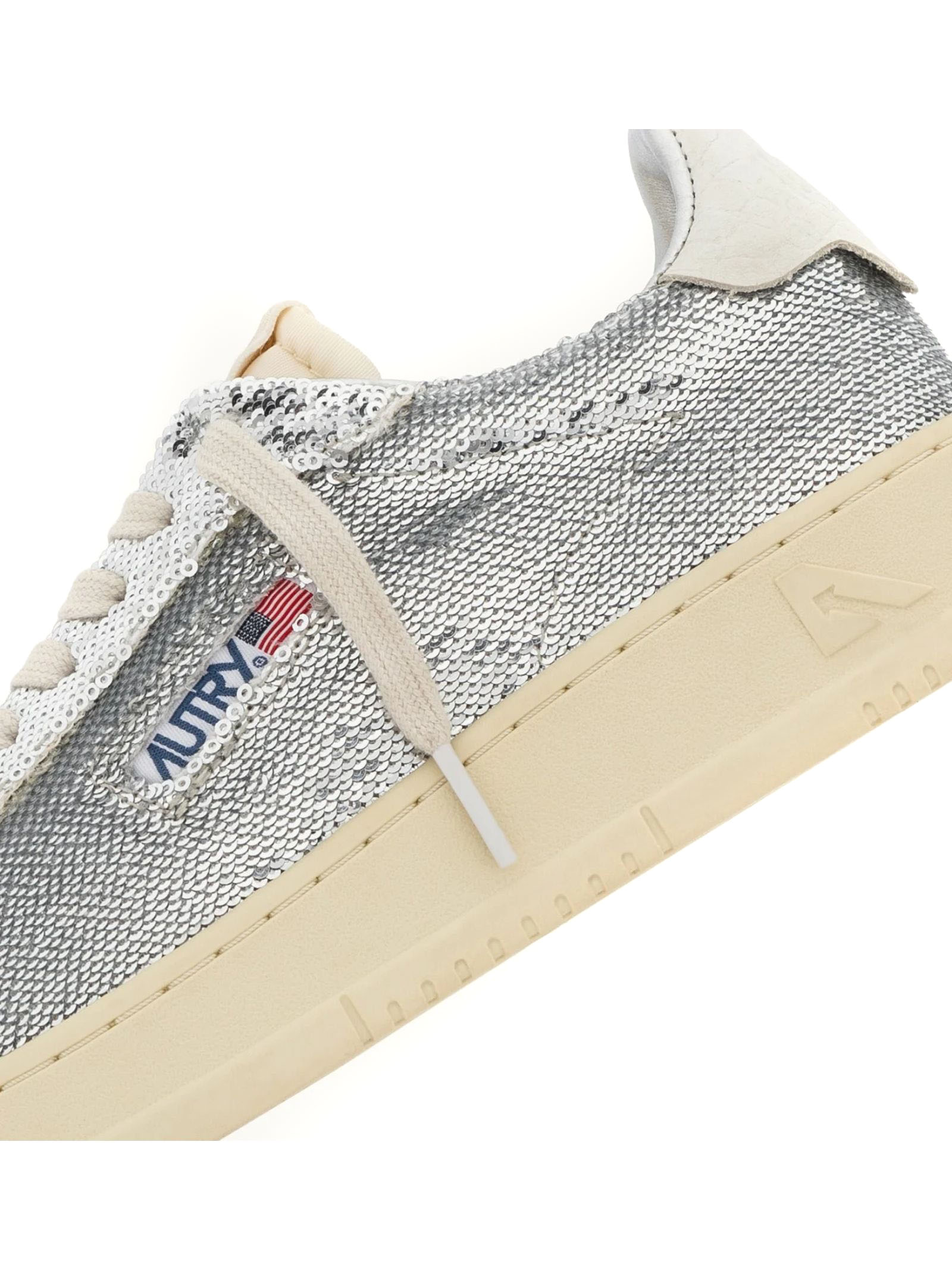 Dallas Low 'Sparkling' Sneakers Sparkling In Silver And Whitesequins, Flat laces in cotton, Jacquard logo, Embroidery label detailing seamed at the tongue, Padded collar, Leather and cotton terry lining, 2 cm-high raised sockliner in leather, Rubber sole, Height of sole: 2.5-3.5 cm