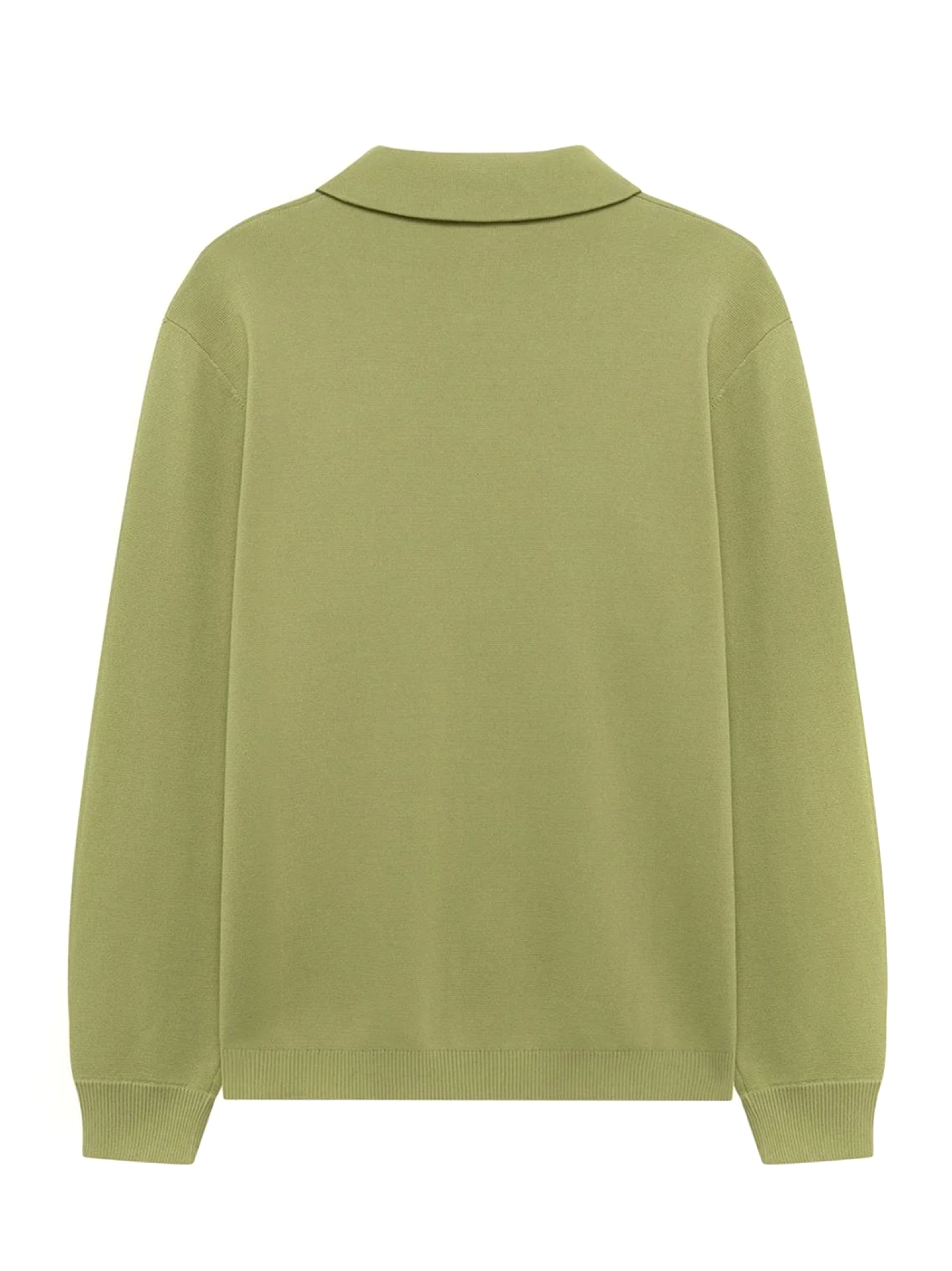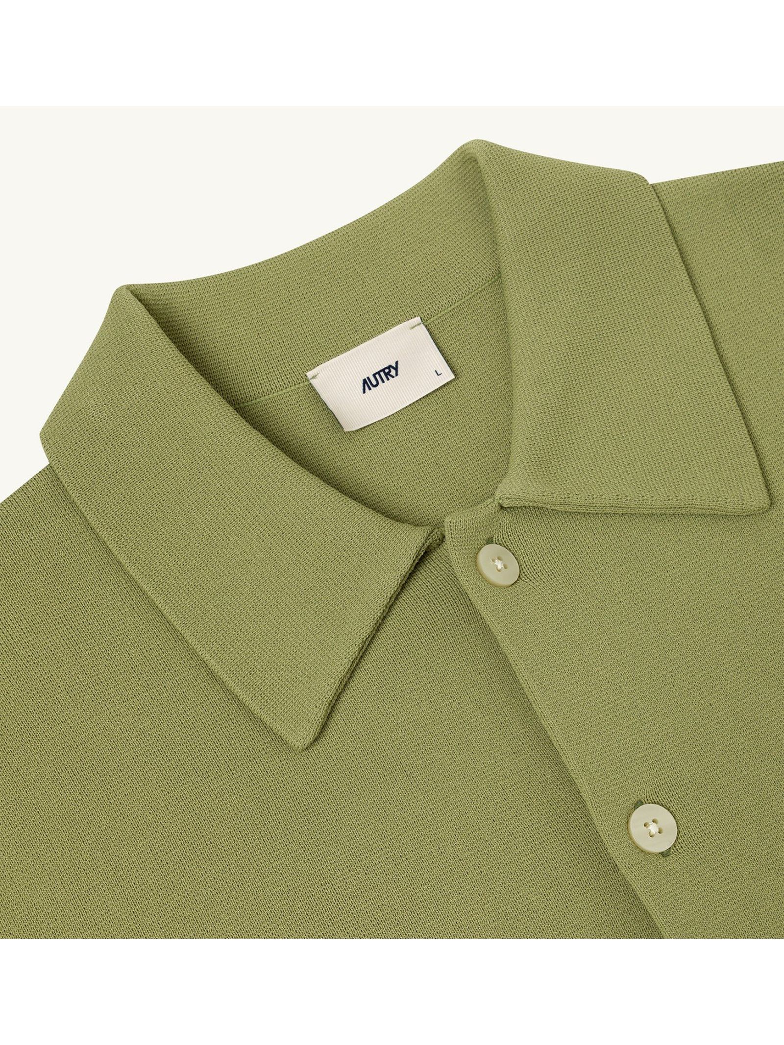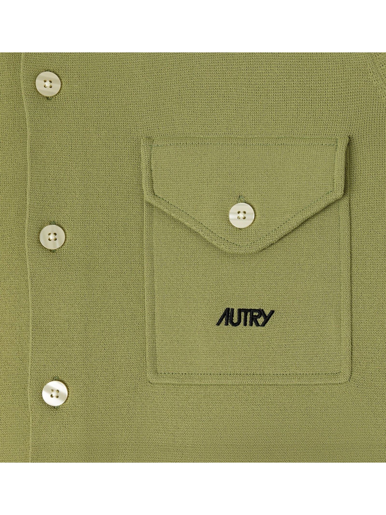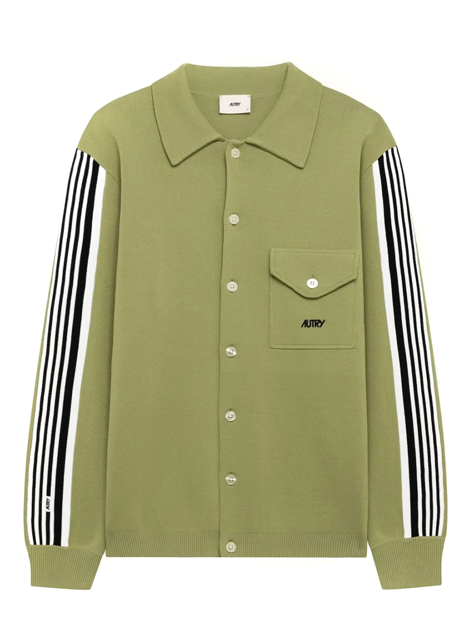 Green Knitted Viscose Shirt Jacket with buttons, Side band with contrast stripes, Autry embroidery logo, Regular fit, 65% viscose - 35% nylon