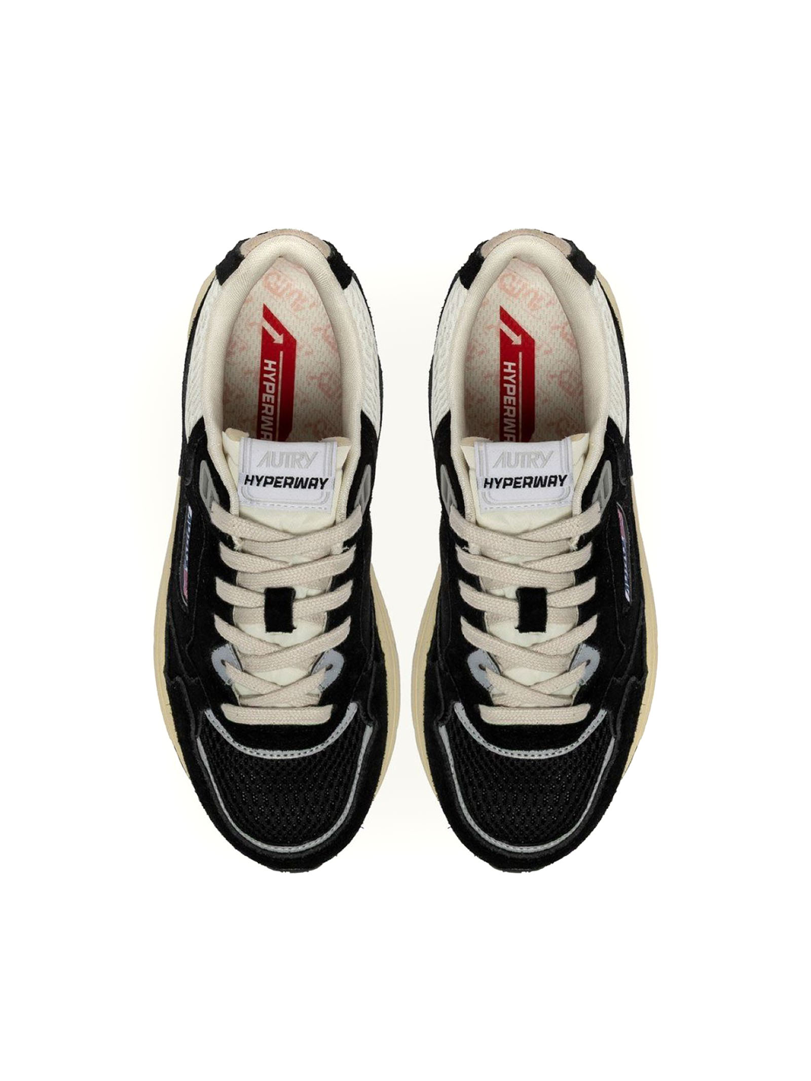 Hyperway Sneakers In Black And Silver Mesh And Suede, Mesh and suede upper, Mesh toe, Flat cotton laces, Jacquard logo label, Padded ankle collar in mesh, Cotton terry lining. 1.5 mm high raised mesh fabric-lined sockliner, PI sole, Height of sole: 3.5 cm, Upper: 70% suede, 15% mesh (100% PL), 10% nylon, 5% synthetic material (100% PU)Lining: 50% cotton terry, 10% nylon, 20% leather, 20% mesh (100% PL), Upper: 70% suede, 15% mesh (100% PL), 10% nylon, 5% synthetic material (100% PU)Lining: 50% cotton terry, 10% nylon, 20% leather, 20% mesh (100% PL)