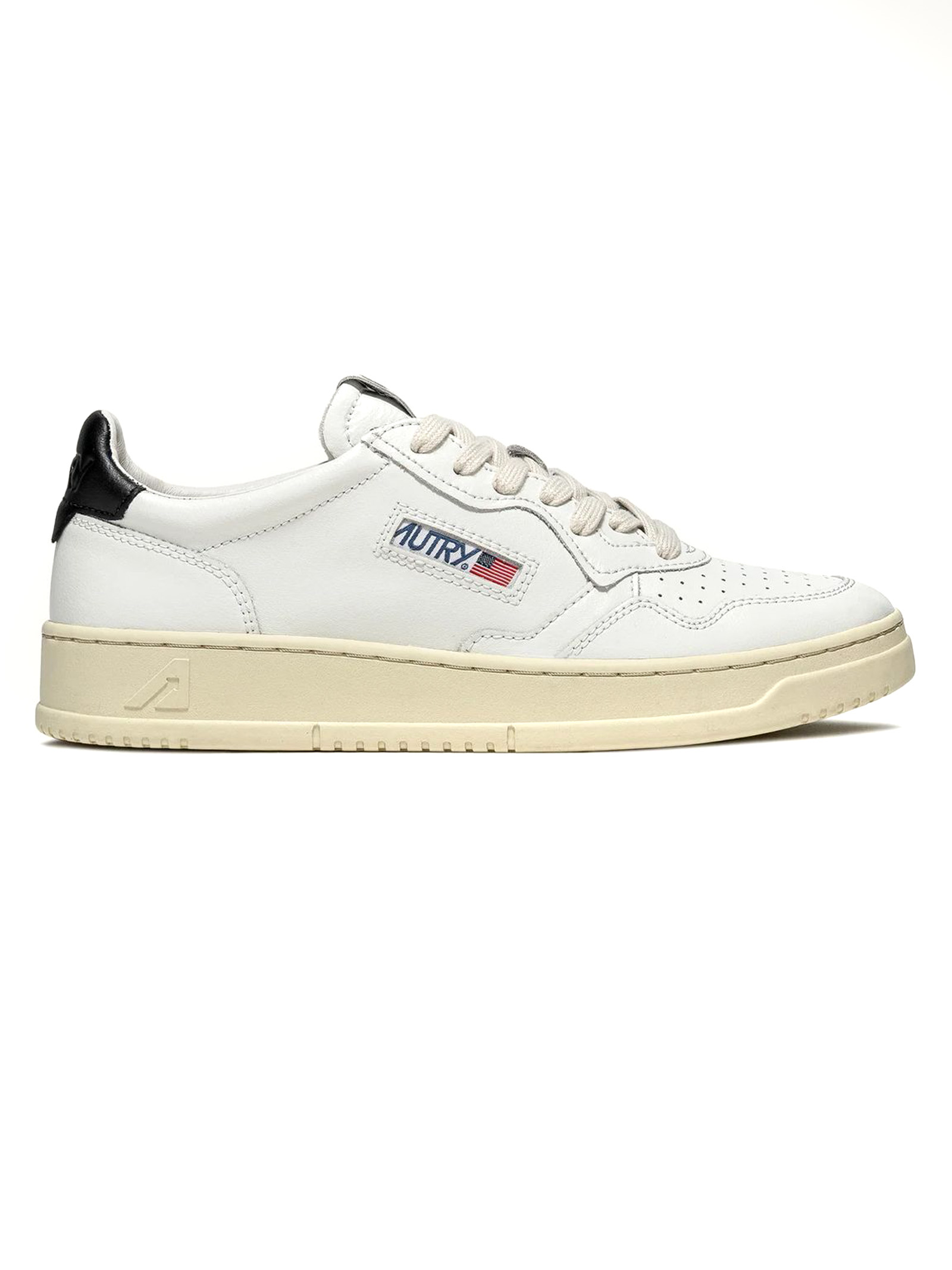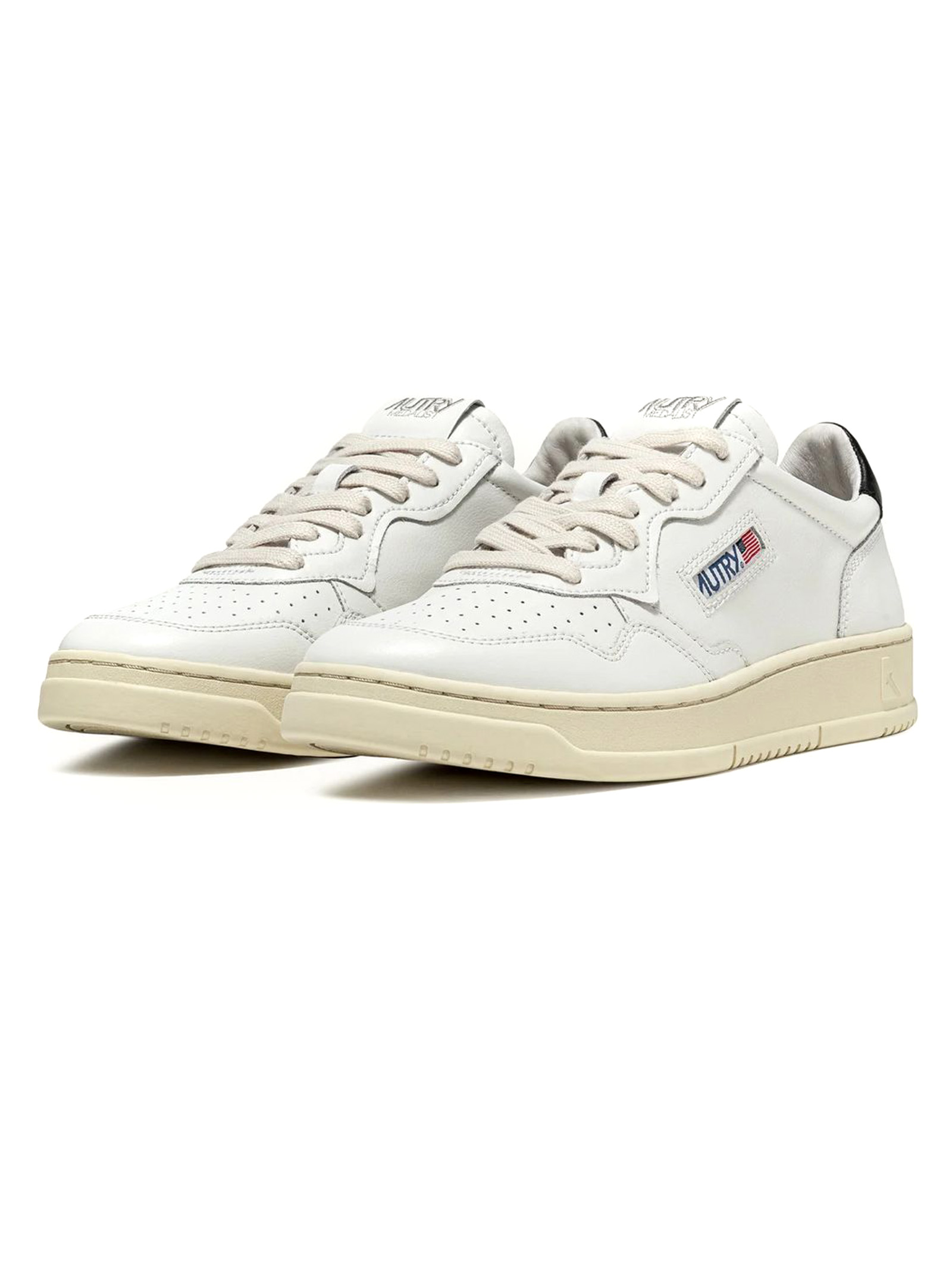 Medalist Low Sneakers In White And Black Leather, Perforated toe, Flat cotton laces, Label sewn on tongue, Padded ankle collar, Lined in leather and cotton terry, 2 cm leather insole, Rubber sole, Height of sole: 2,5-3,5 cm, Fabric dust bag