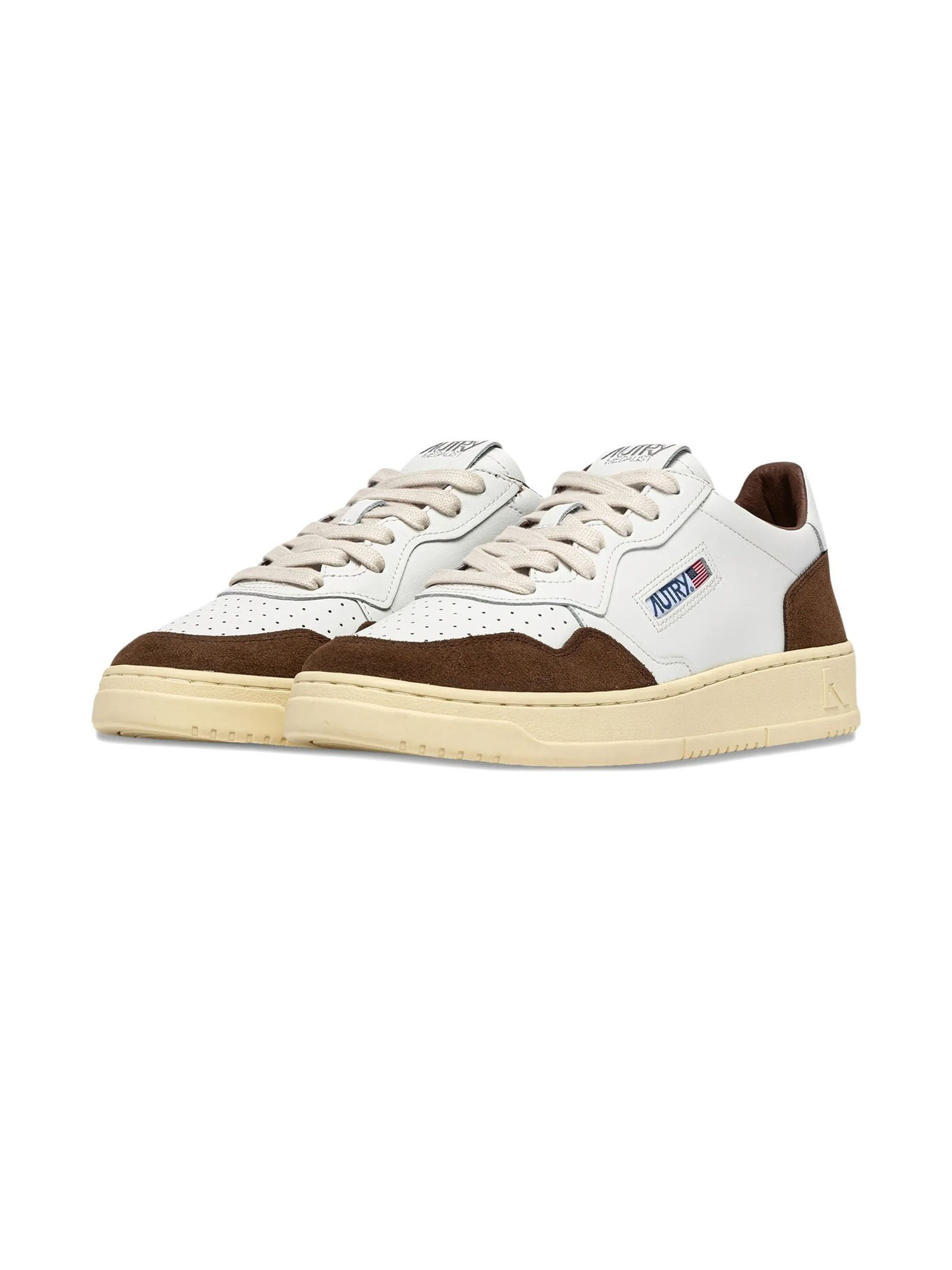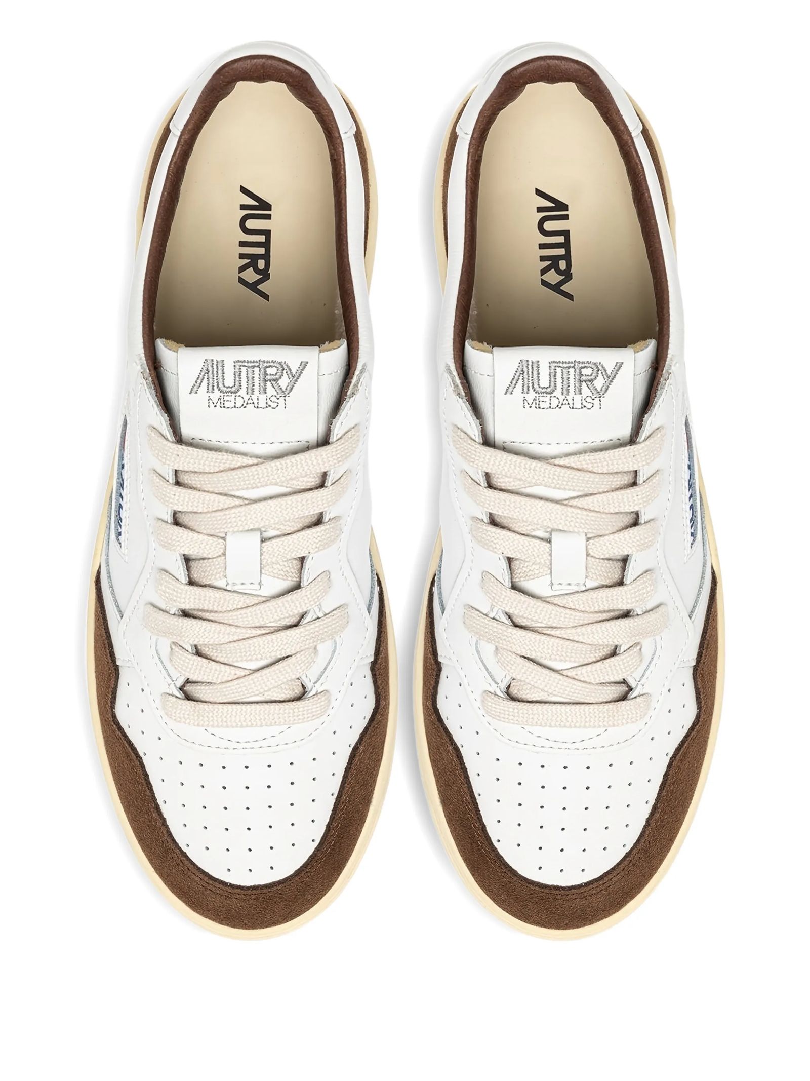 Medalist Low Sneakers In White Leather And Tundra Suede, Upper in suede and leather, Micro-perforated toe, Flat cotton laces, Embroidery label detailing seamed at the tongue, Padded ankle collar, Leather and cotton terry lining, 2 cm-high raised sockliner in leather, Rubber sole, Height of sole: 2.5-3.5 cm, Upper: 80% leather, 20% suedeLining: 40% leather, 50% cotton terry, 10% nylon