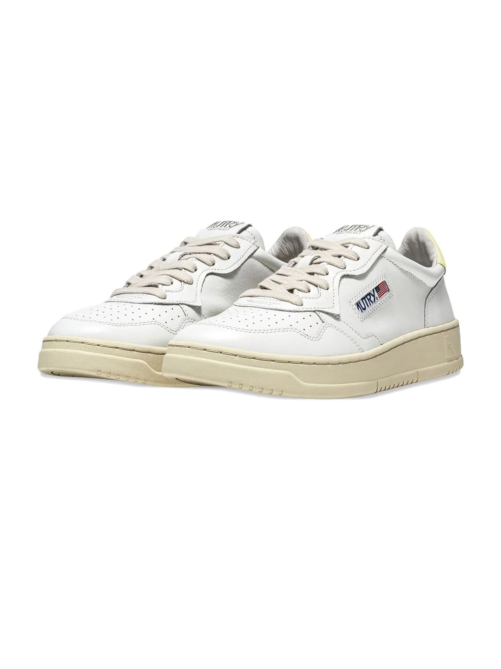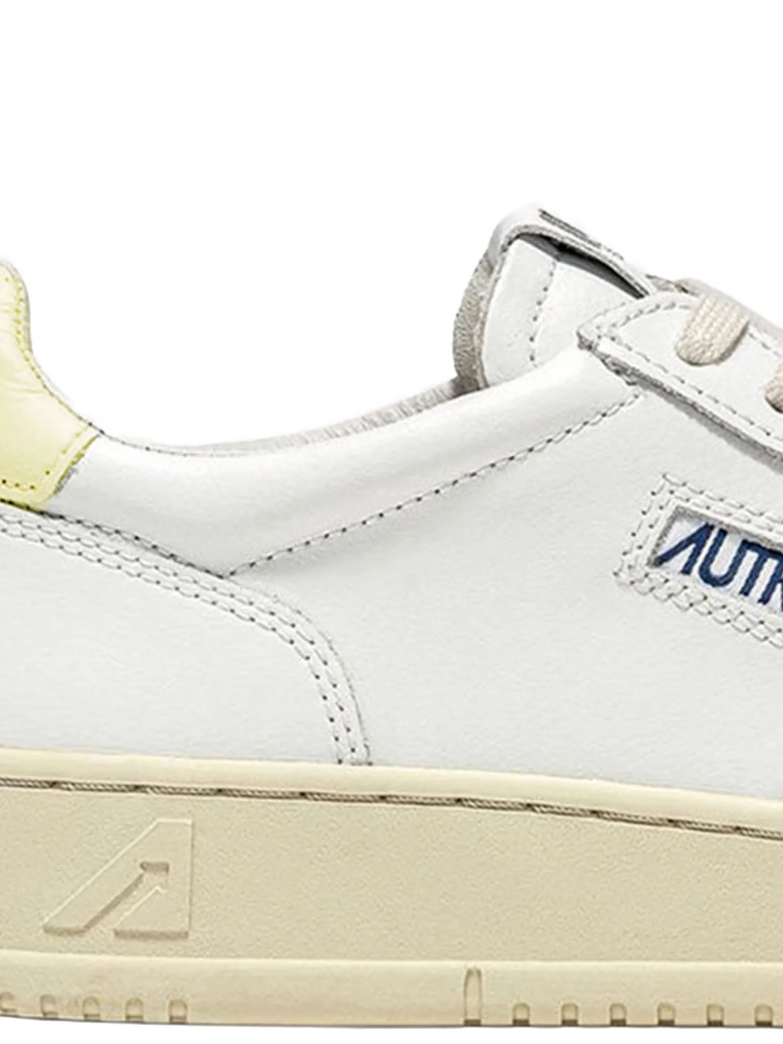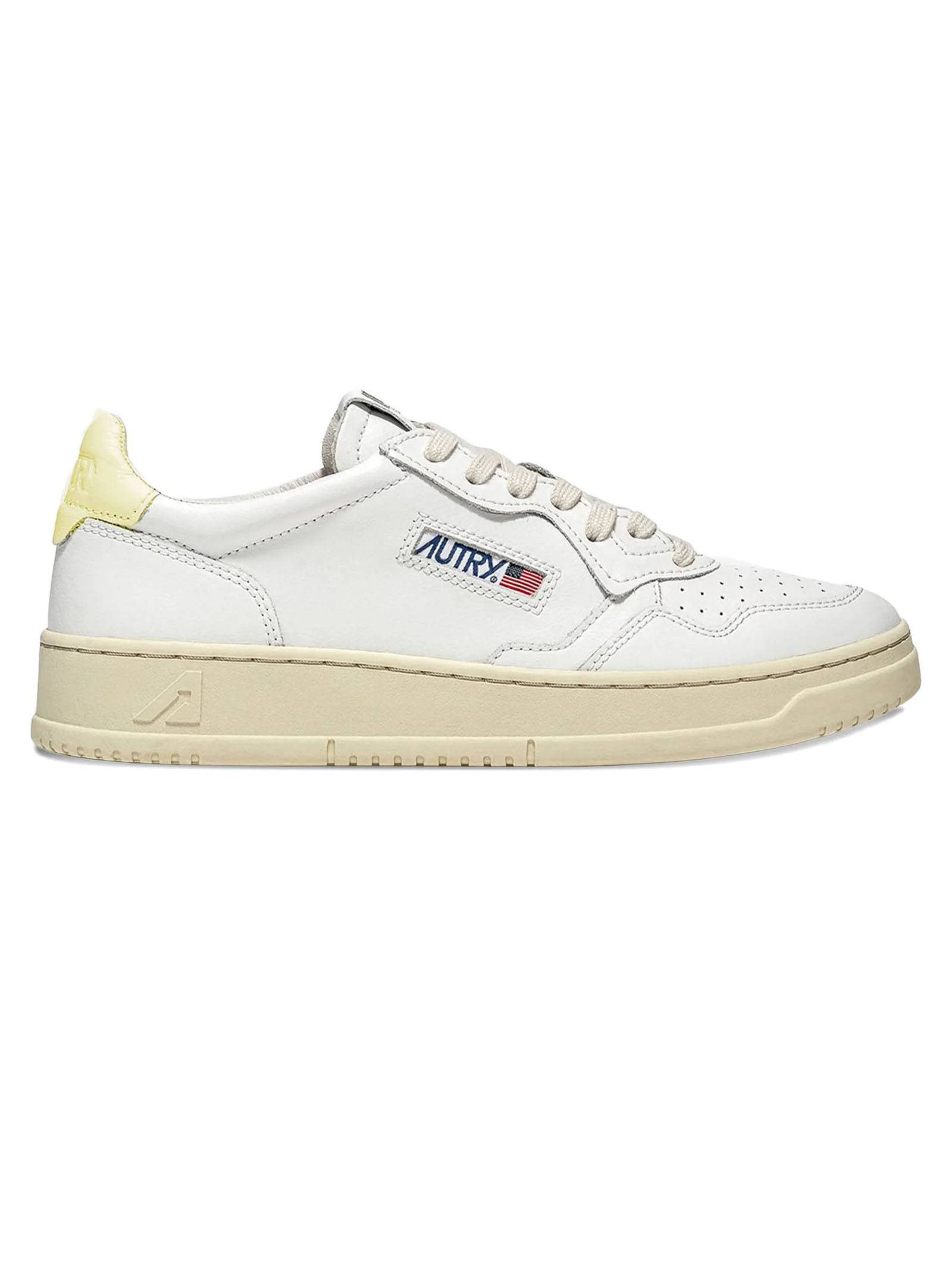 Medalist Low Sneakers In White Leather, Yellow, Leather upper, Micro-perforated toe, Flat cotton laces, Stitched label with embroidered logo on the tongue, Padded collar, Leather and cotton-terry lining, 2 cm raised leather insole, Rubber sole, Sole height: 2.53.5 cm, Upper: 100% Cow LeatherLining: 40% Pigskin; 50% Terry Cloth; 10% Nylon