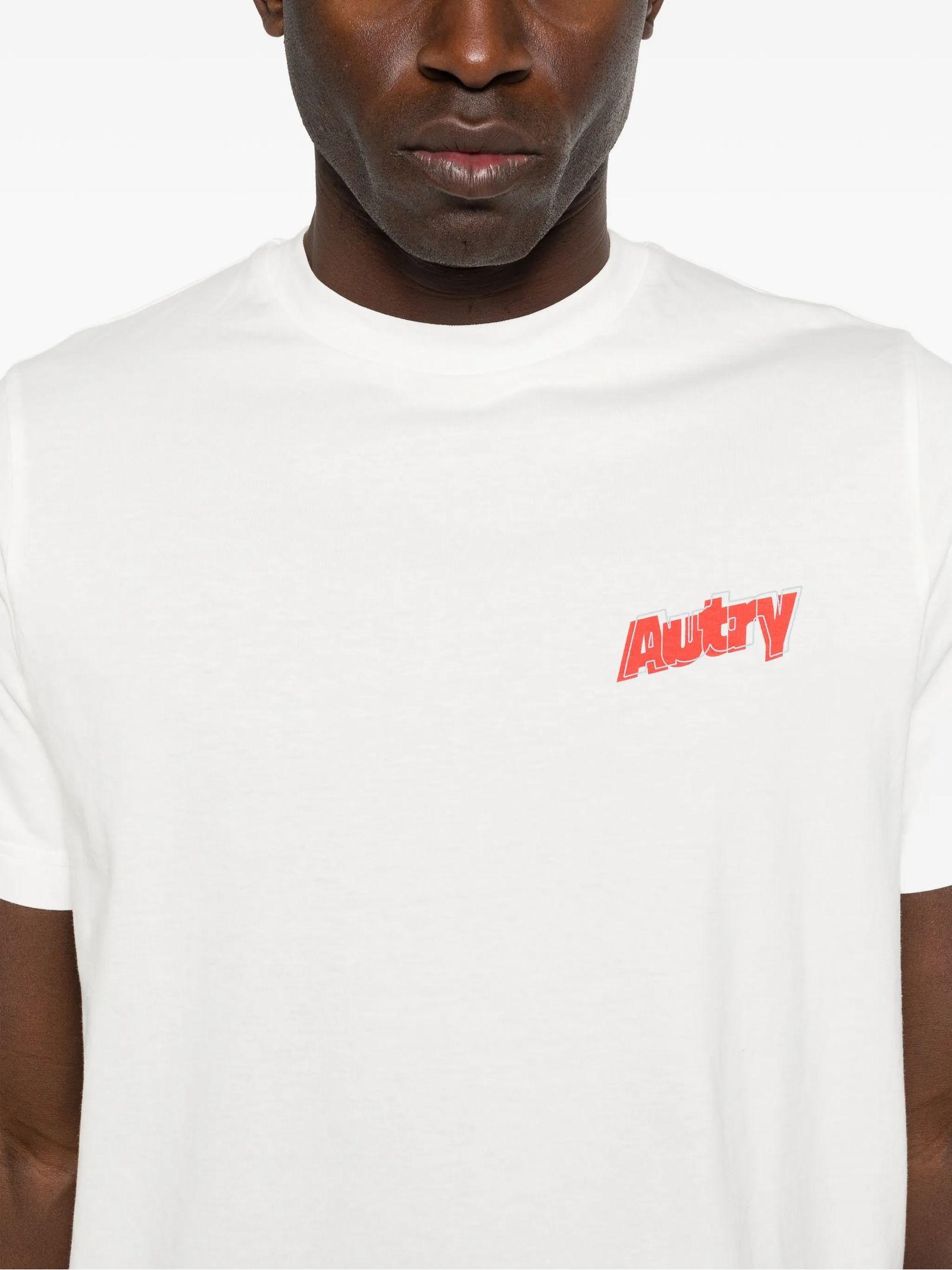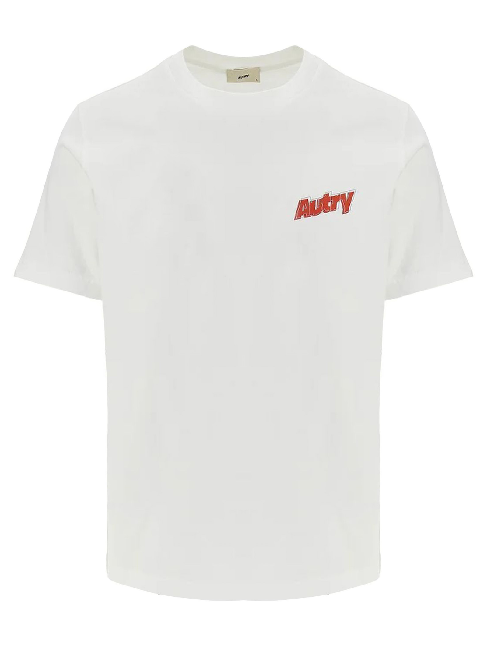 White cotton T-shirt featuring Crew neckline, Ribbed collar, Embroidery logo at chest, Regular fit