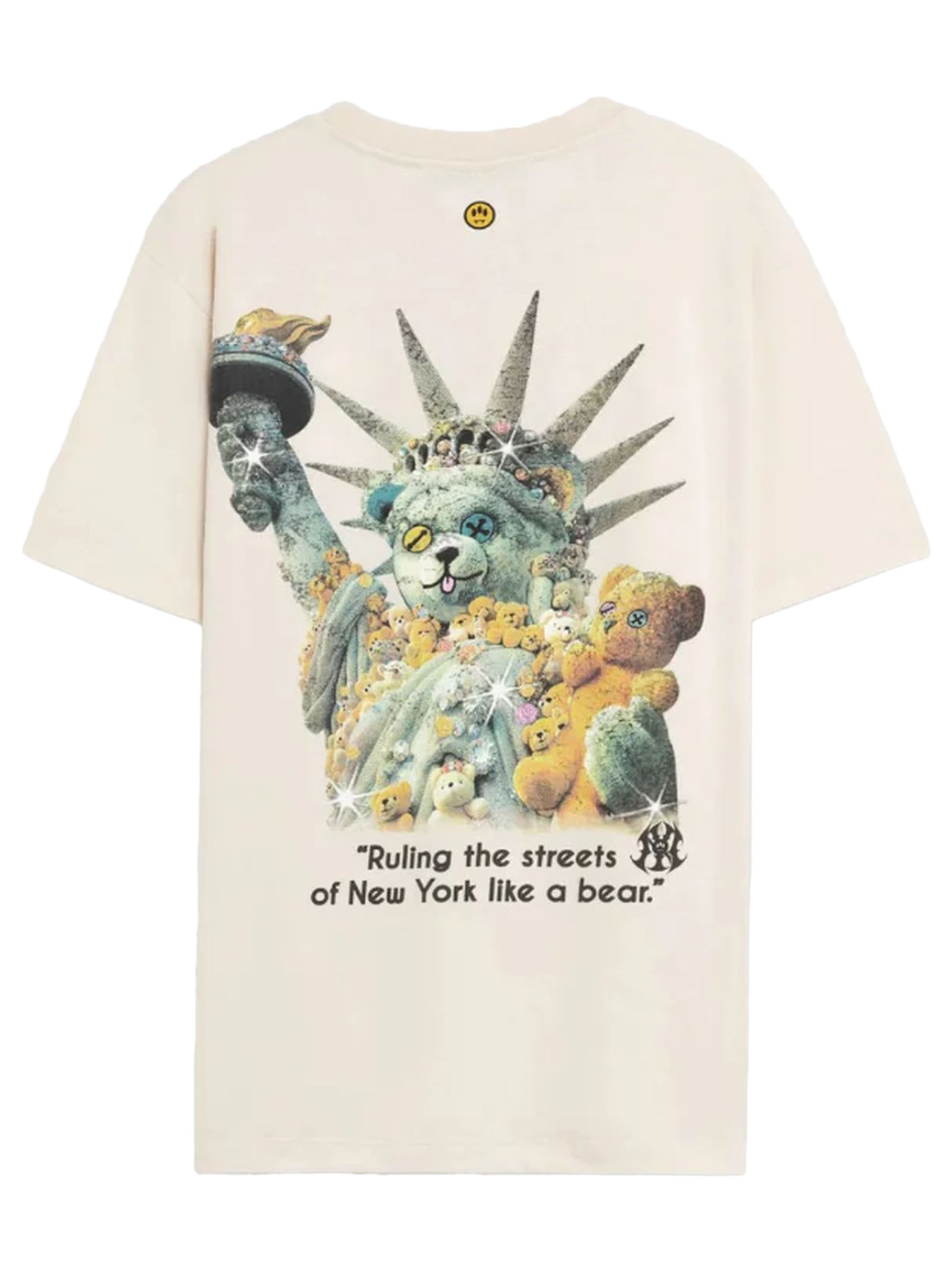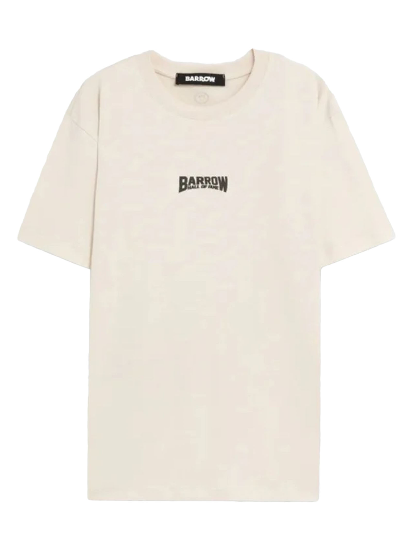 Beige cotton T-shirt with logo, print on the back, round neck, short sleeves