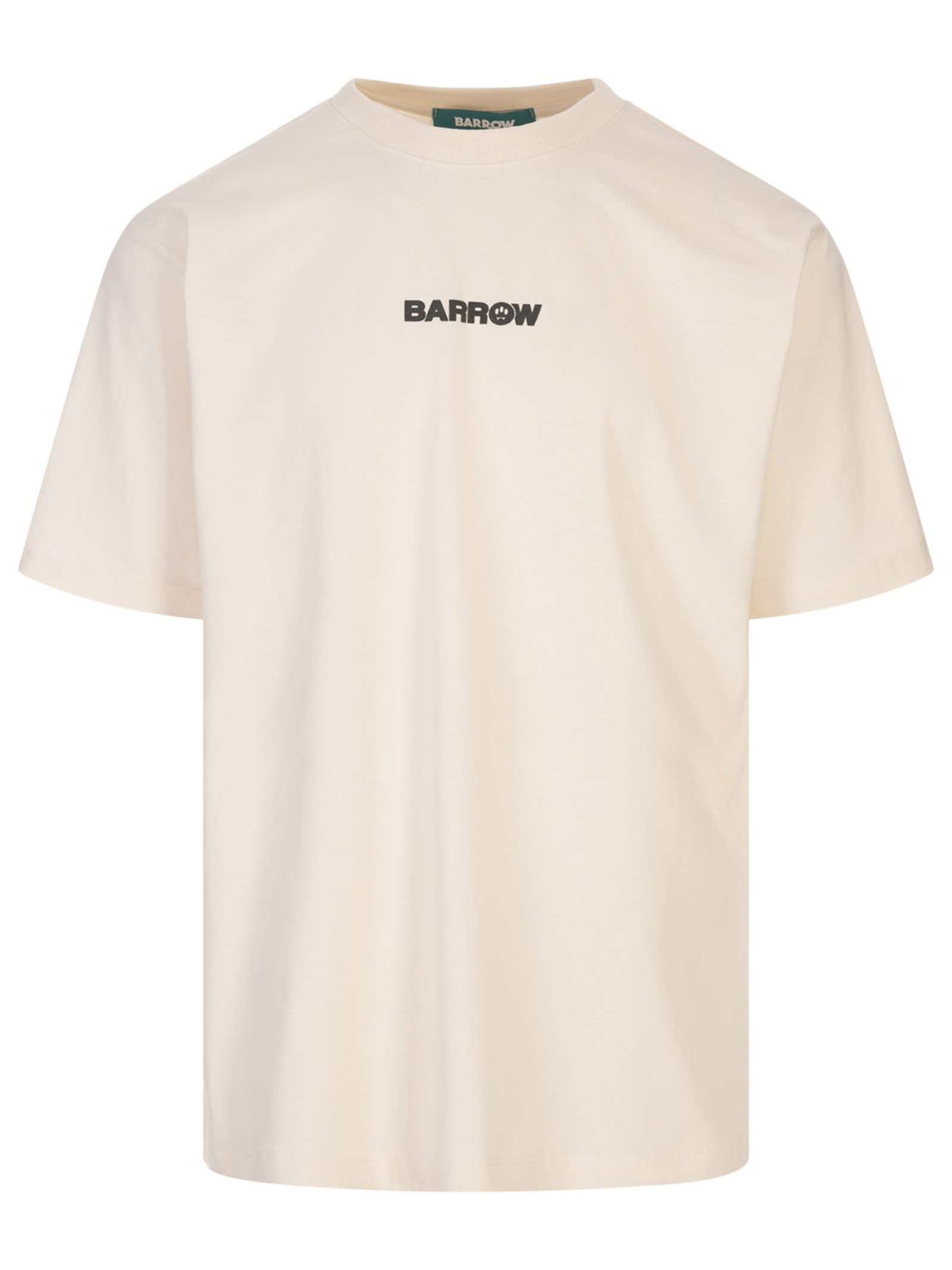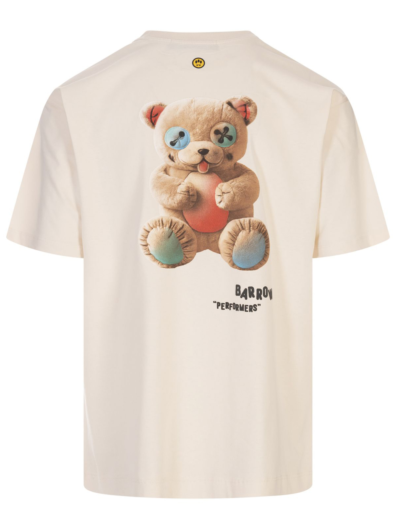 Beige cotton T-shirt, short sleeves, crew neck, statue and teddy bear print