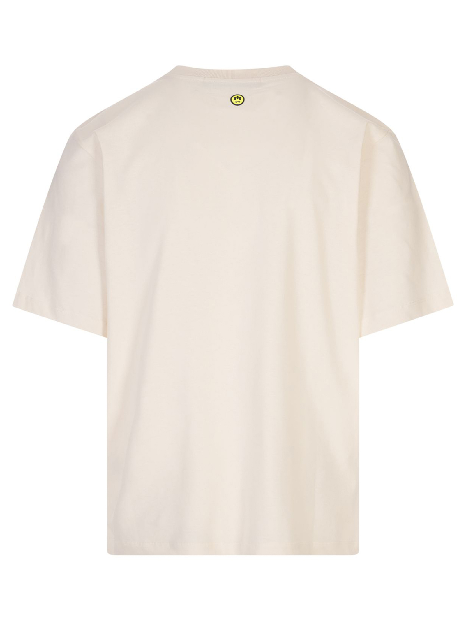 Beige cotton T-shirt, short sleeves, crew neck, print on the back