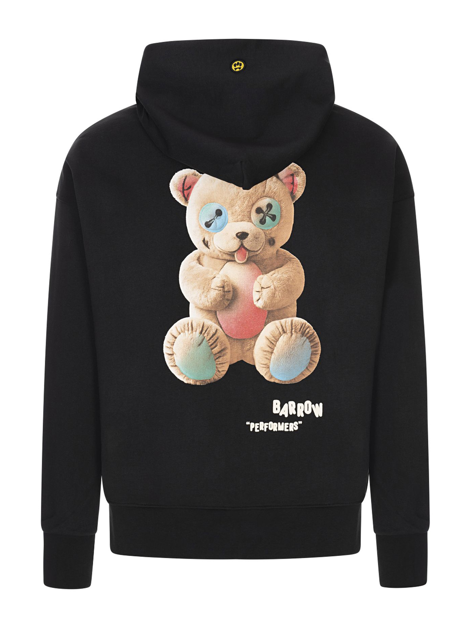 Black cotton hoodie with Barrow lettering logo on the chest, kangaroo pocket and iconic Teddy print on the back.