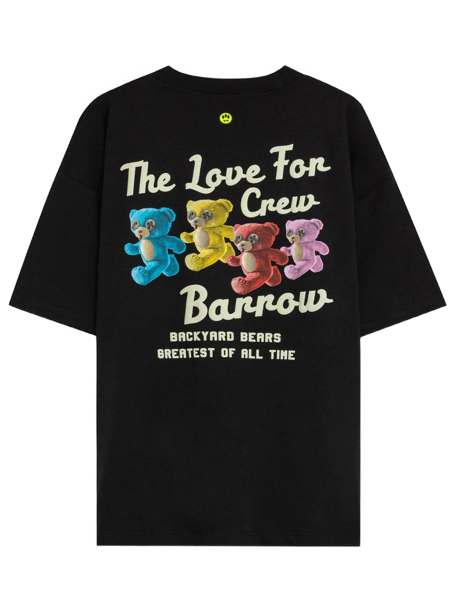 Black cotton T-shirt with logo print, print on the back, short sleeves, round neck