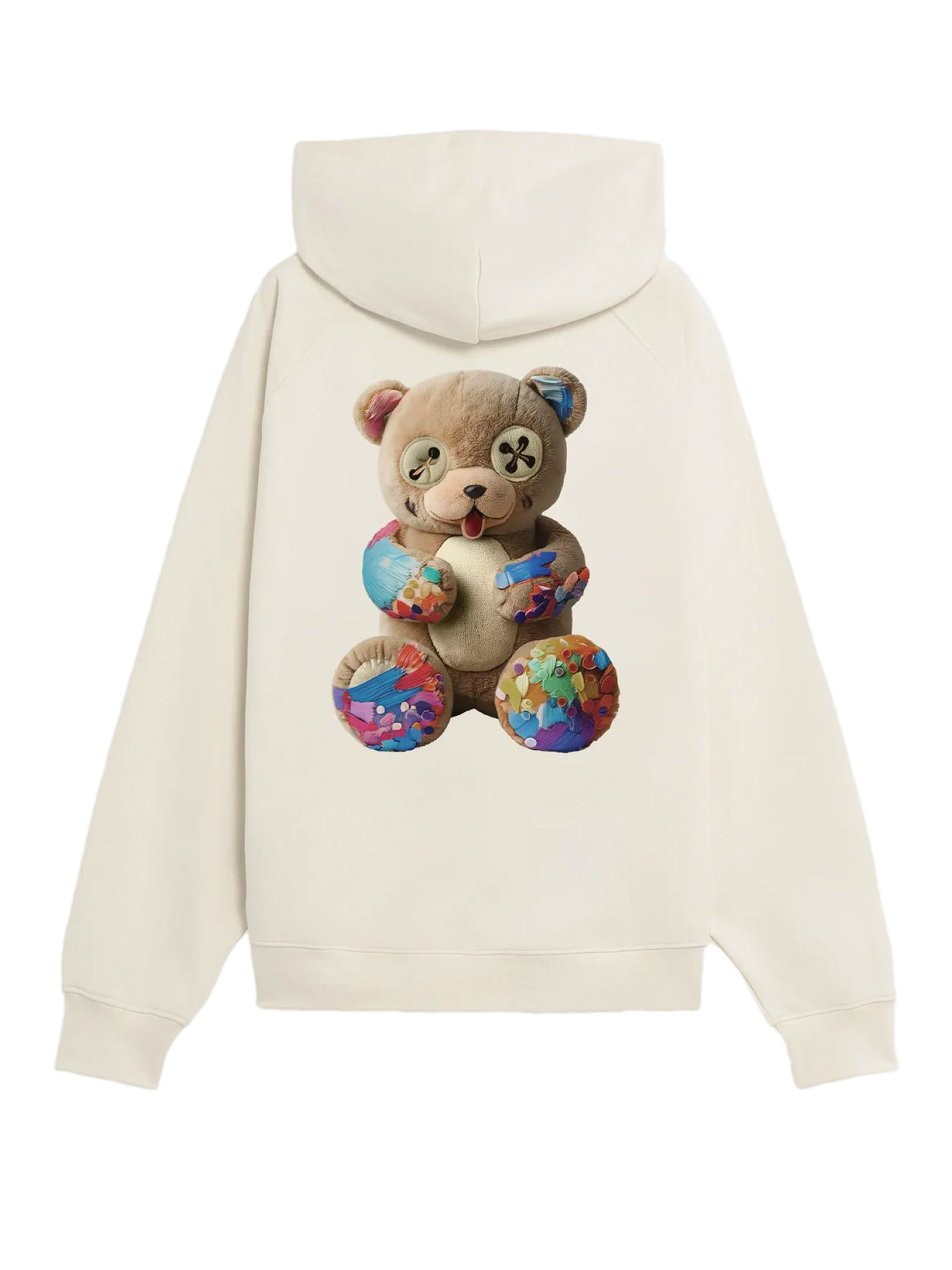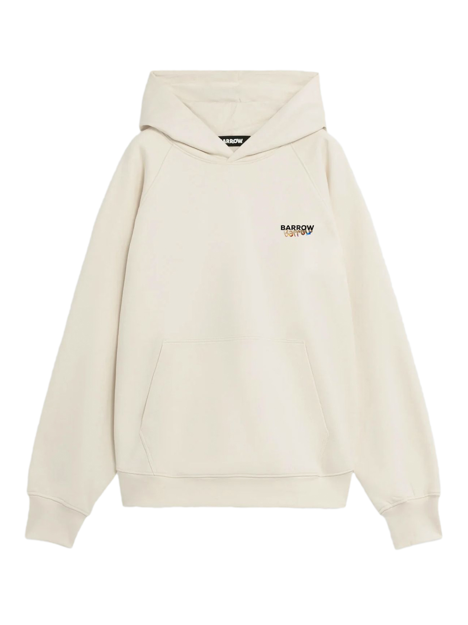 Ogg white cotton hooded sweatshirt with a regular fit. Features a hood and a kangaroo pocket, with a graphic print on the back. Barrow logo applied to the chest. Ribbed cuffs and hem