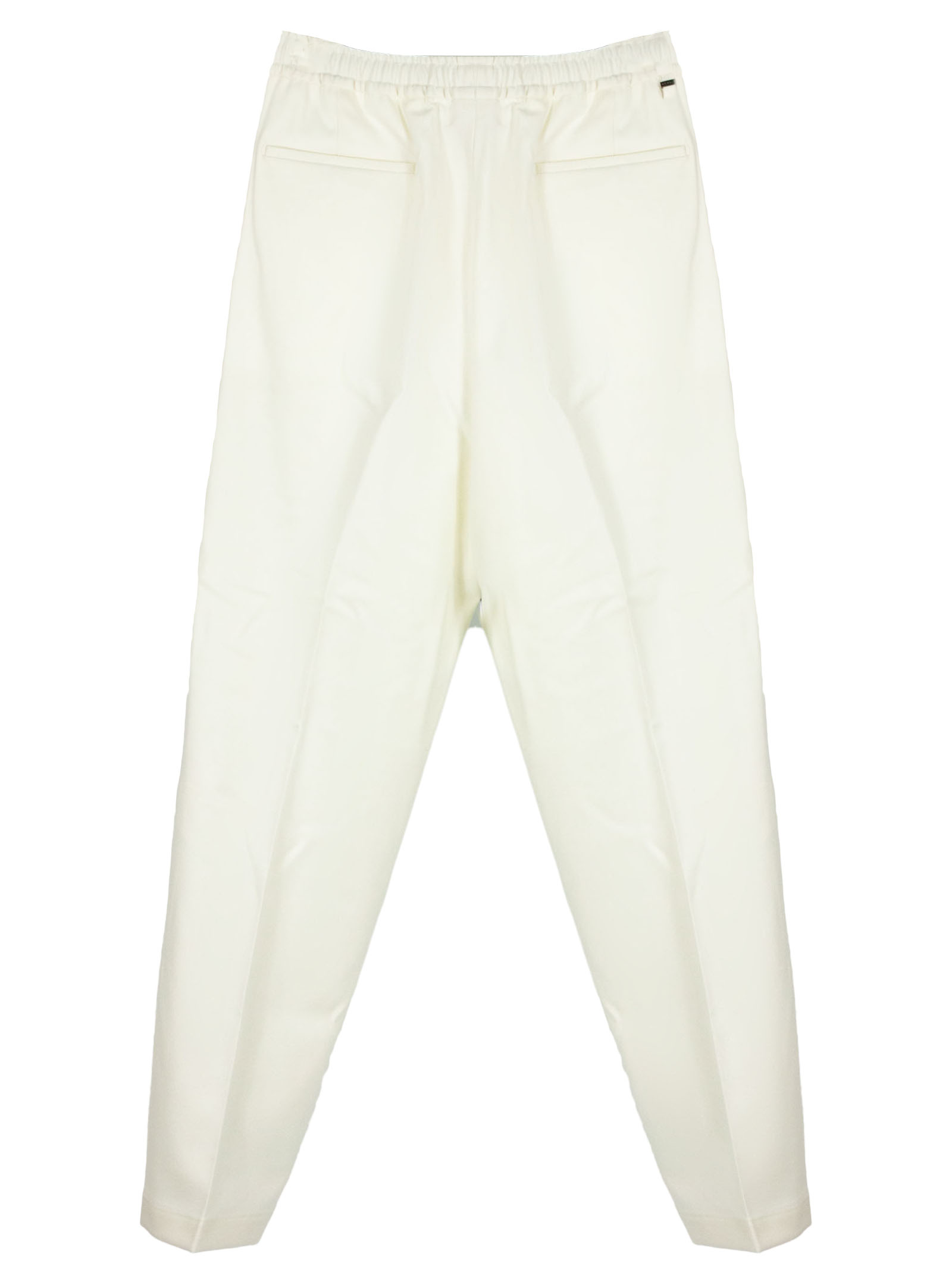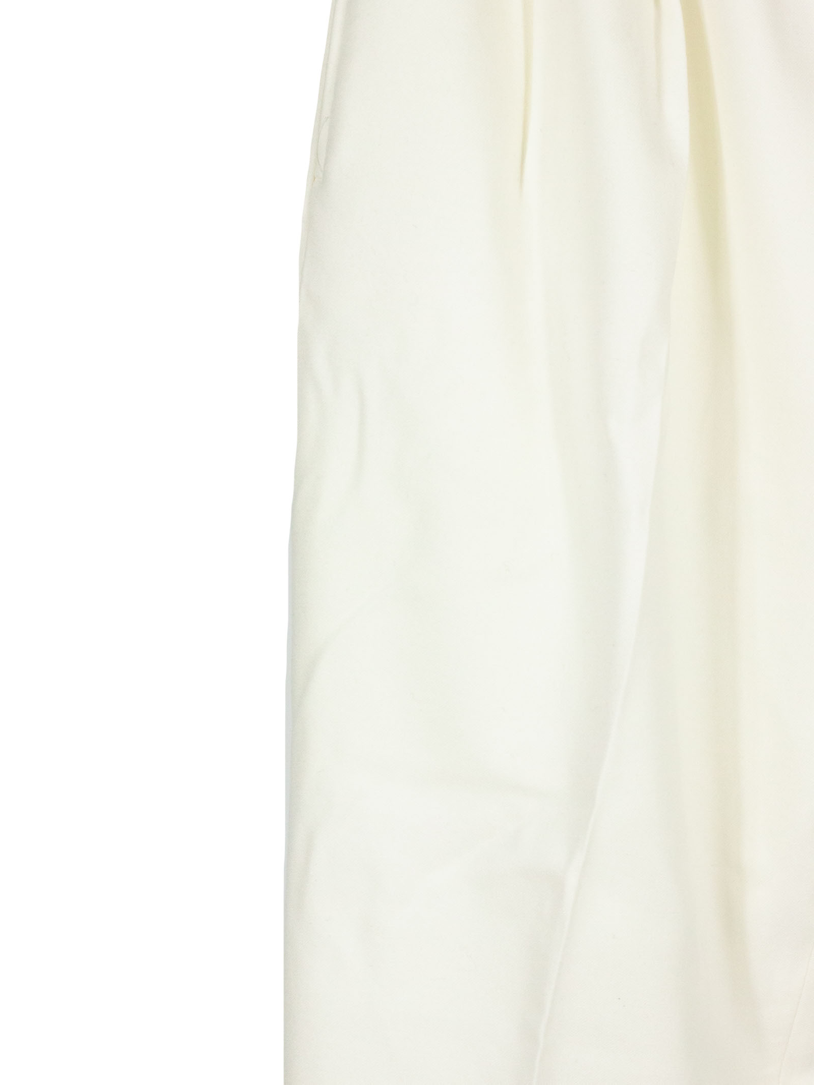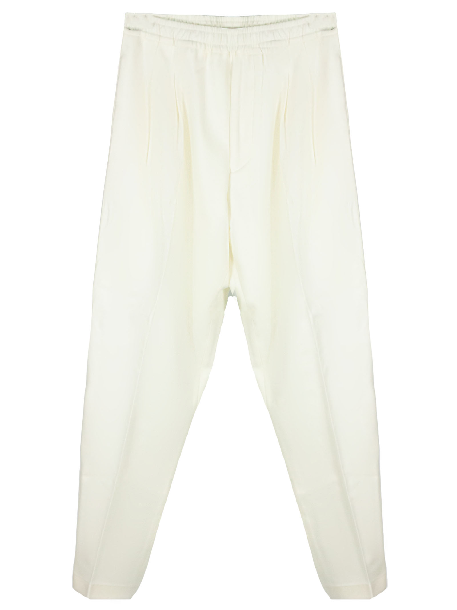 White virgin wool Baddy trousers with internal drawstring, elasticated waist, side pockets, back pockets, pleats