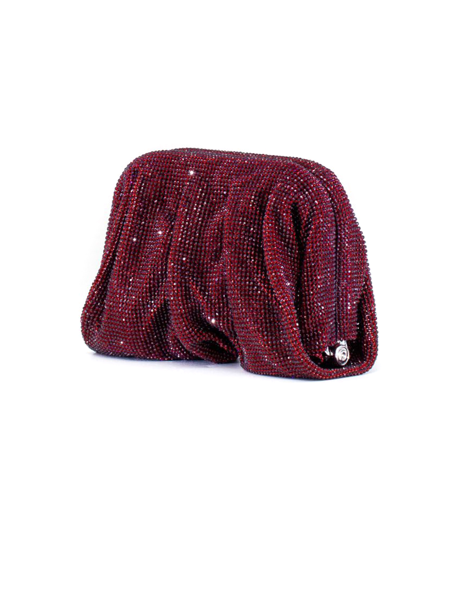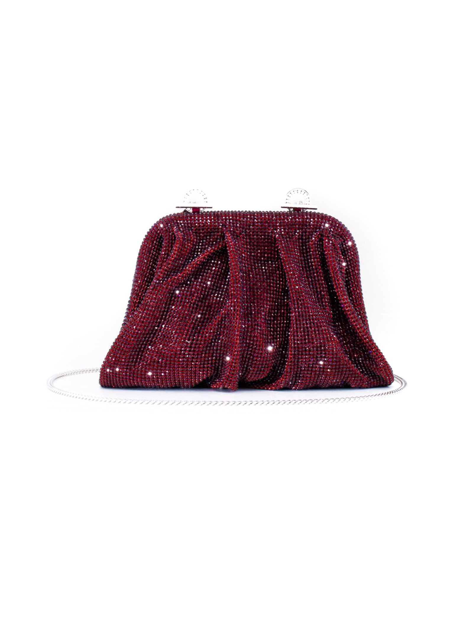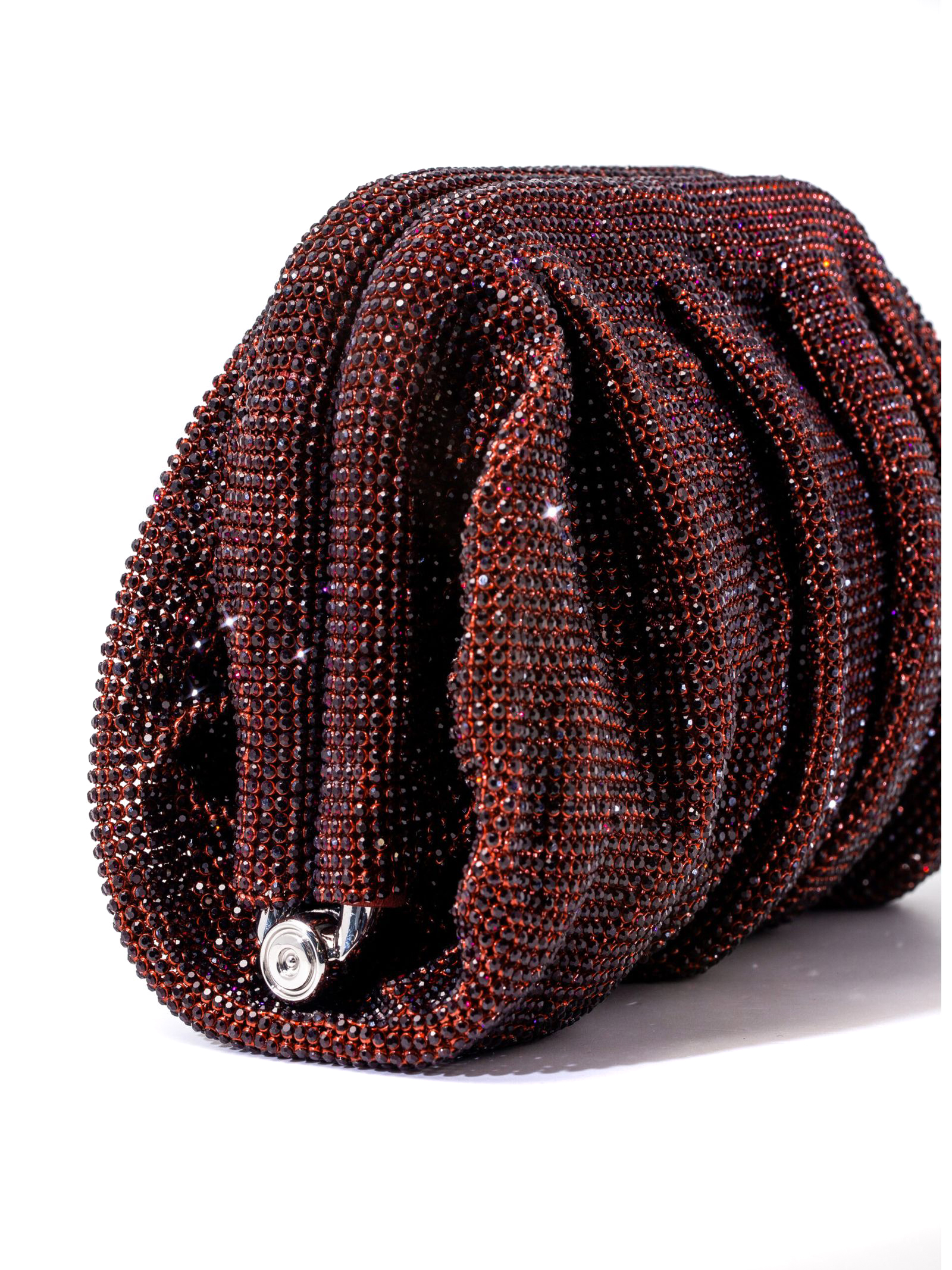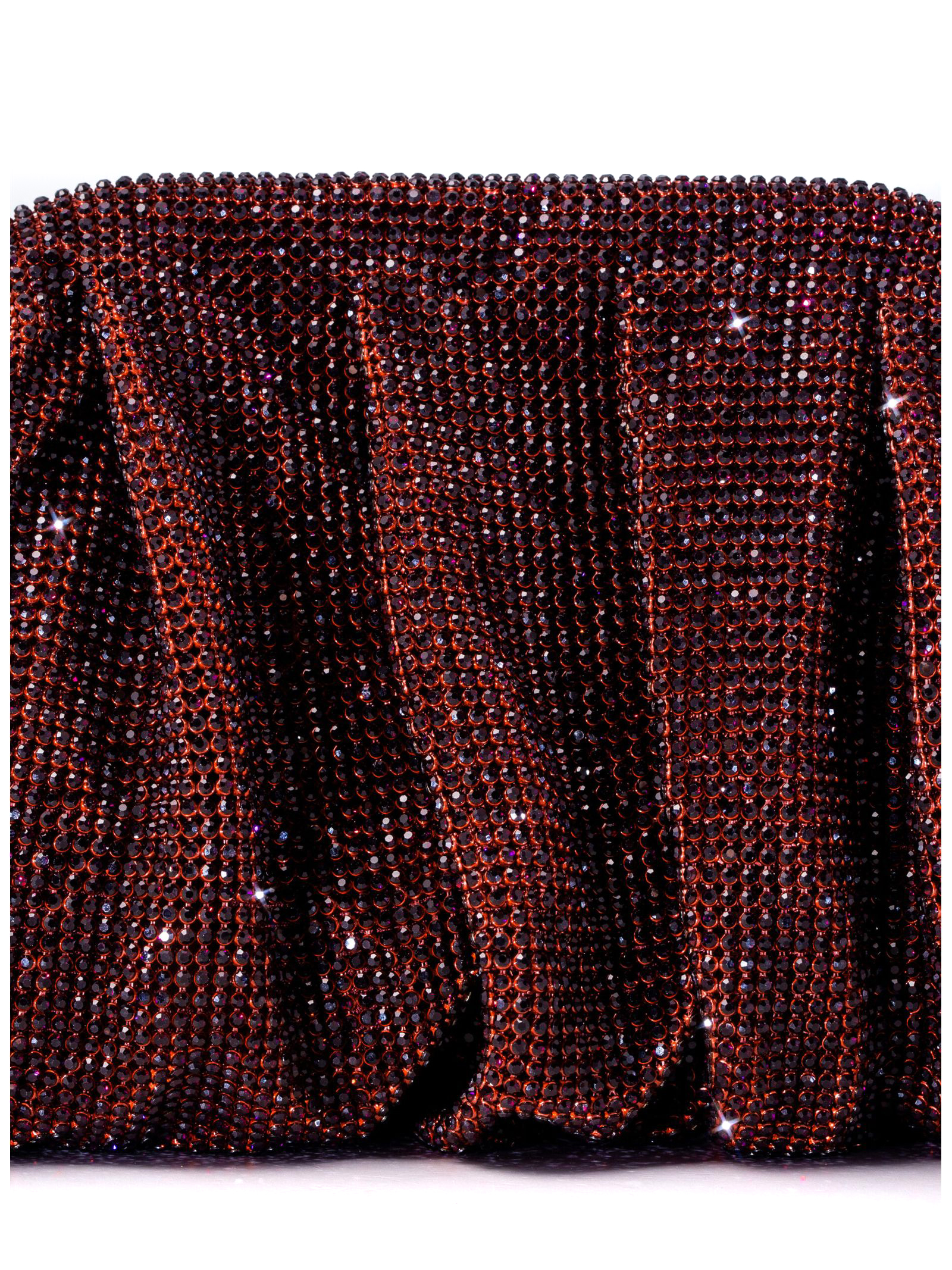 Venus La Petite Miss Dracula with a network of sparkling crystals, Inside, a silk satin clutch, Measures: H: 12cm X D: 5,5cm X W: 22cm, Aluminium mesh studded with crystal rhinestones, Detachable metal chain shoulder strap, External: 100% Metal MeshInternal: 100% Silk Satin