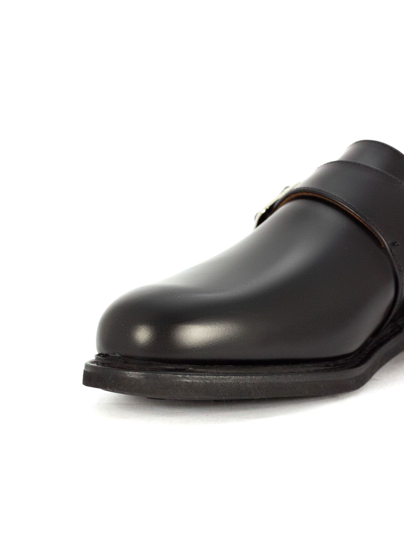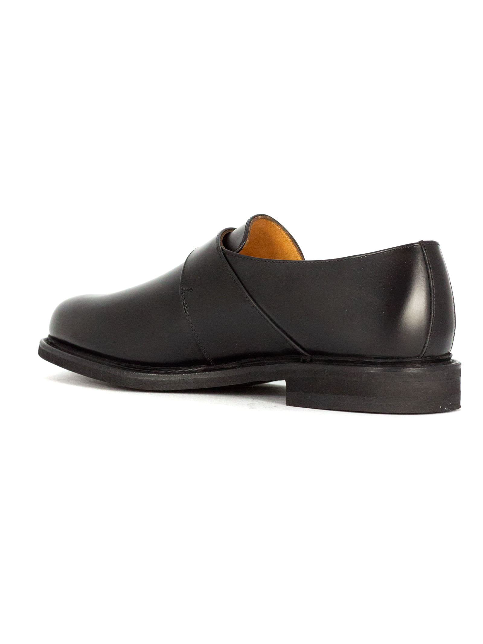 Black leather loafer with buckle fastening, leather insole, rubber sole, Goodyear Welt