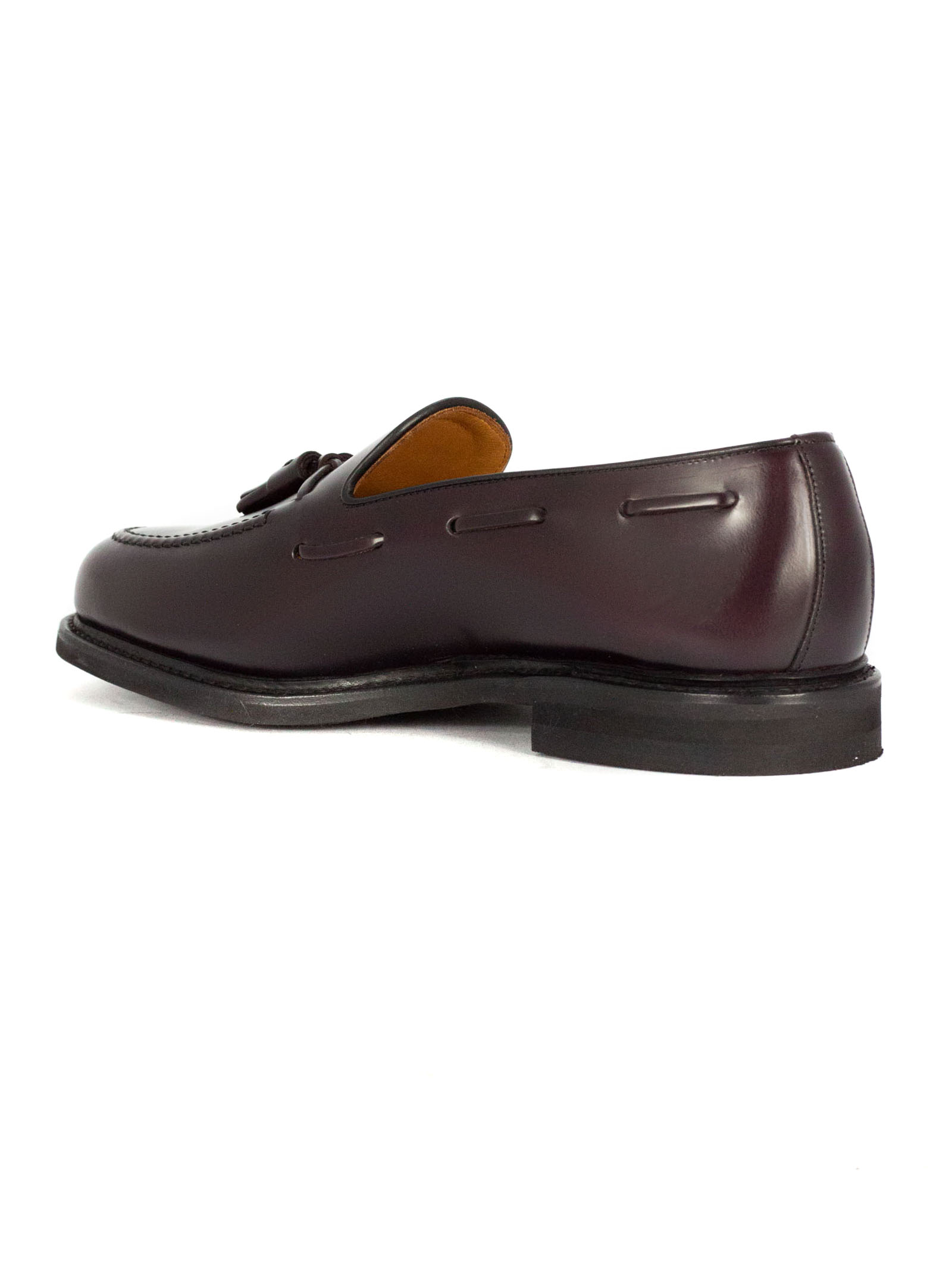 Bordeaux leather loafer with tassels, lace-up fastening, leather insole, Dainite sole, Construction: Goodyear Welt