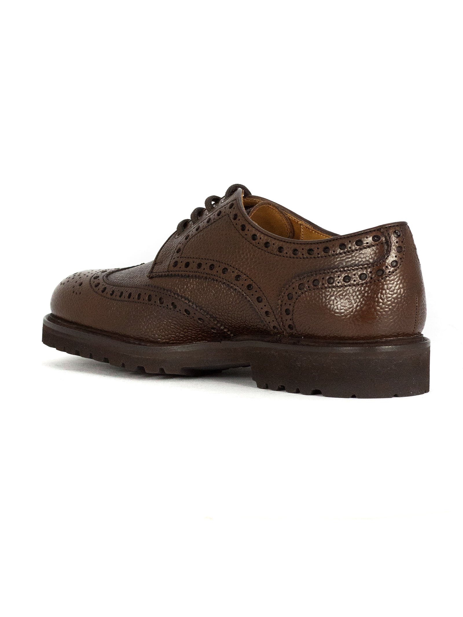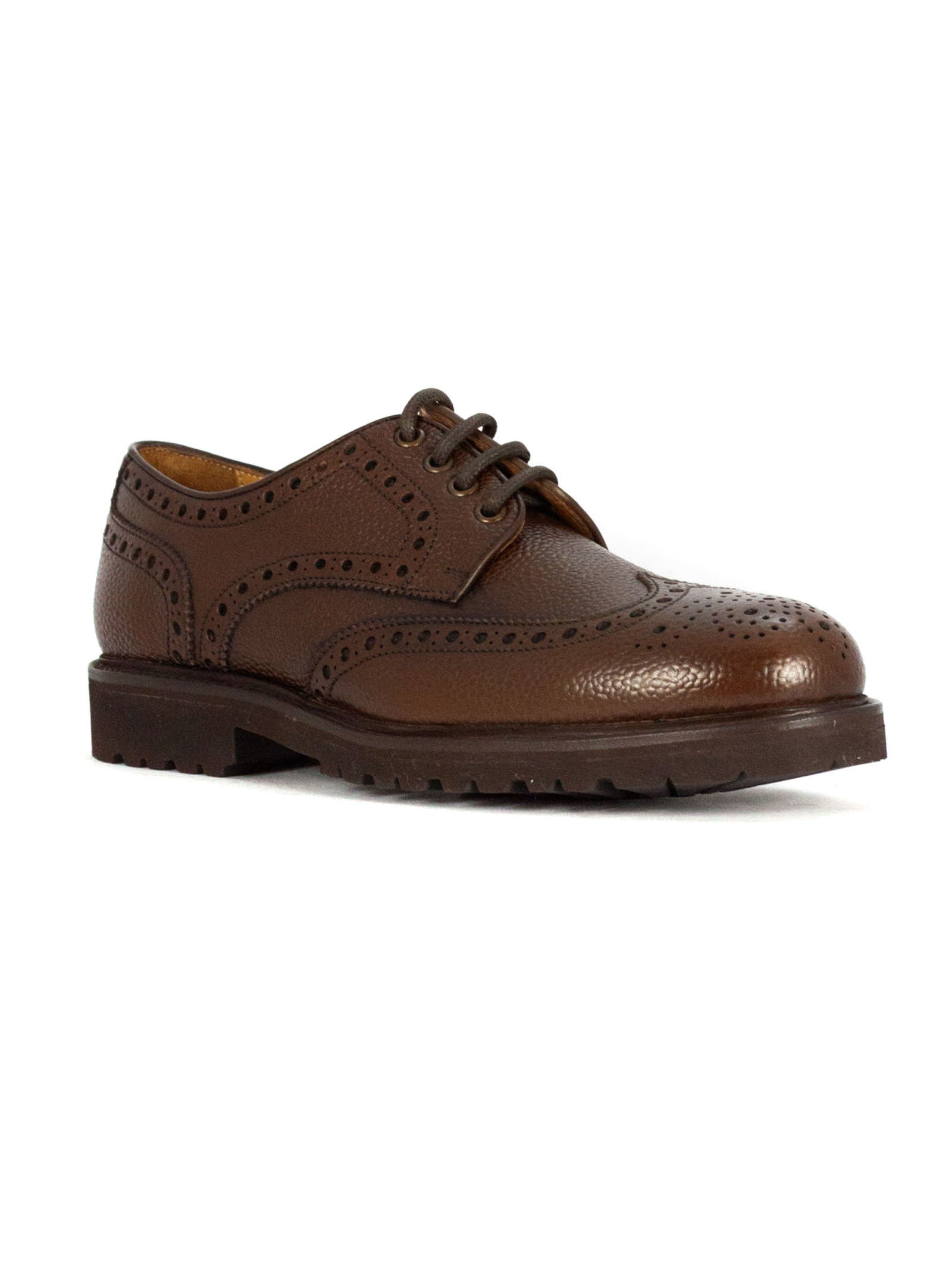 Brown tumbled leather Derby shoes with swallowtail, 4 eyelets, lace-up fastening, Goodyear construction, lightweight rubber sole