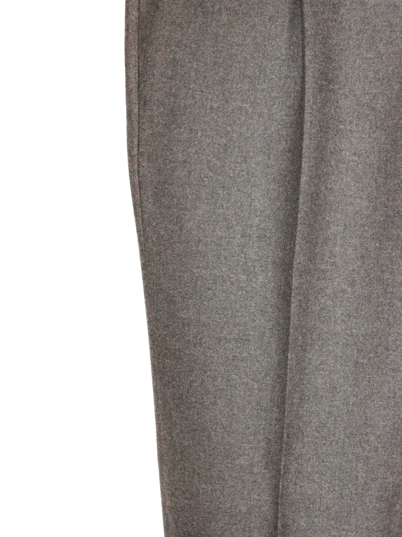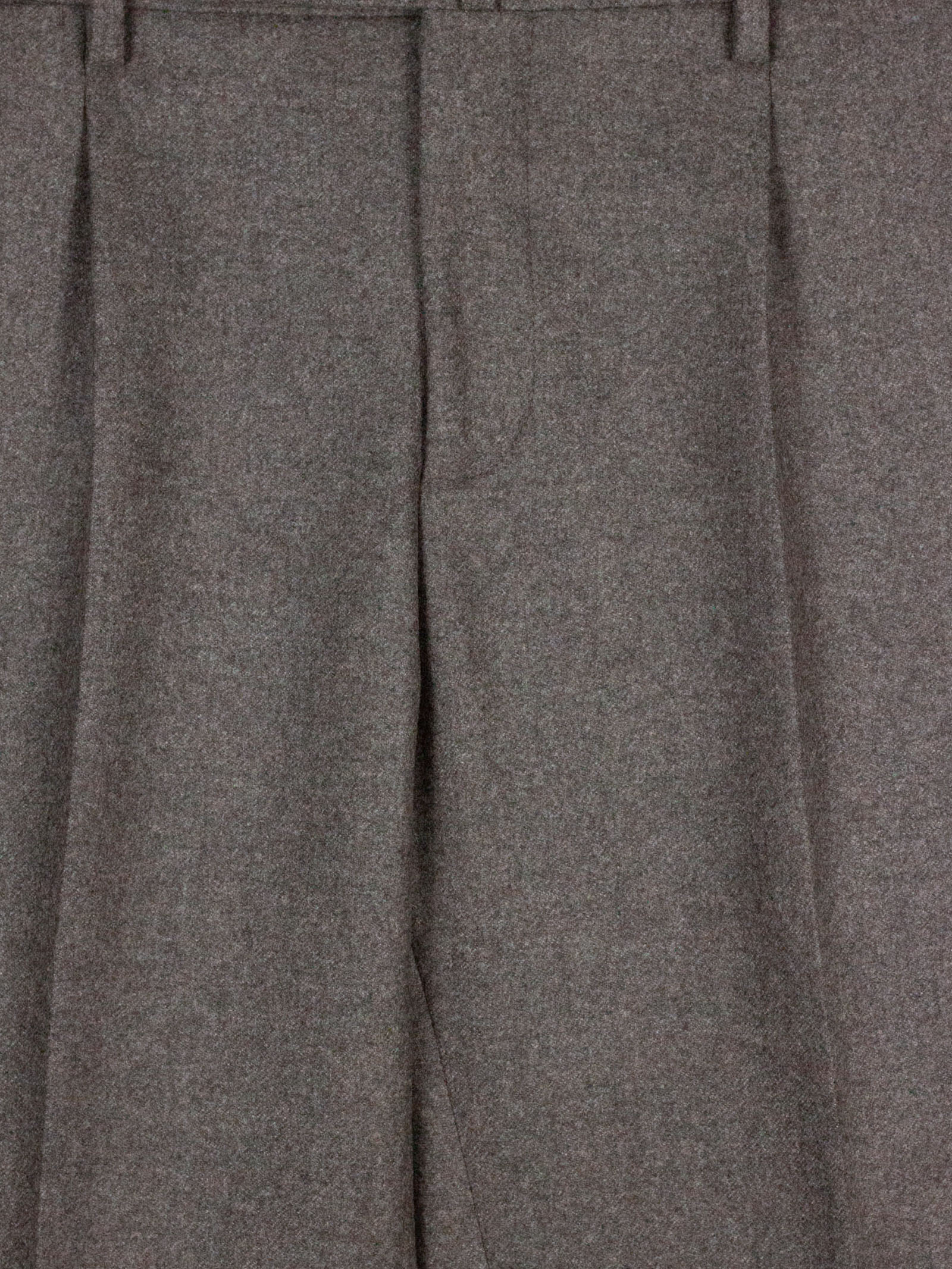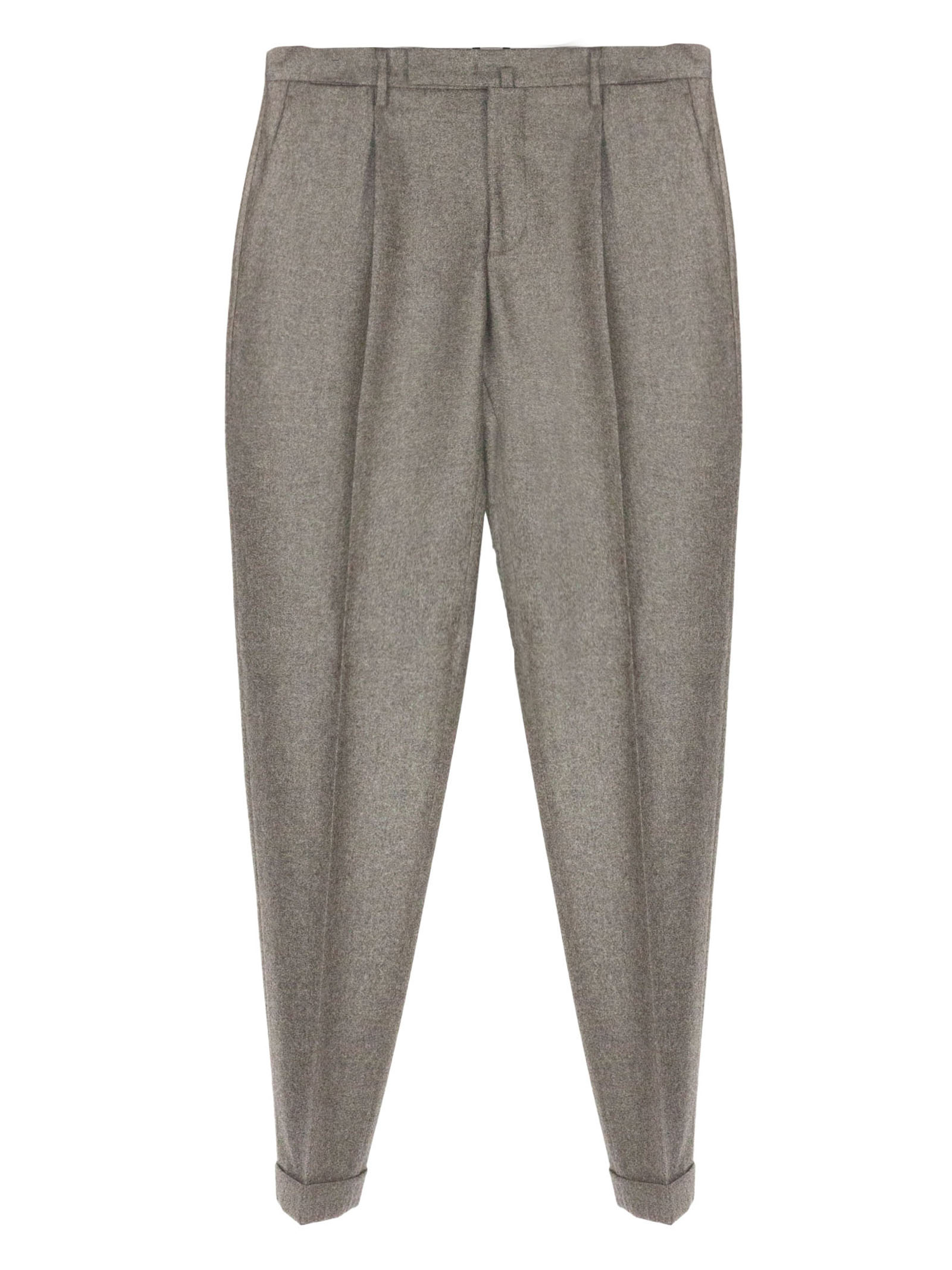 Gray virgin wool trousers, tailored style, model with pleats and center crease, belt loops, cuffs at the bottom, front closure with button and zipper.
