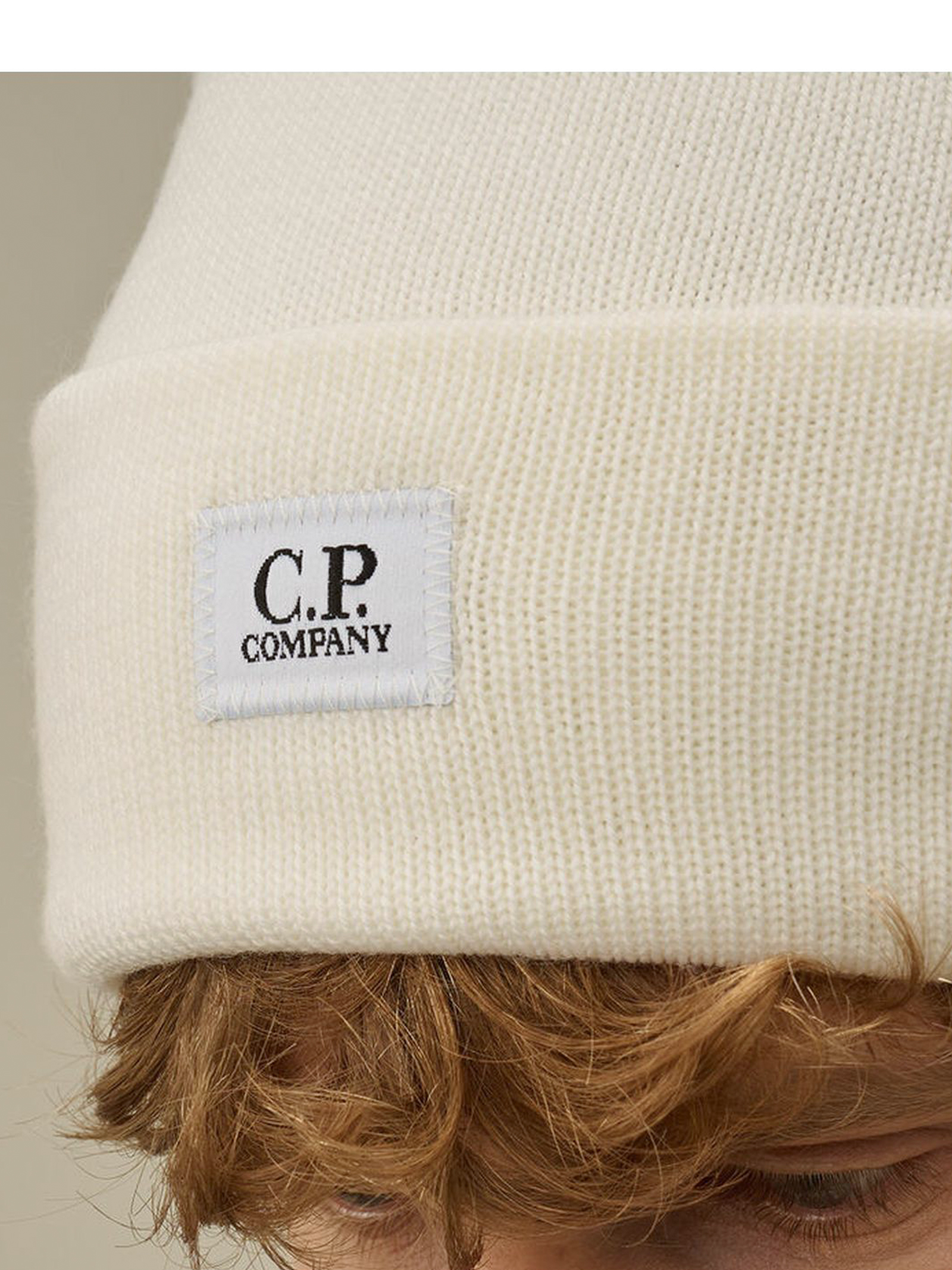 Extrafine Merino Wool Beanie, Ribbed knit, Turn-up brim, Woven logo label