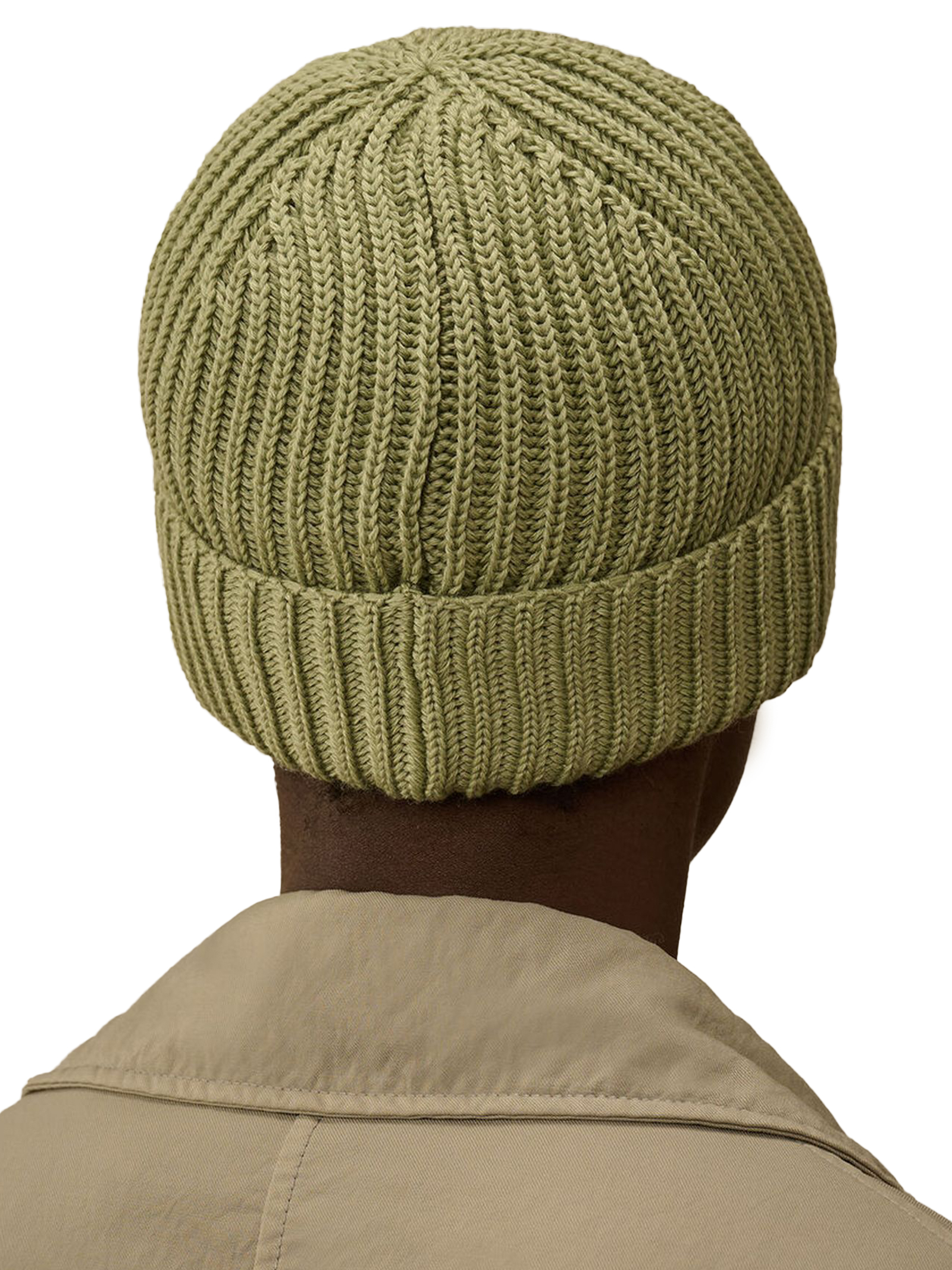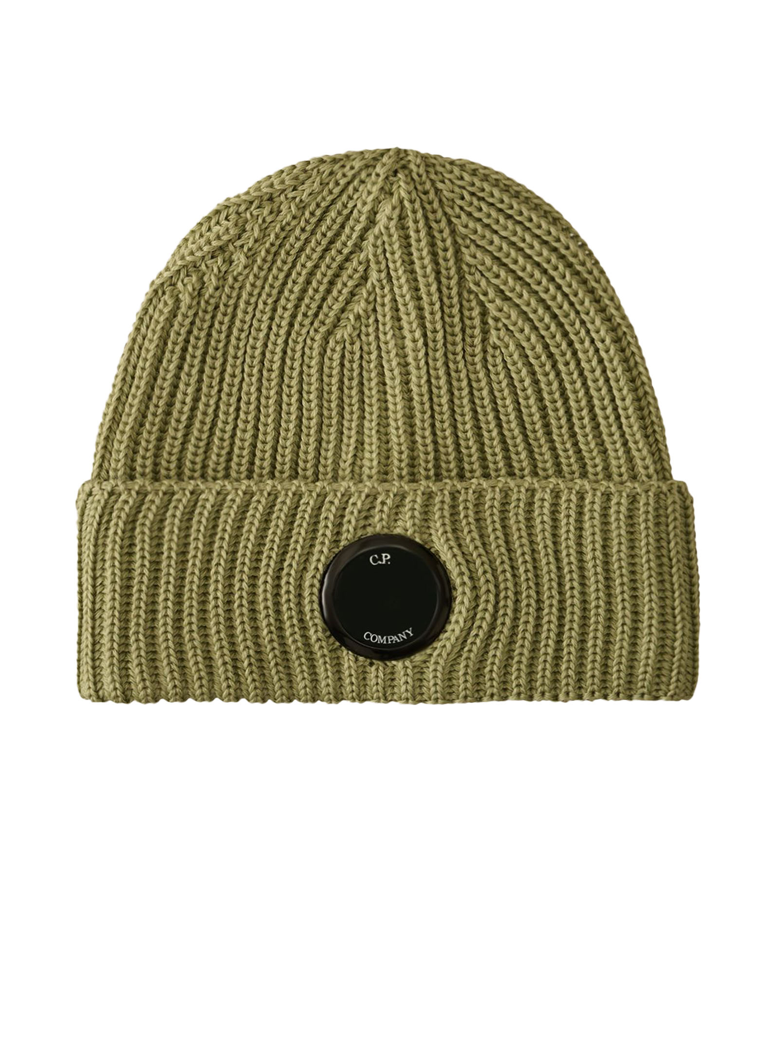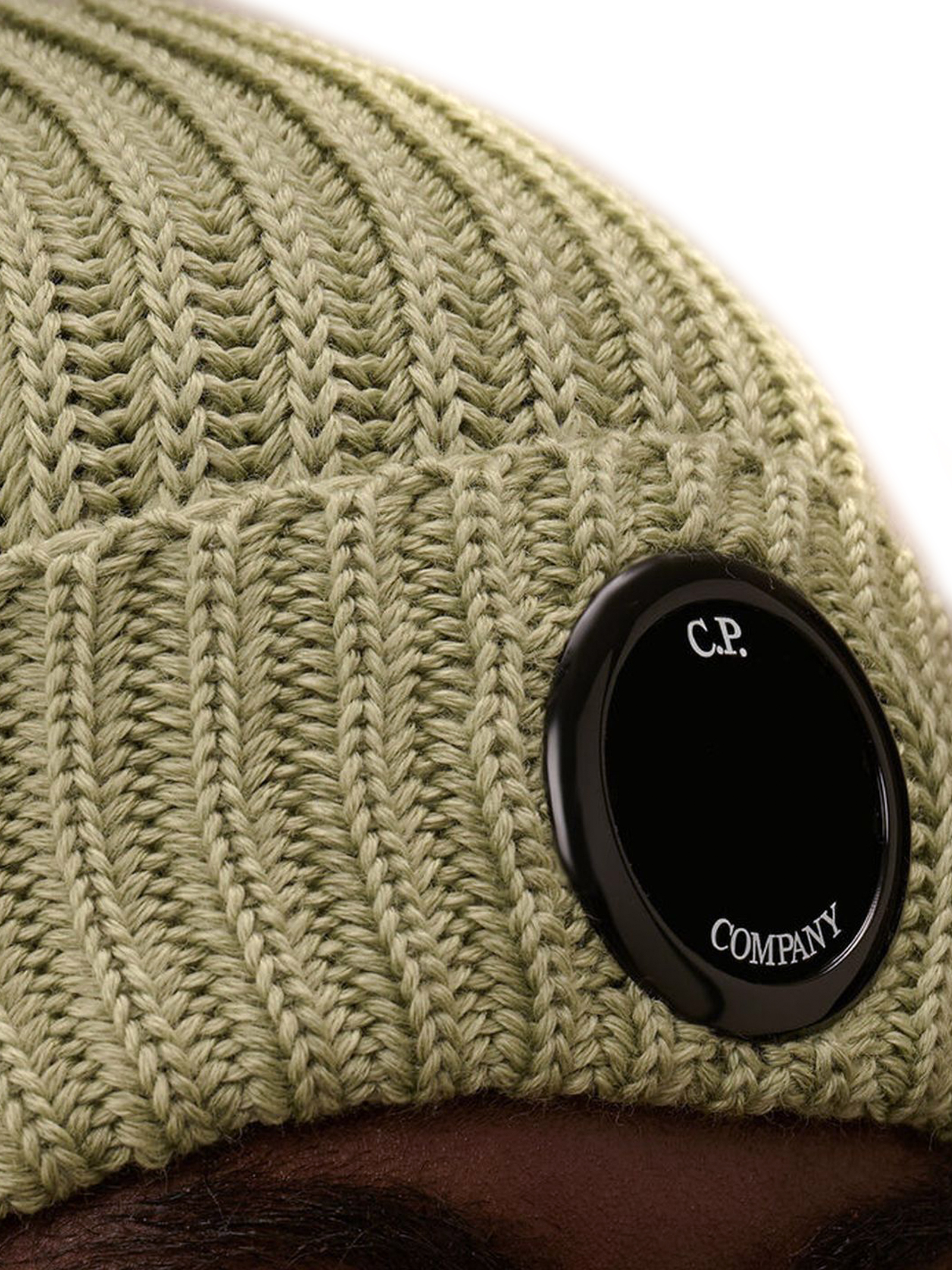 Extrafine Merino Wool Lens Beanie, ribbed knit, Turn-up brim, Lens detail