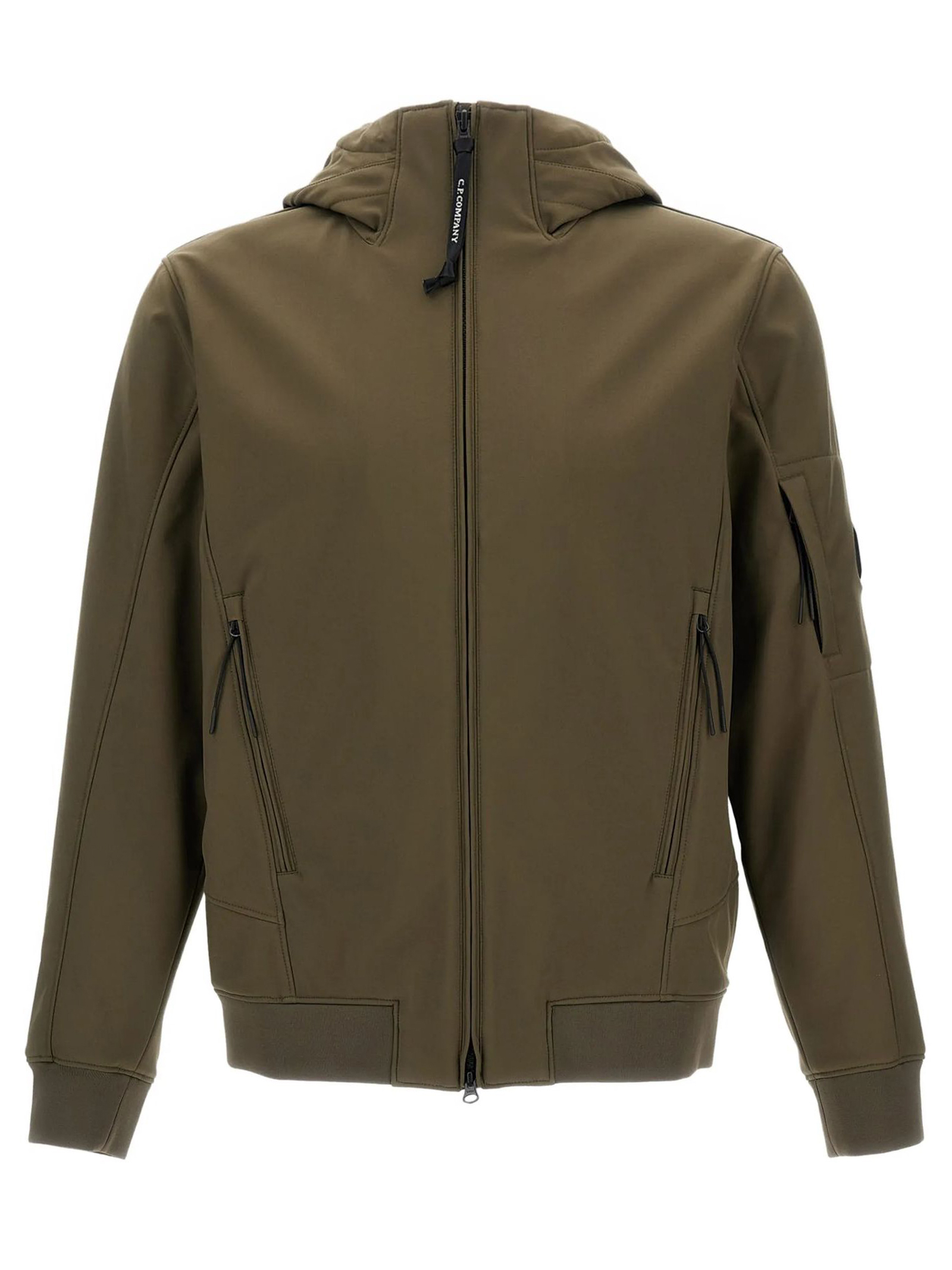 Olive green hooded zip-fastening jacket, sip-fastening pockets, hooded neckline, long sleeves