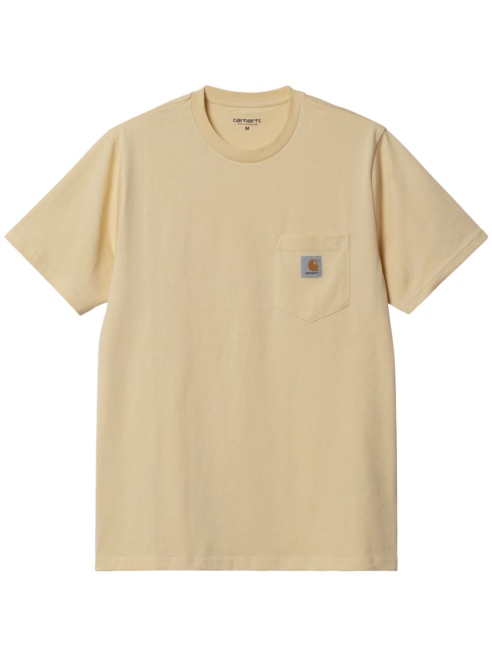 Beige cotton T-shirt featuring front logo, short sleeves, crewneck, chest pocket