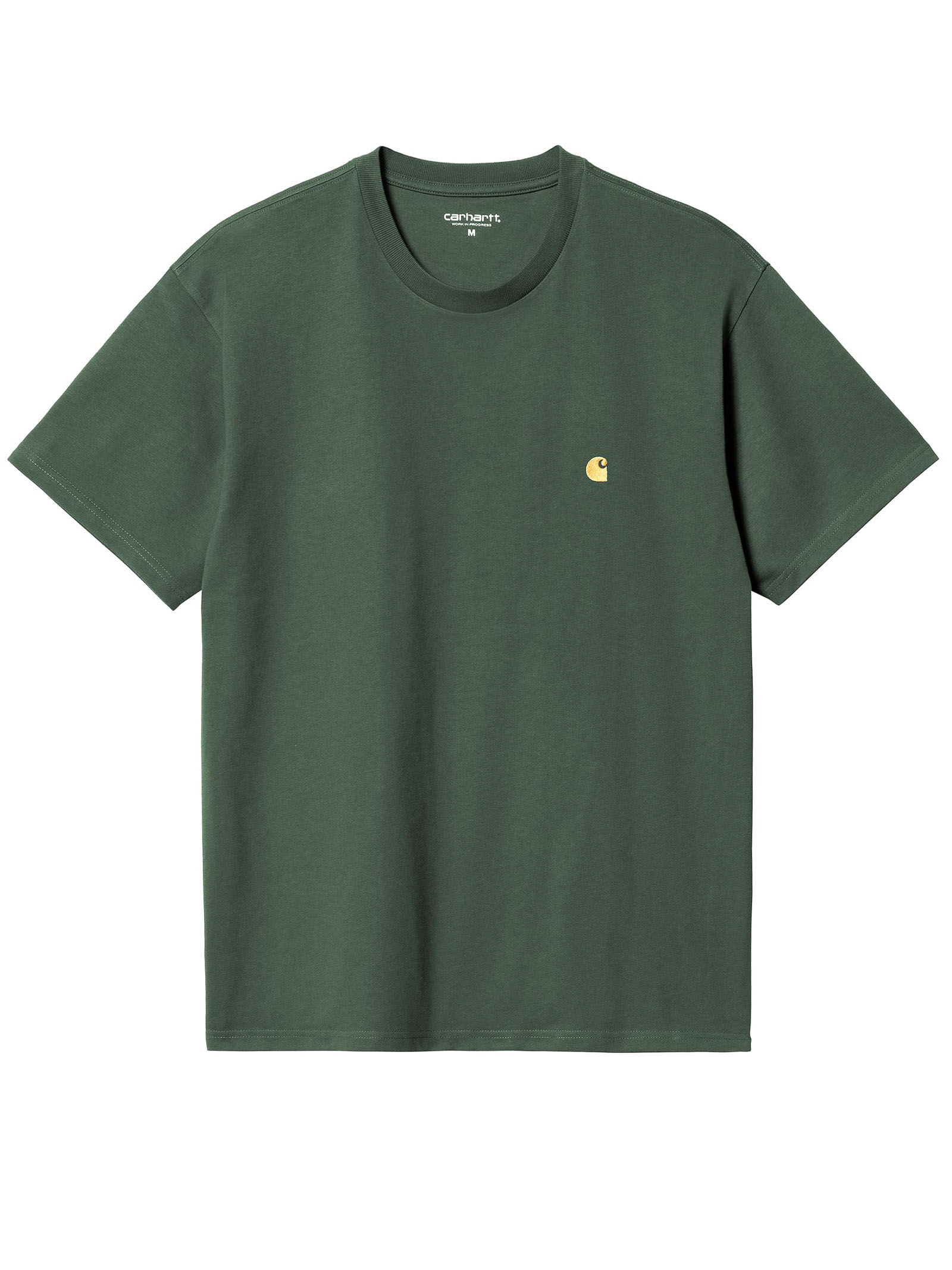 Dark green cotton T-shirt featuring front logo, short sleeves, crewneck
