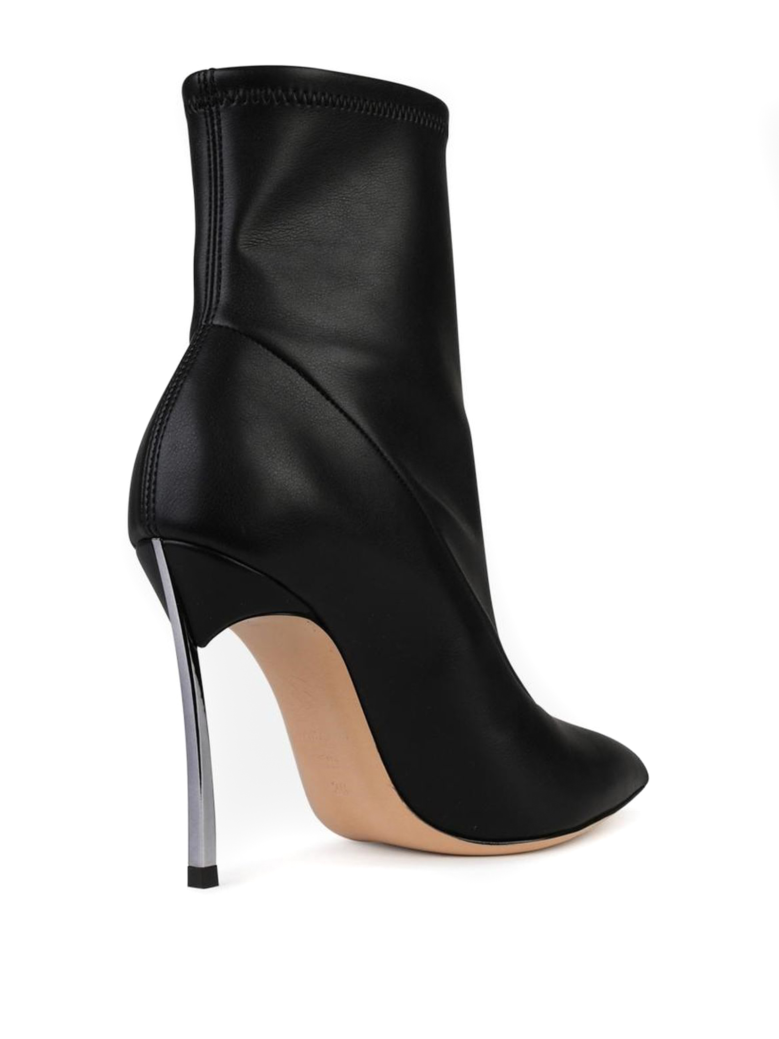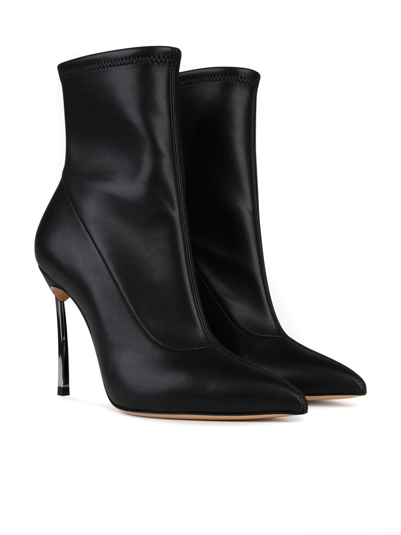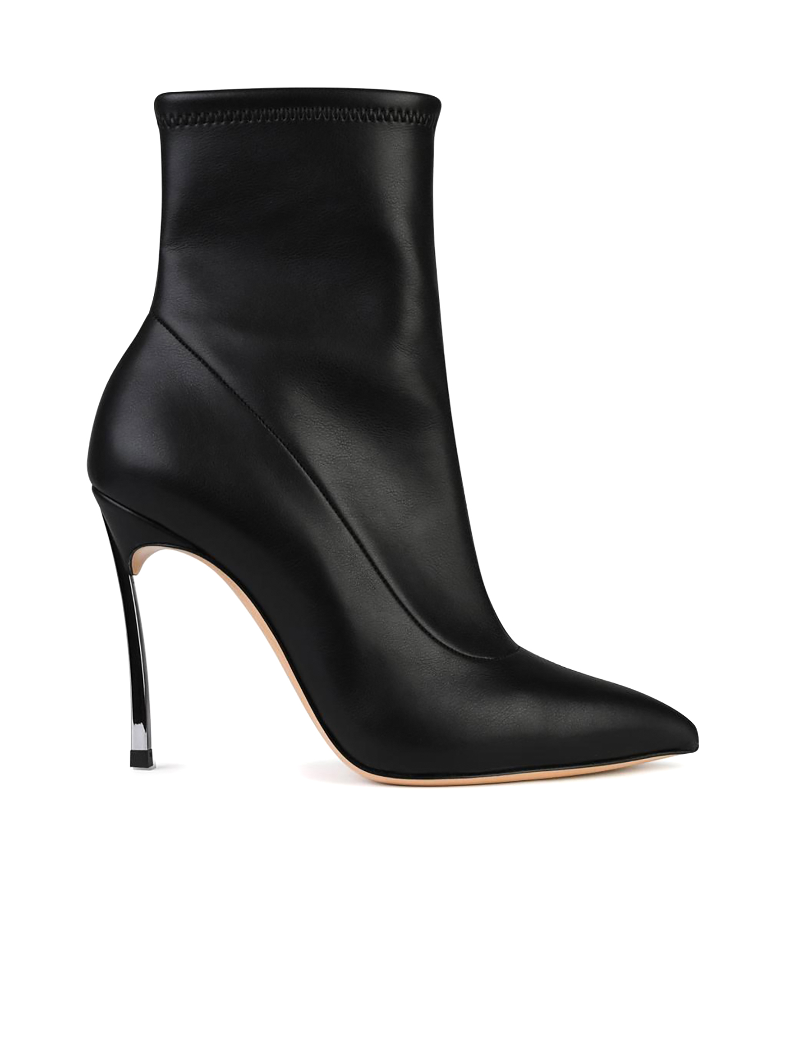 Black leather ankle boot with pointed toe, soft leather, 100mm steel blade heel