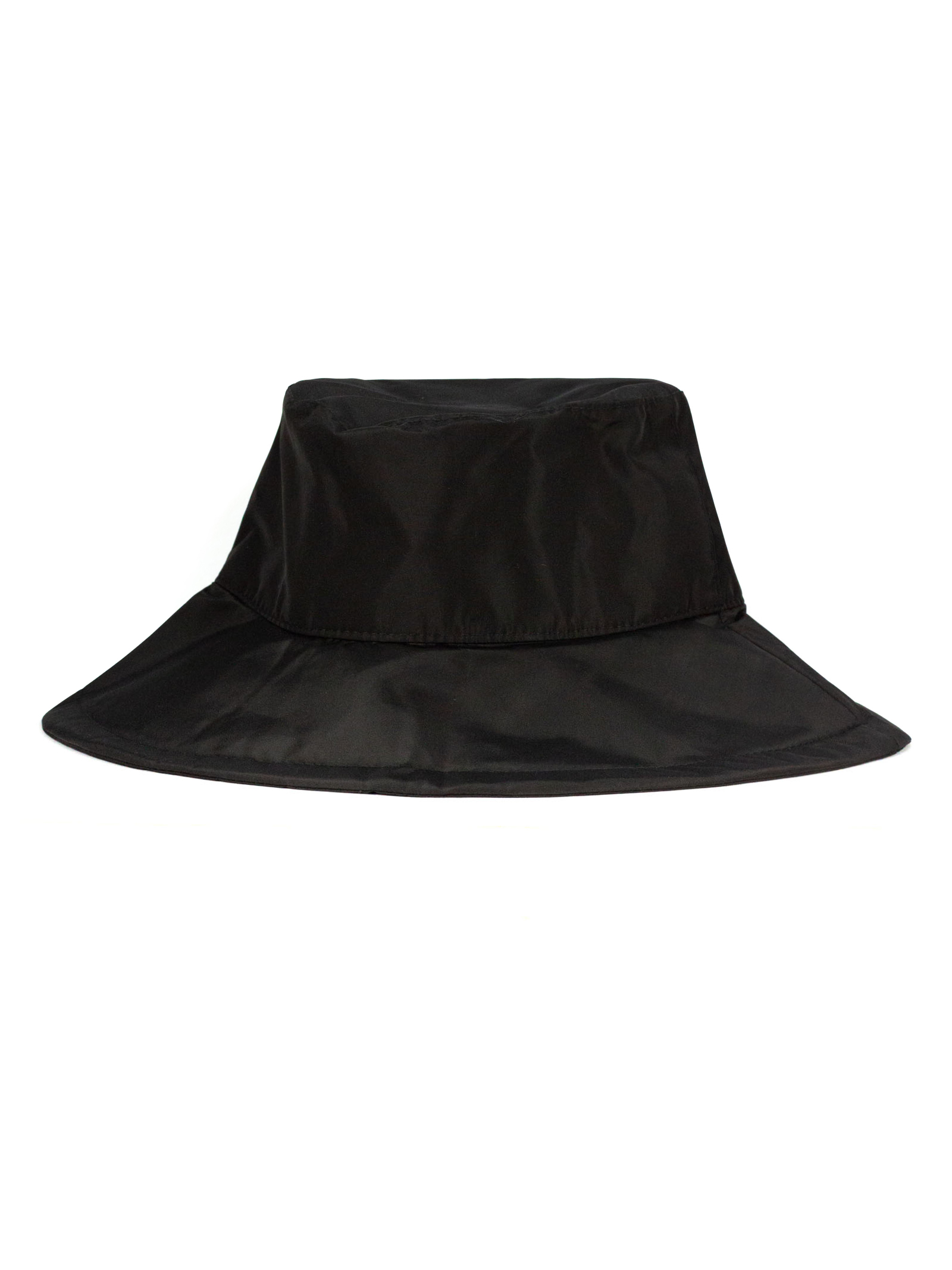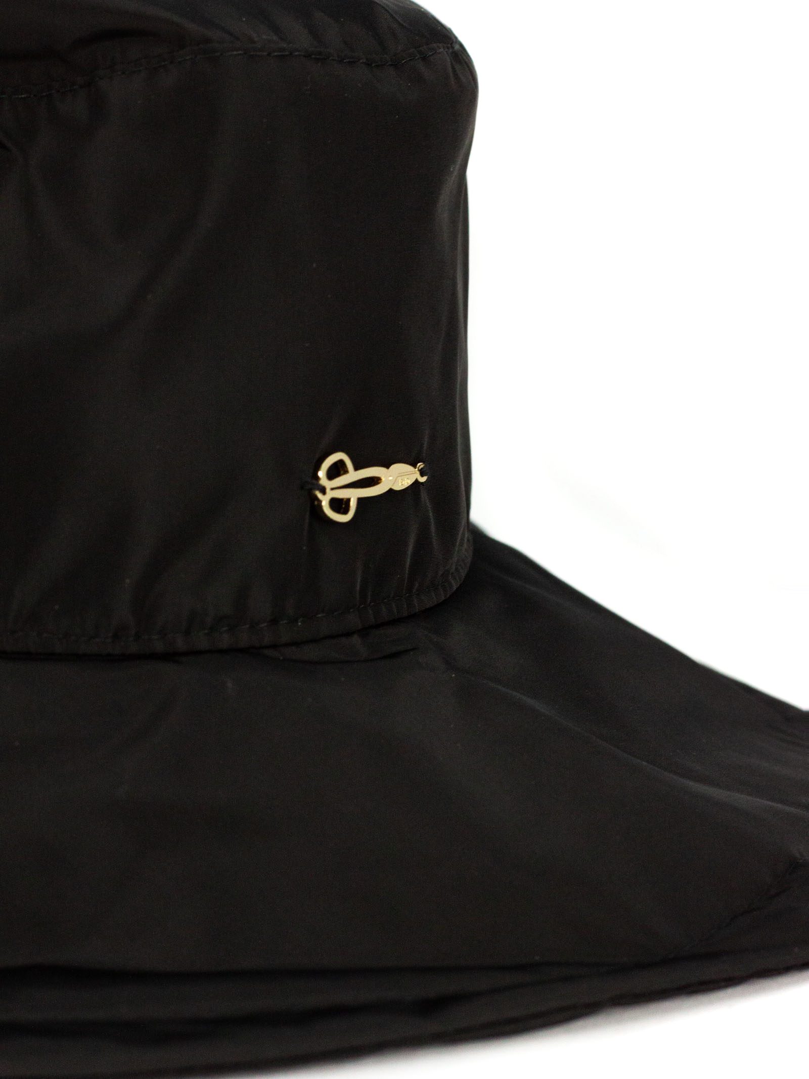 Large black nylon cap with hand-applied logo detail, 100%Polyester