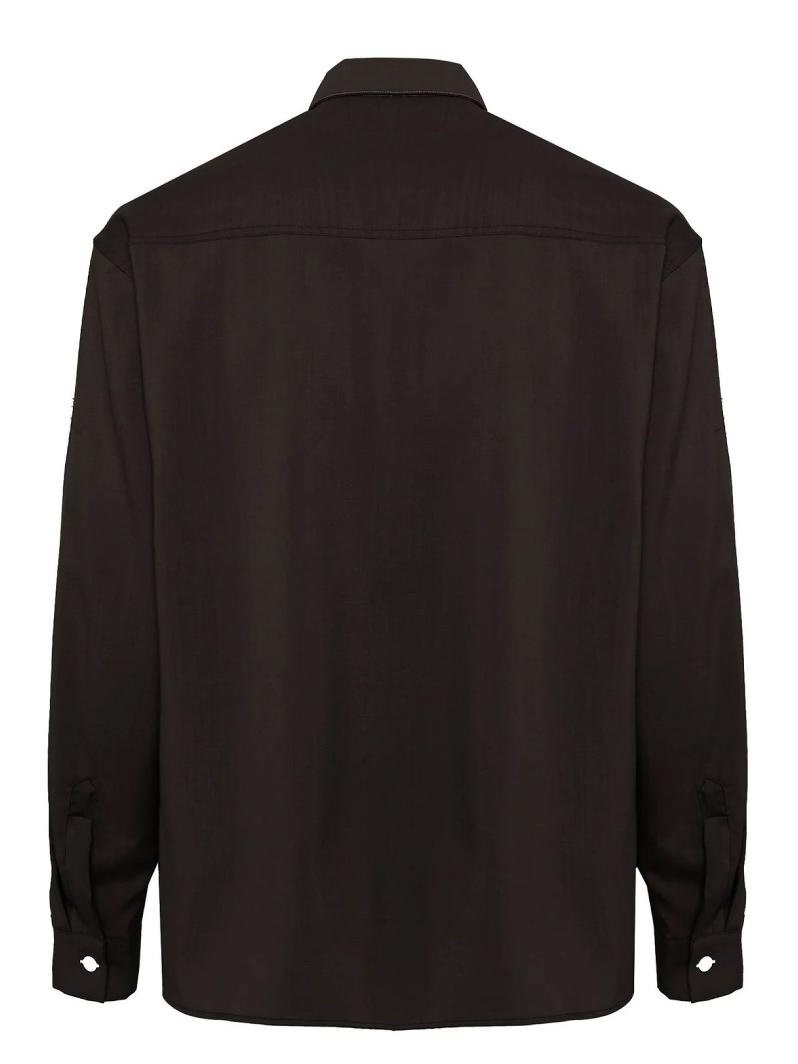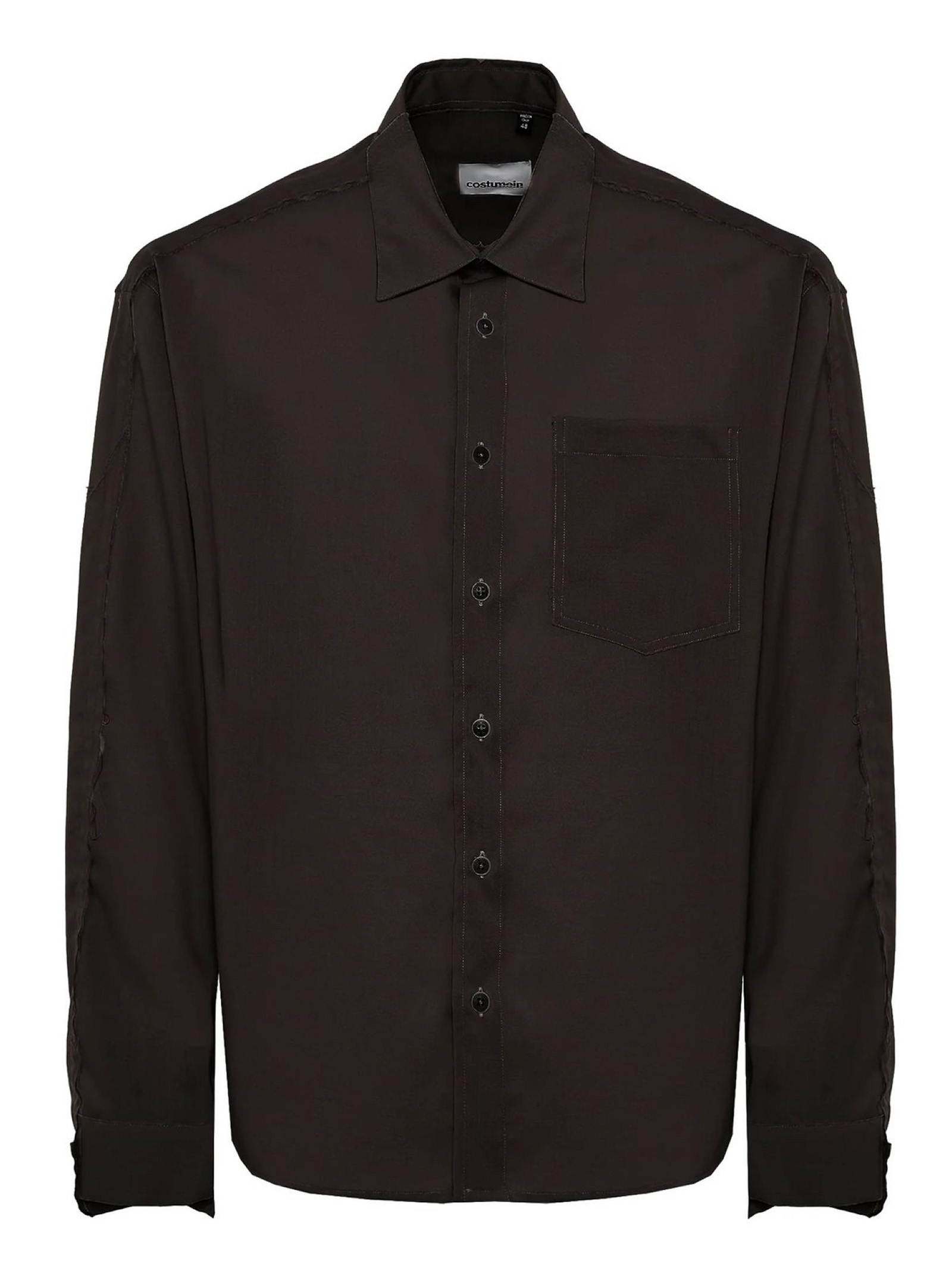 Large fit shirt with Italian collar, patch pocket on the chest, long sleeves, straight hem, and raw-cut side slit at the back, 100% WV