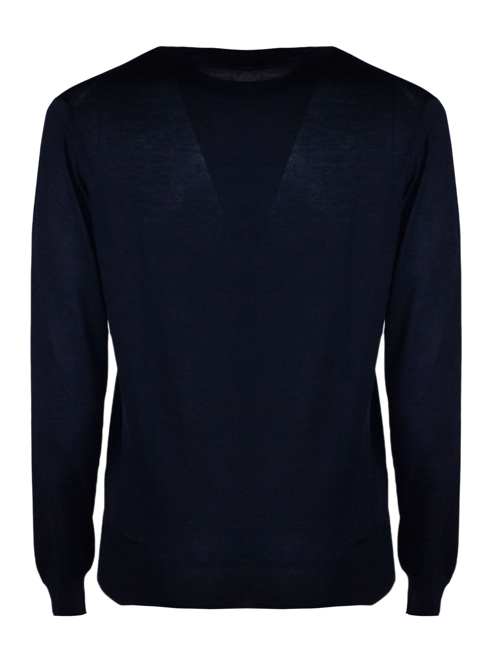 Blue cashmere and silk blend sweater with crew neck, long sleeves, ribbed trim