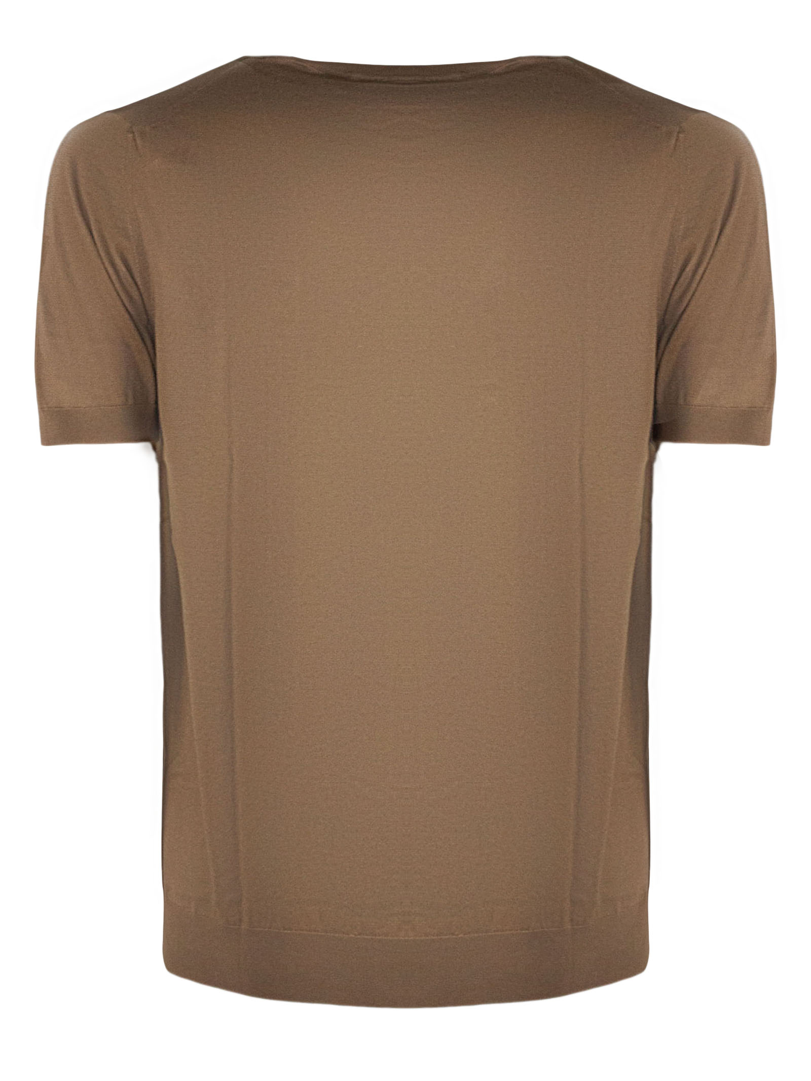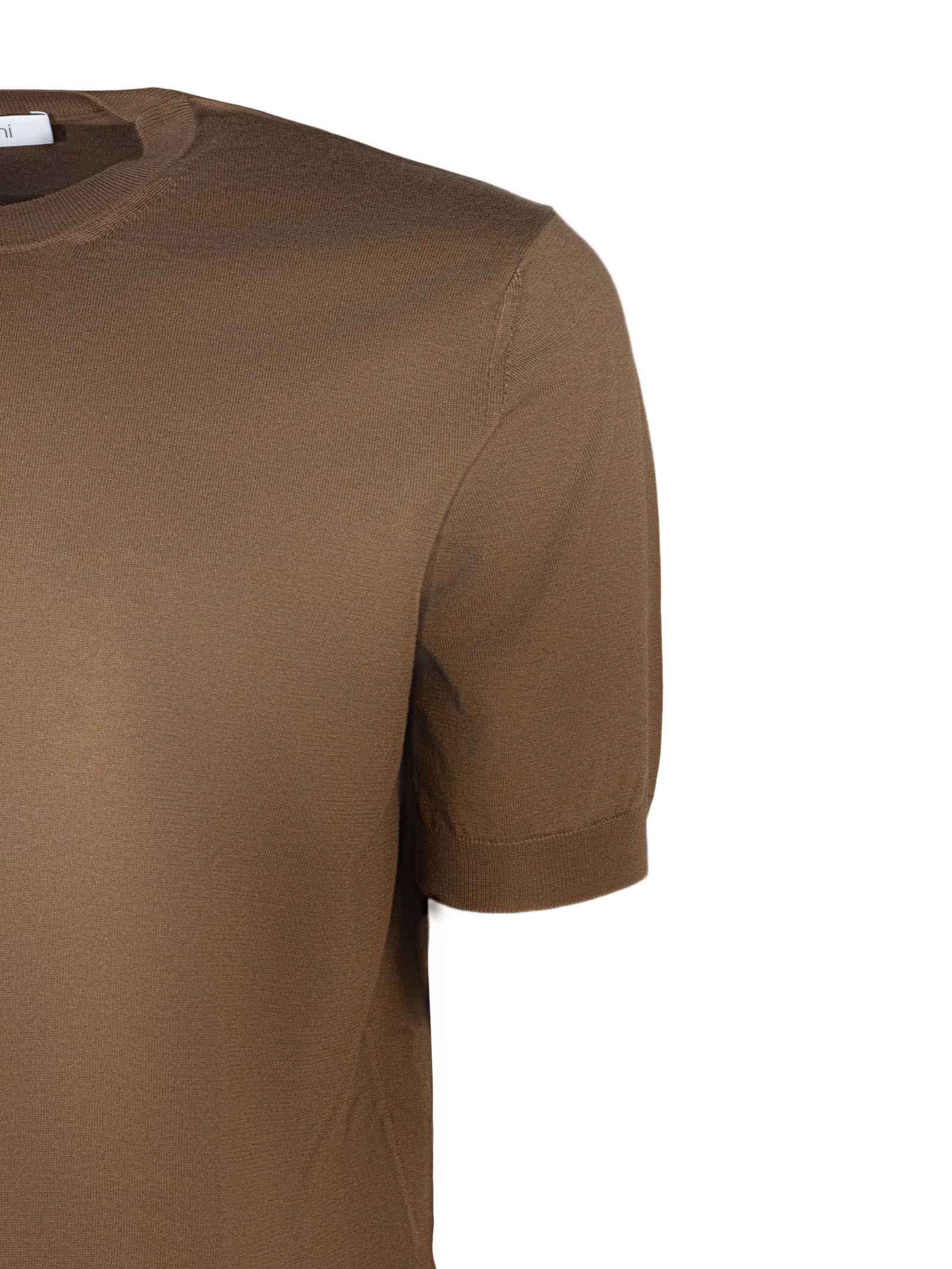 Brown cotton knit T-shirt with short sleeves, crew neck, and elastic ribbed trim