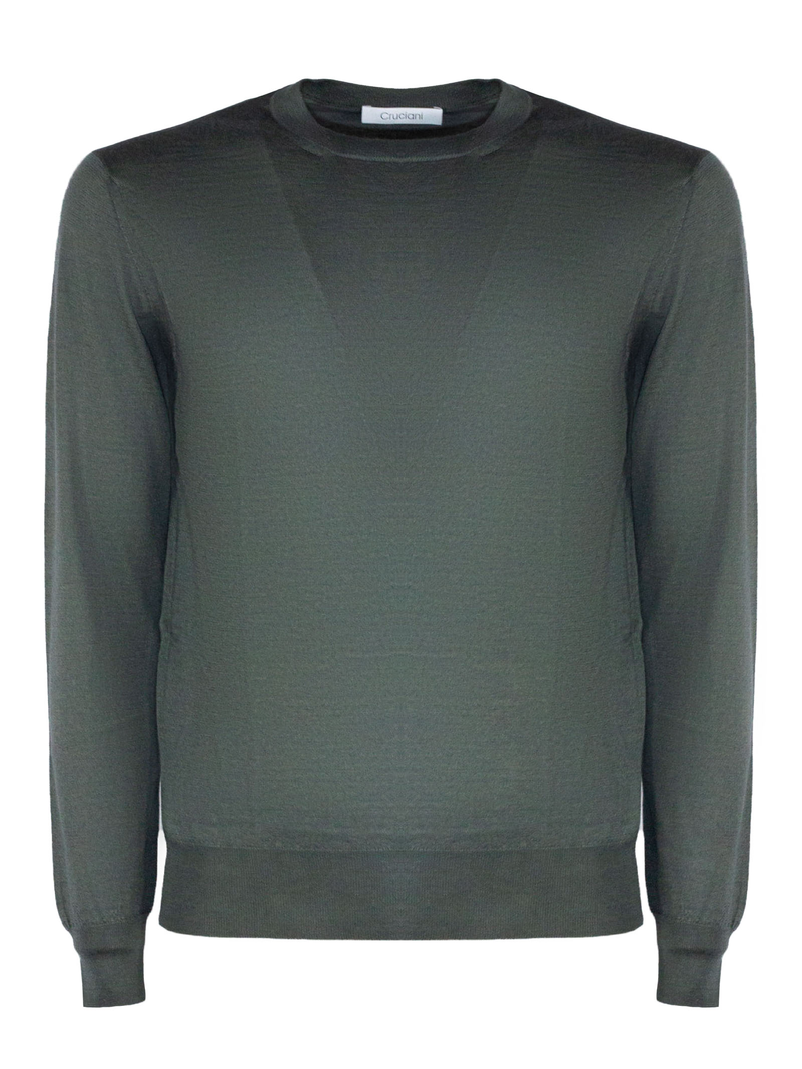 Gray cashmere and silk blend sweater with crew neck, long sleeves, ribbed trim
