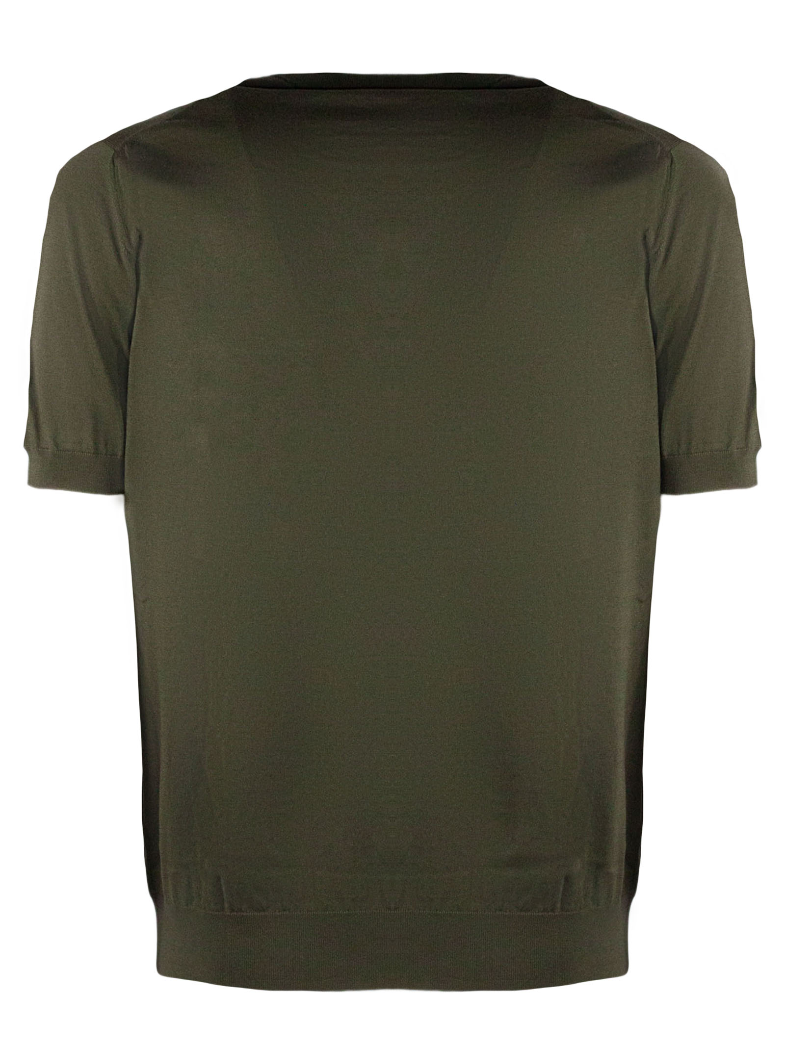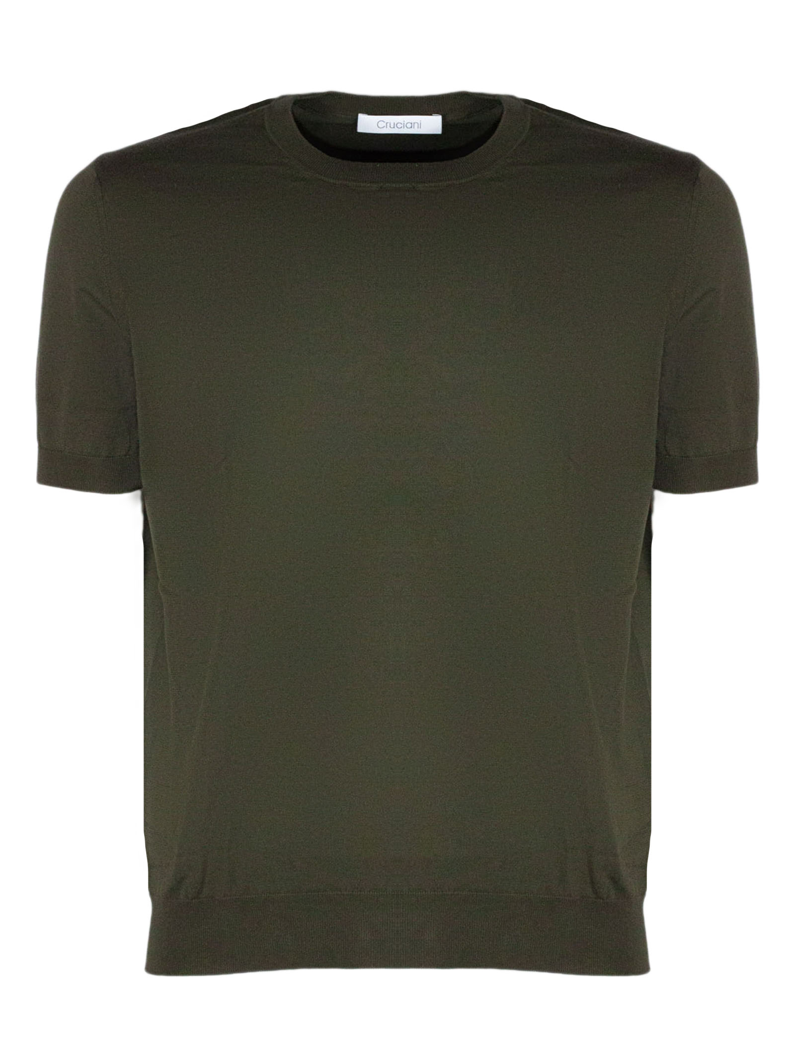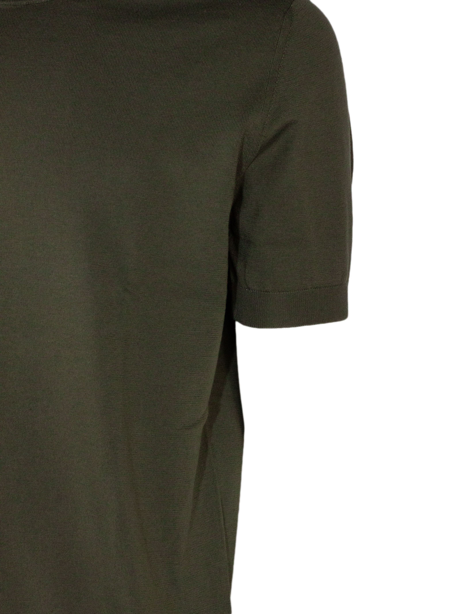 Green cotton knit T-shirt with short sleeves, crew neck, and elastic ribbed trim
