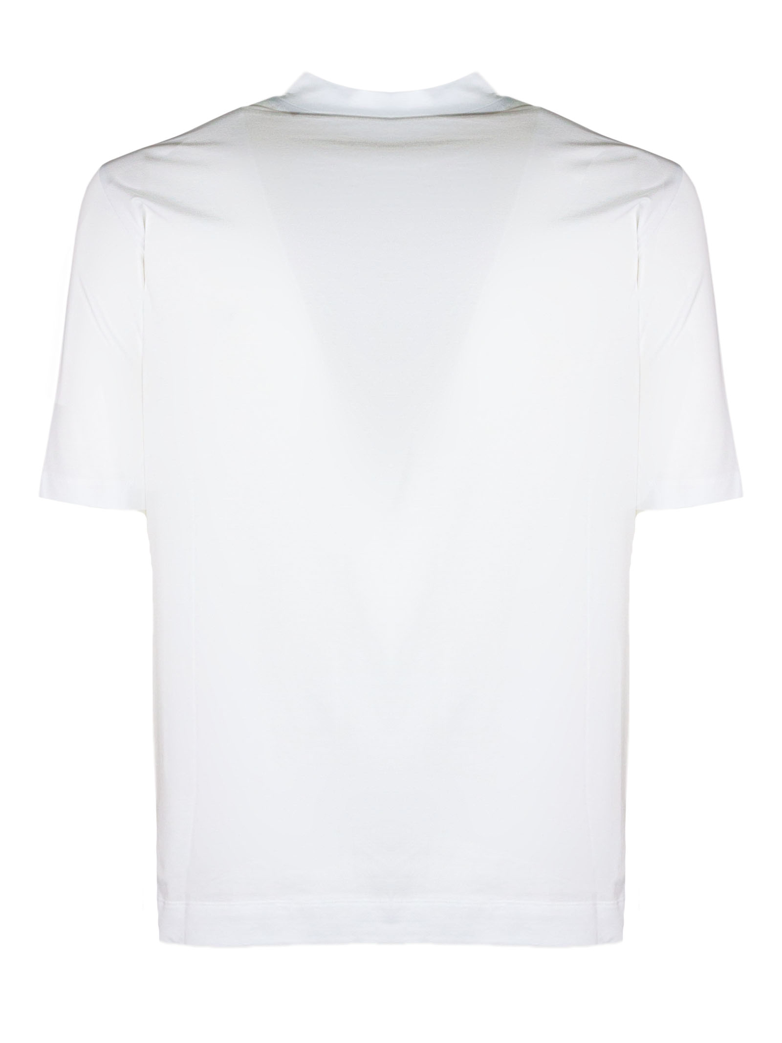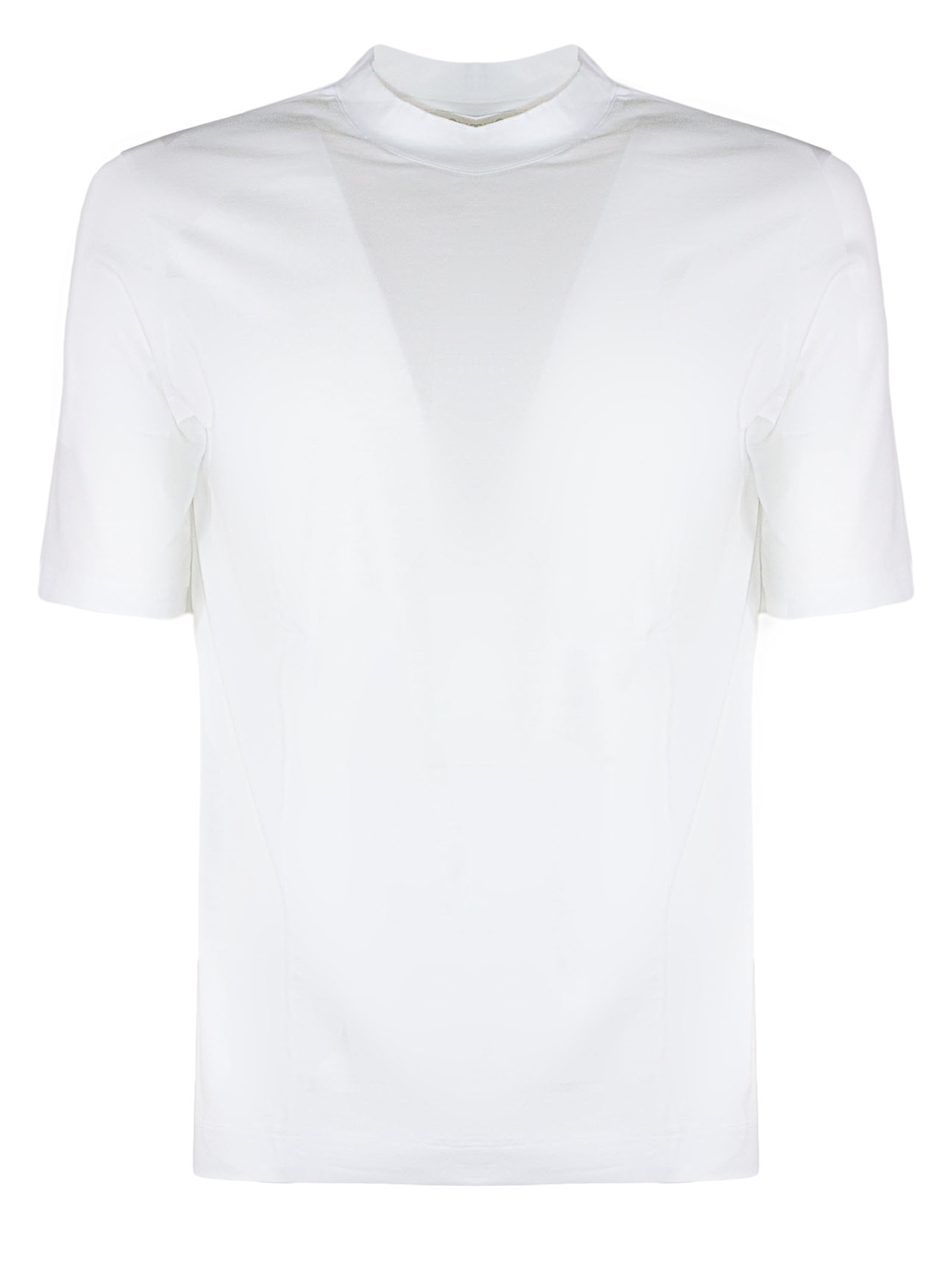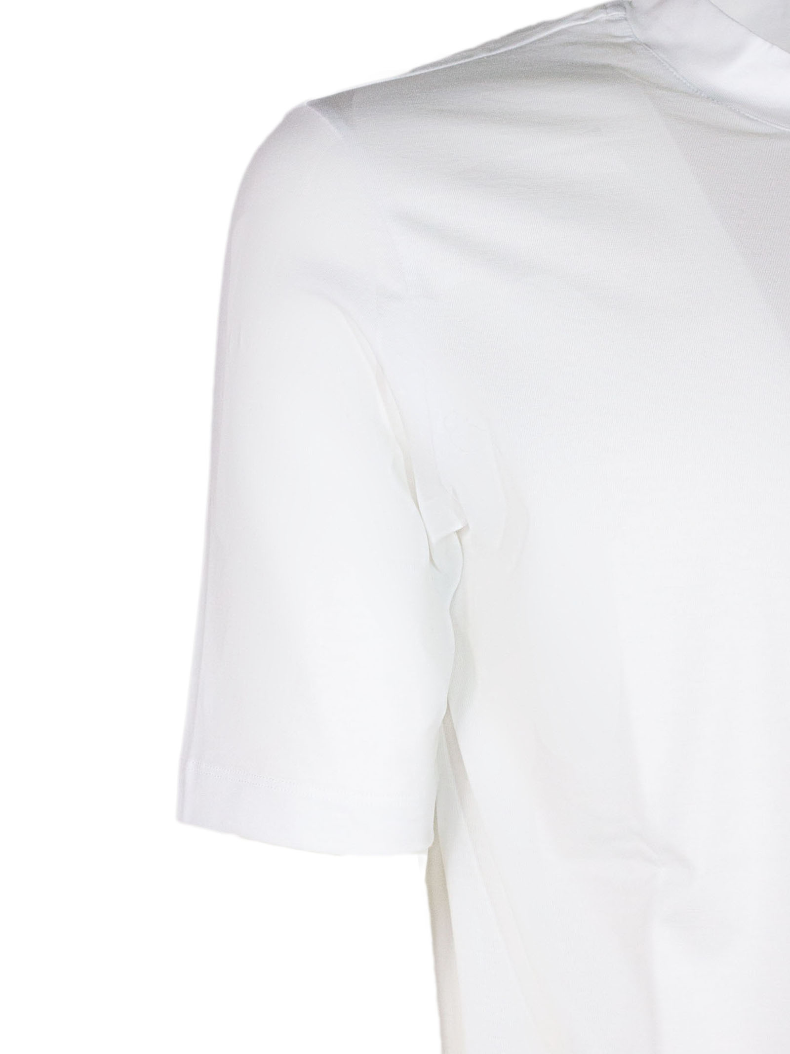 White cotton blend T-shirt with half-high collar and short sleeves