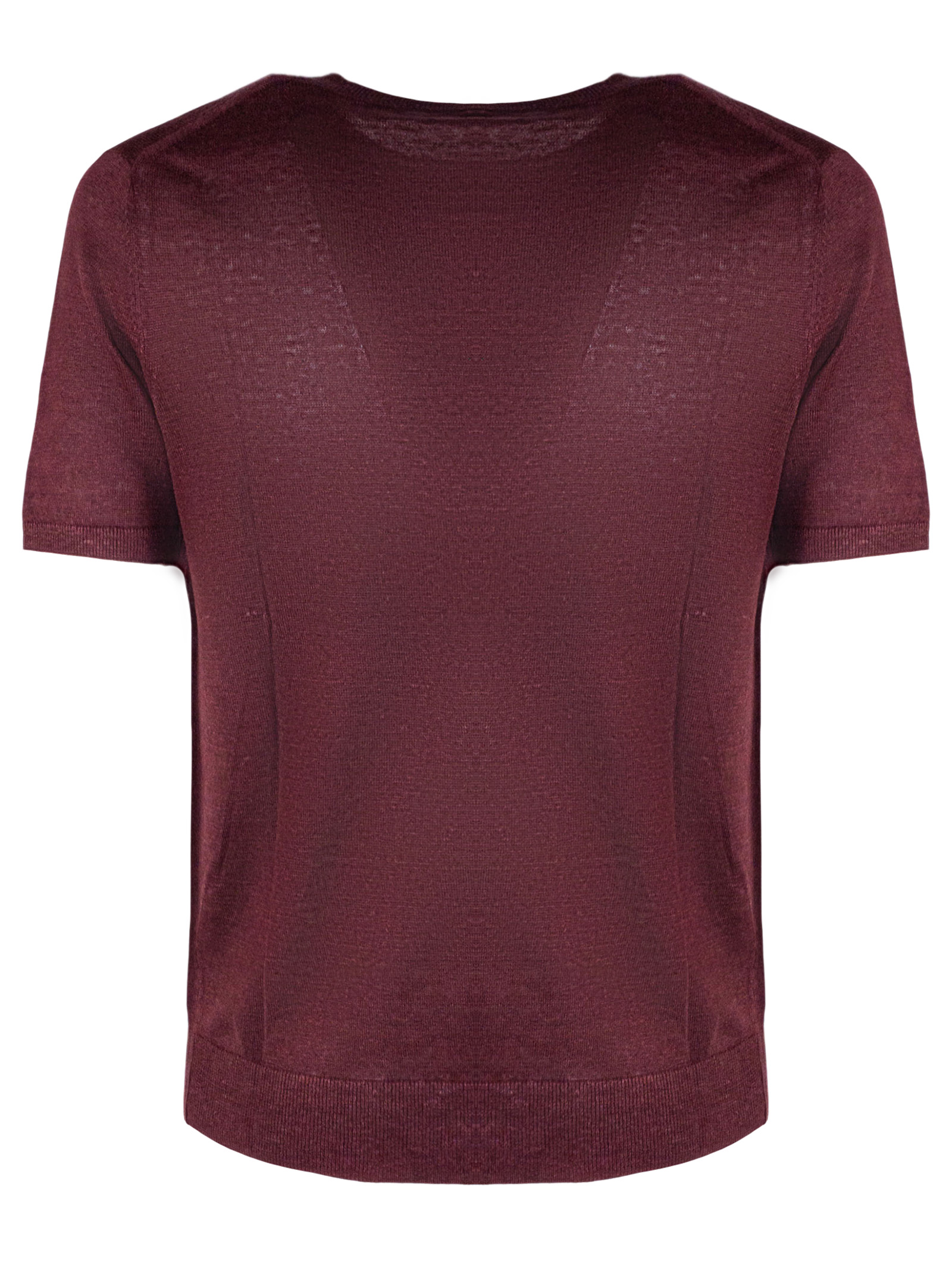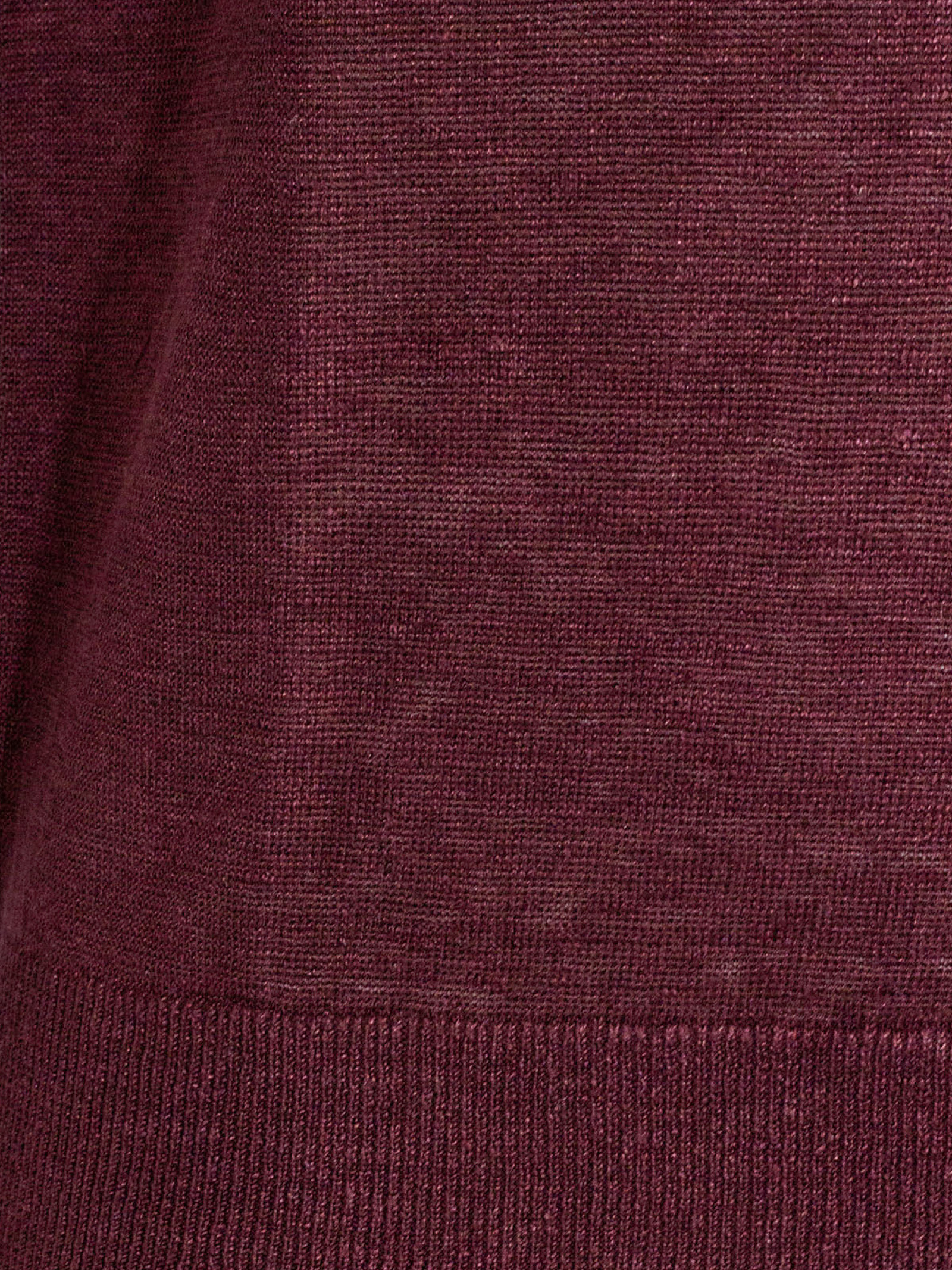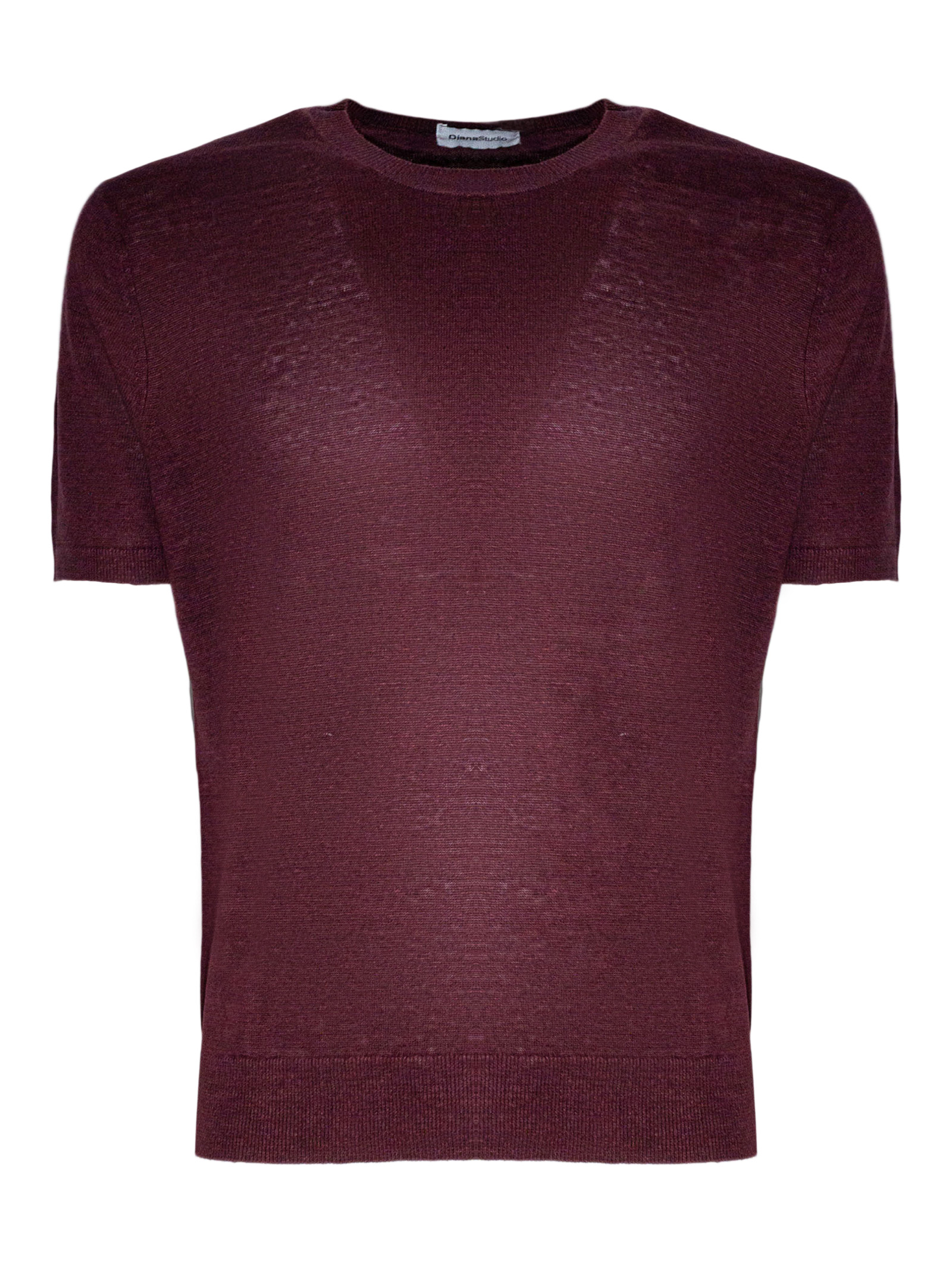 Burgundy linen blend T-shirt with round neck, short sleeves and ribbed trim
